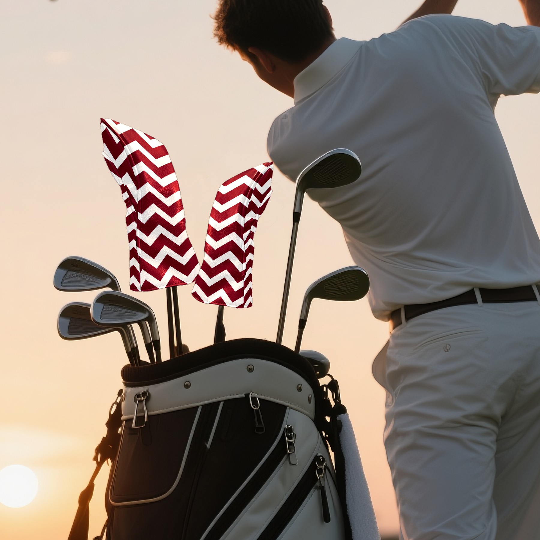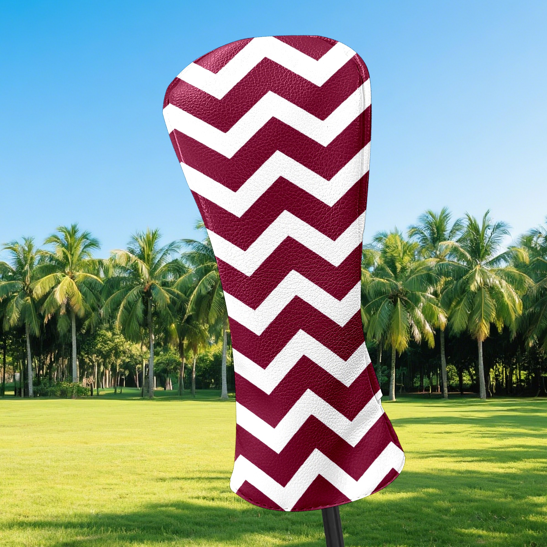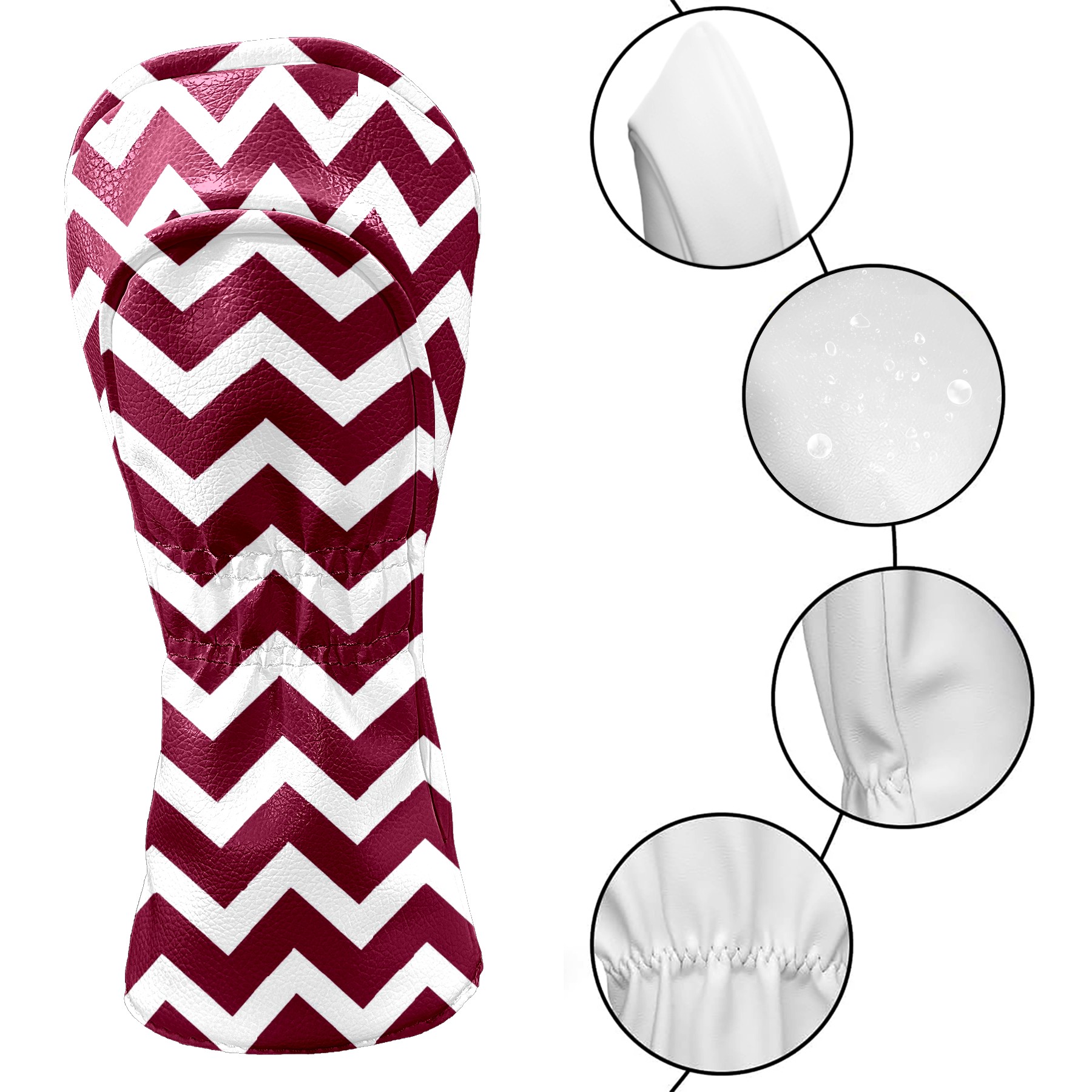 Golf Club Covers Burgundy Chevron Stripe (1) Driver Headcover, Leather Golf Club Head Covers for Driver Fairway Woods Waterproof Golf Headcovers with Anti-Scratch Lining for Men Women