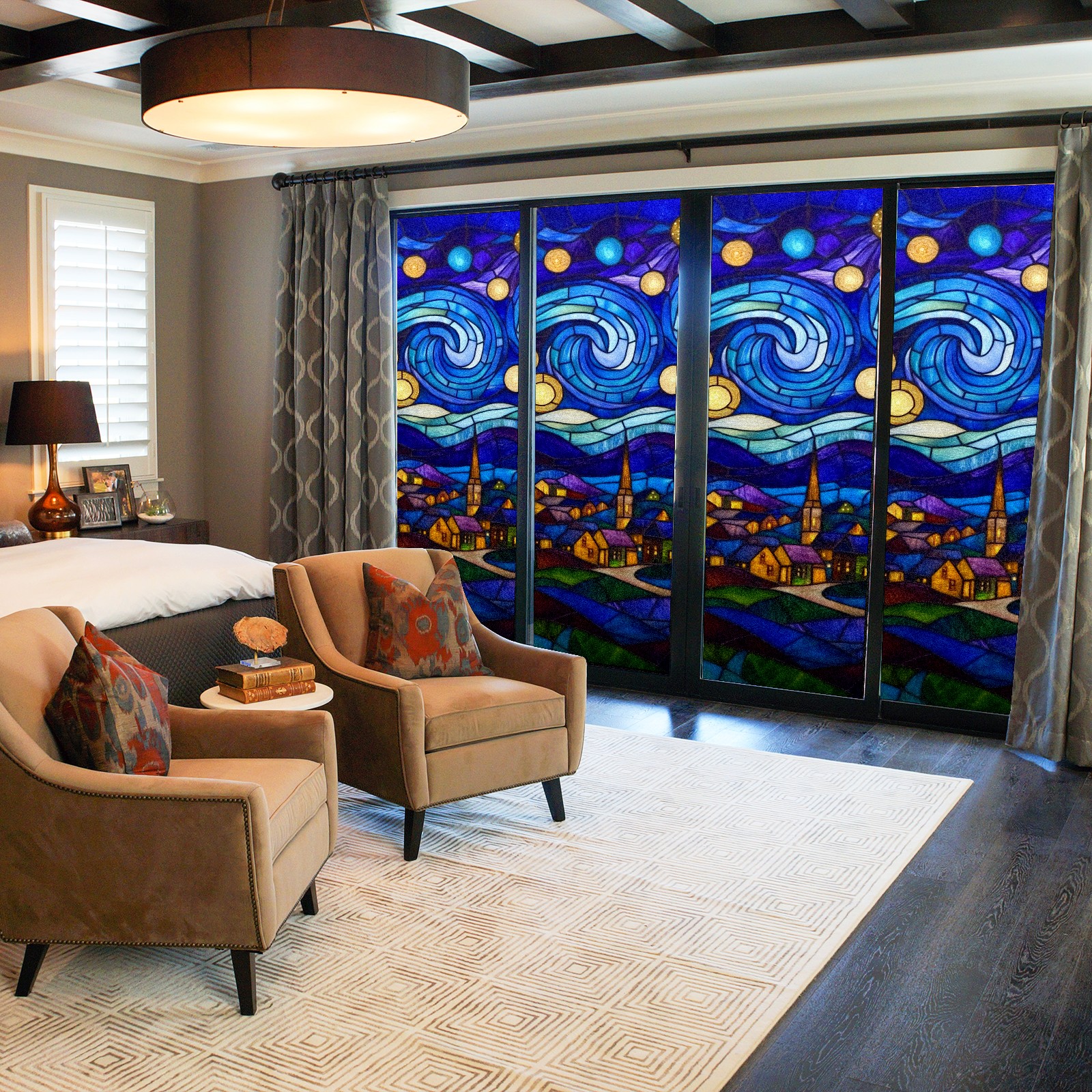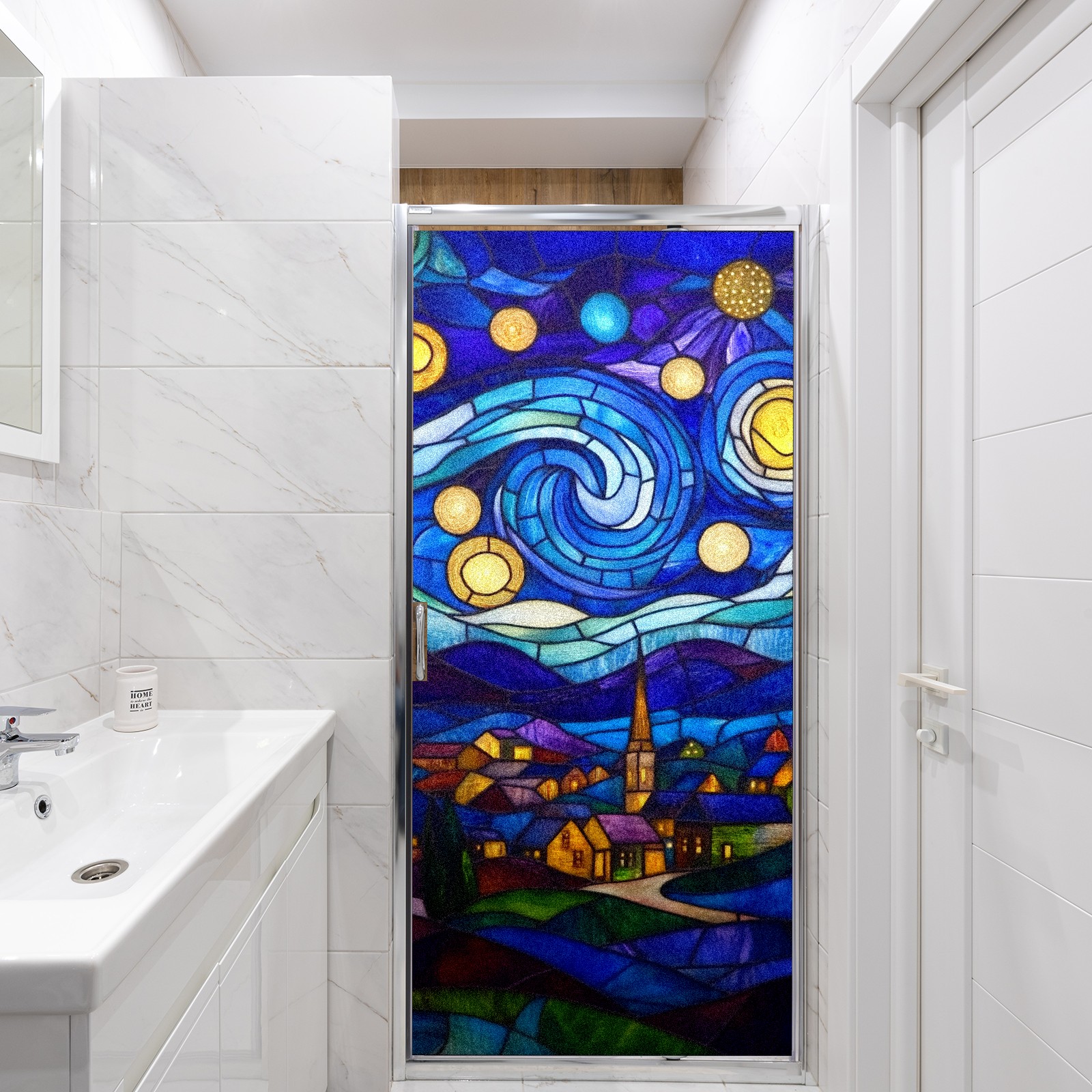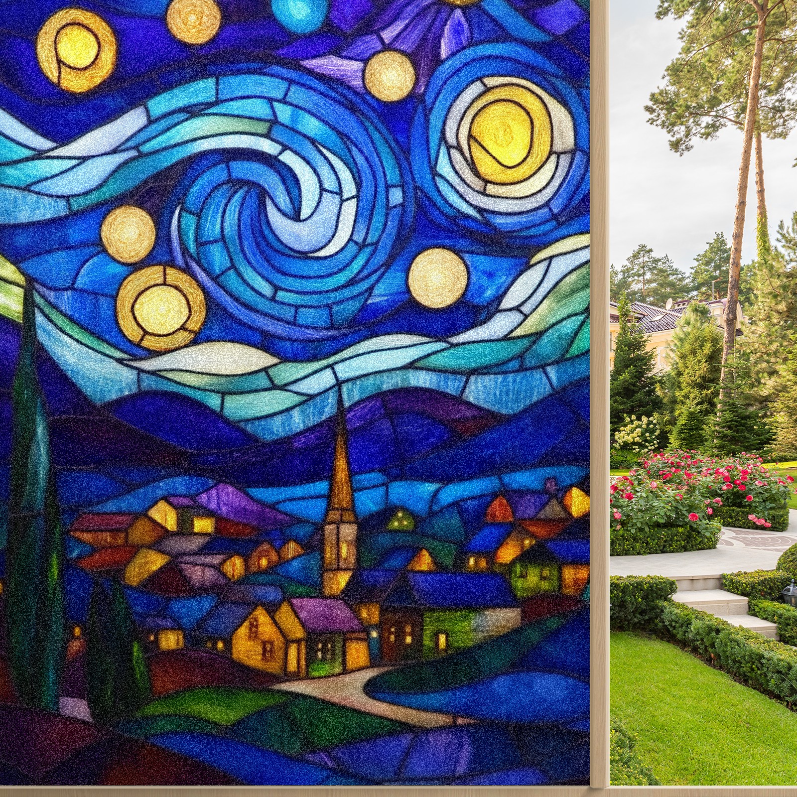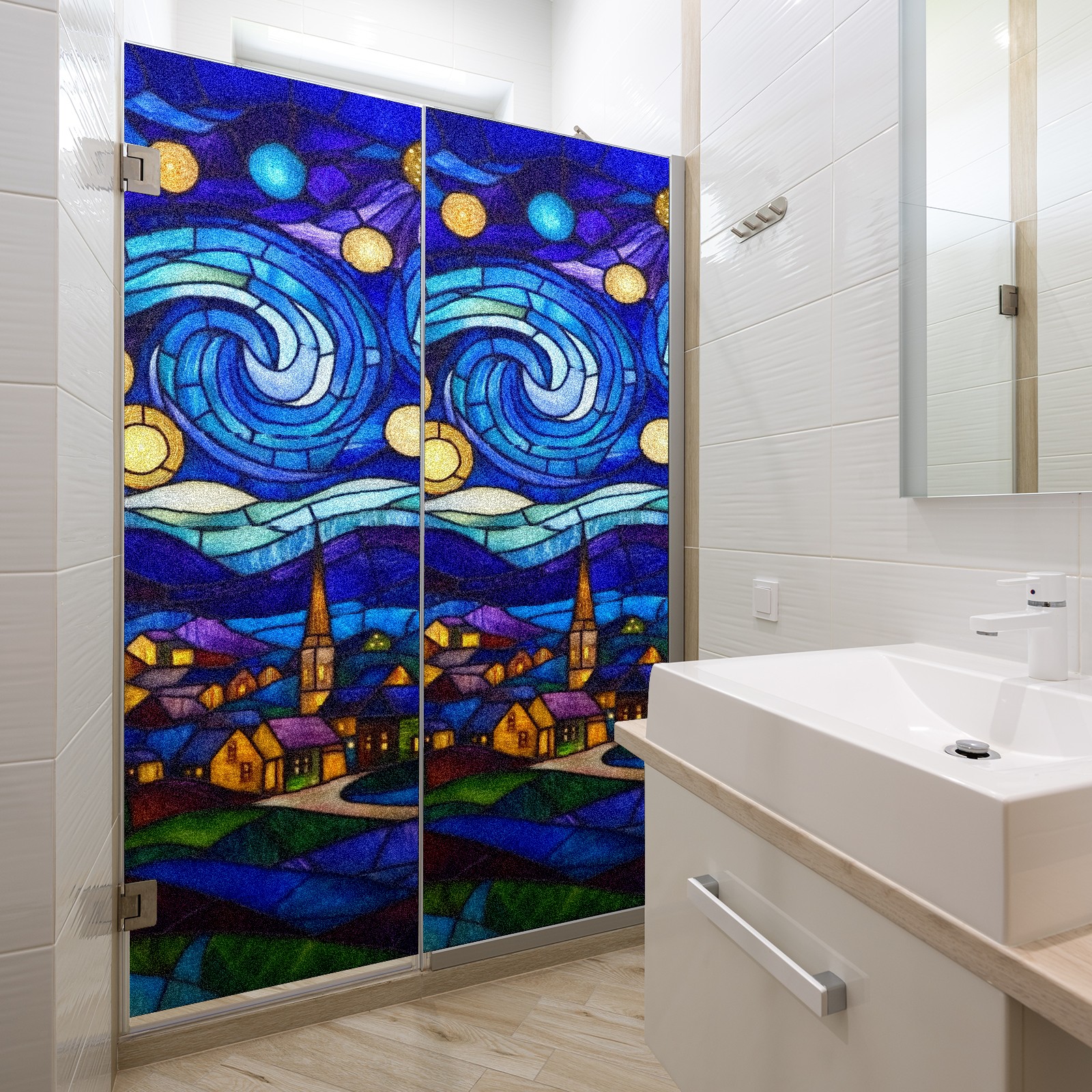 Stained Glass Window Film - Decorative Privacy Film for Windows, Peel and Stick Window Film for Bathroom/Office/Shower, Reusable and Easy to Cut 17.7"x23.6" (Starry Night)