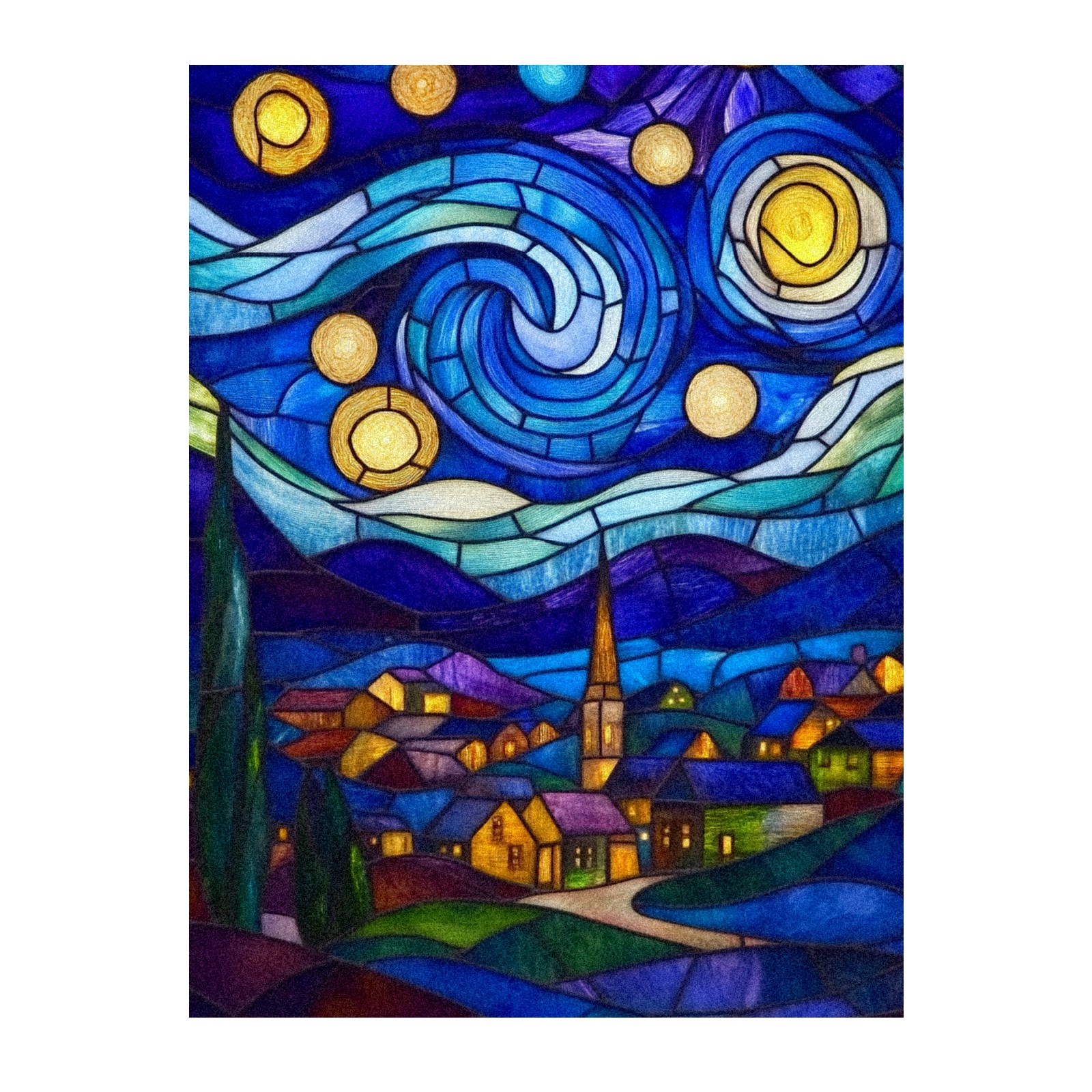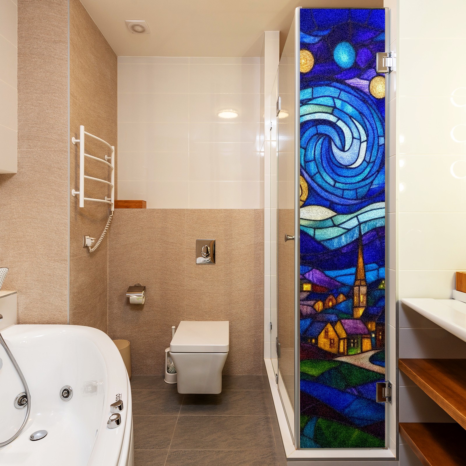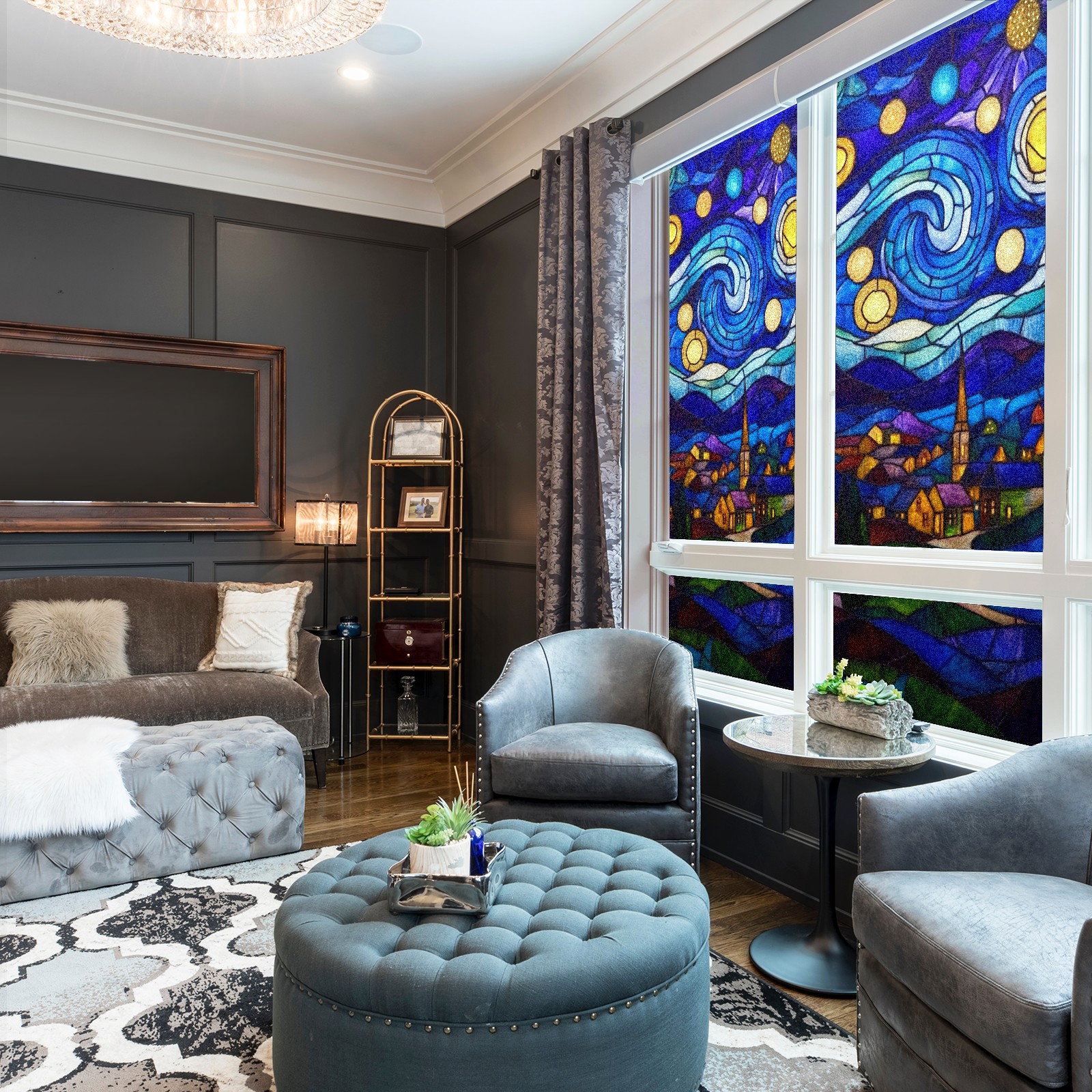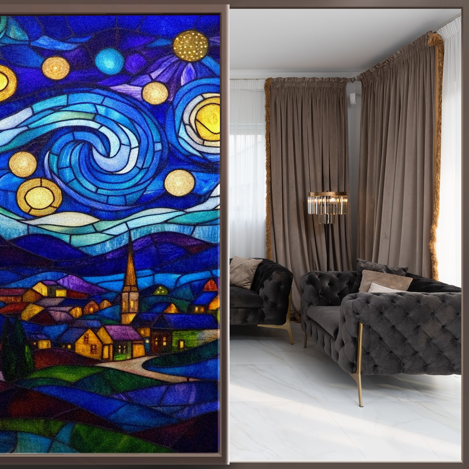 Stained Glass Window Film - Decorative Privacy Film for Windows, Peel and Stick Window Film for Bathroom/Office/Shower, Reusable and Easy to Cut 17.7"x23.6" (Starry Night)
