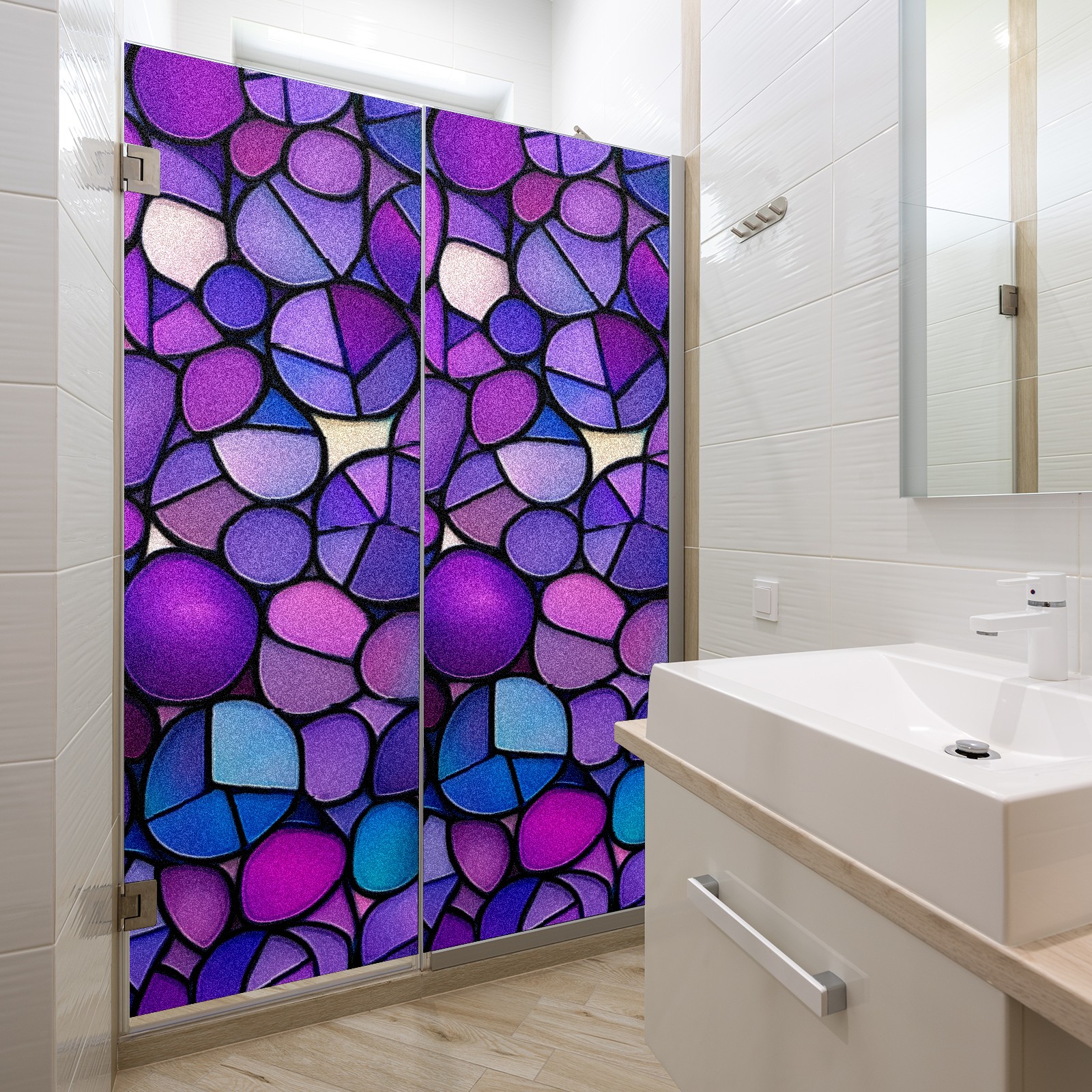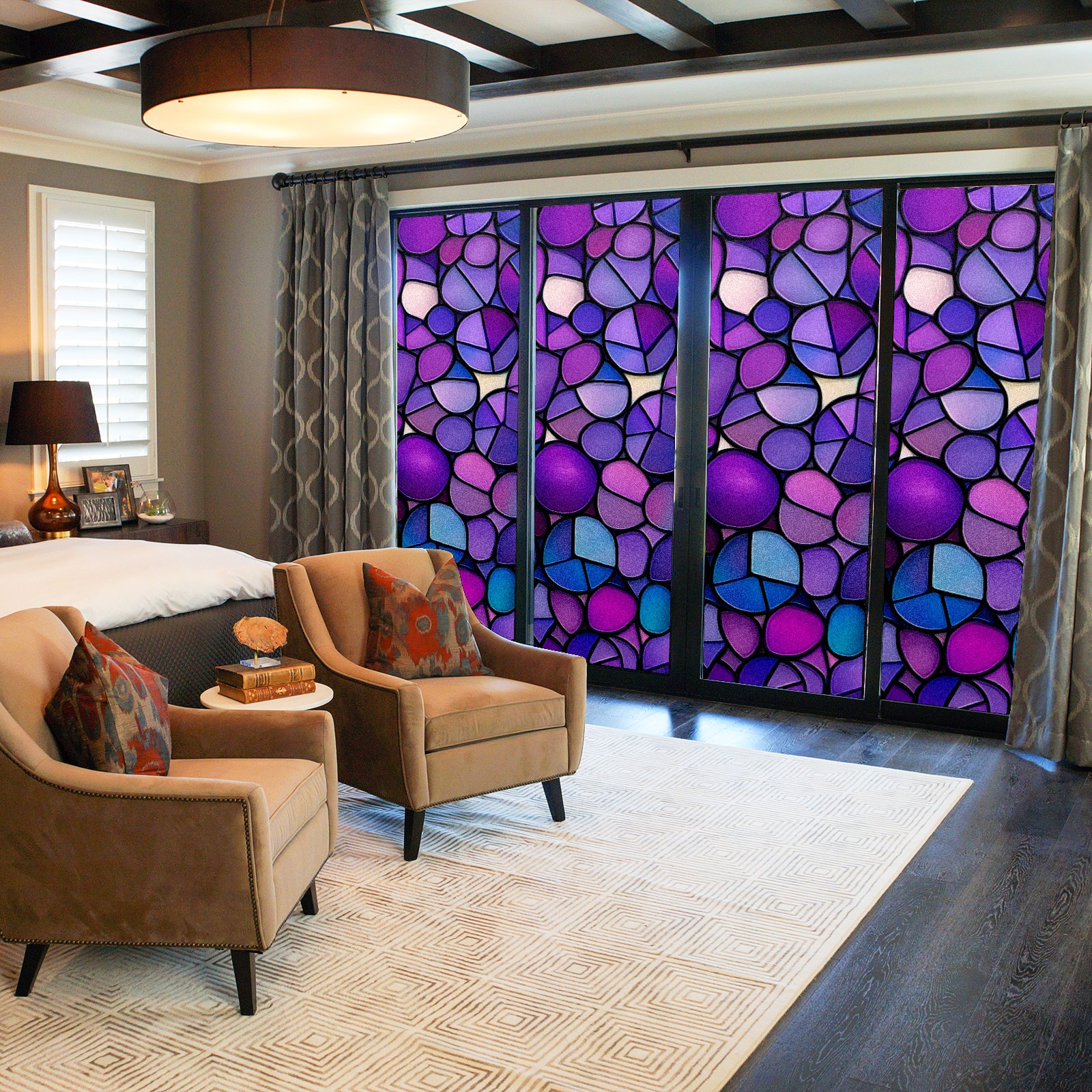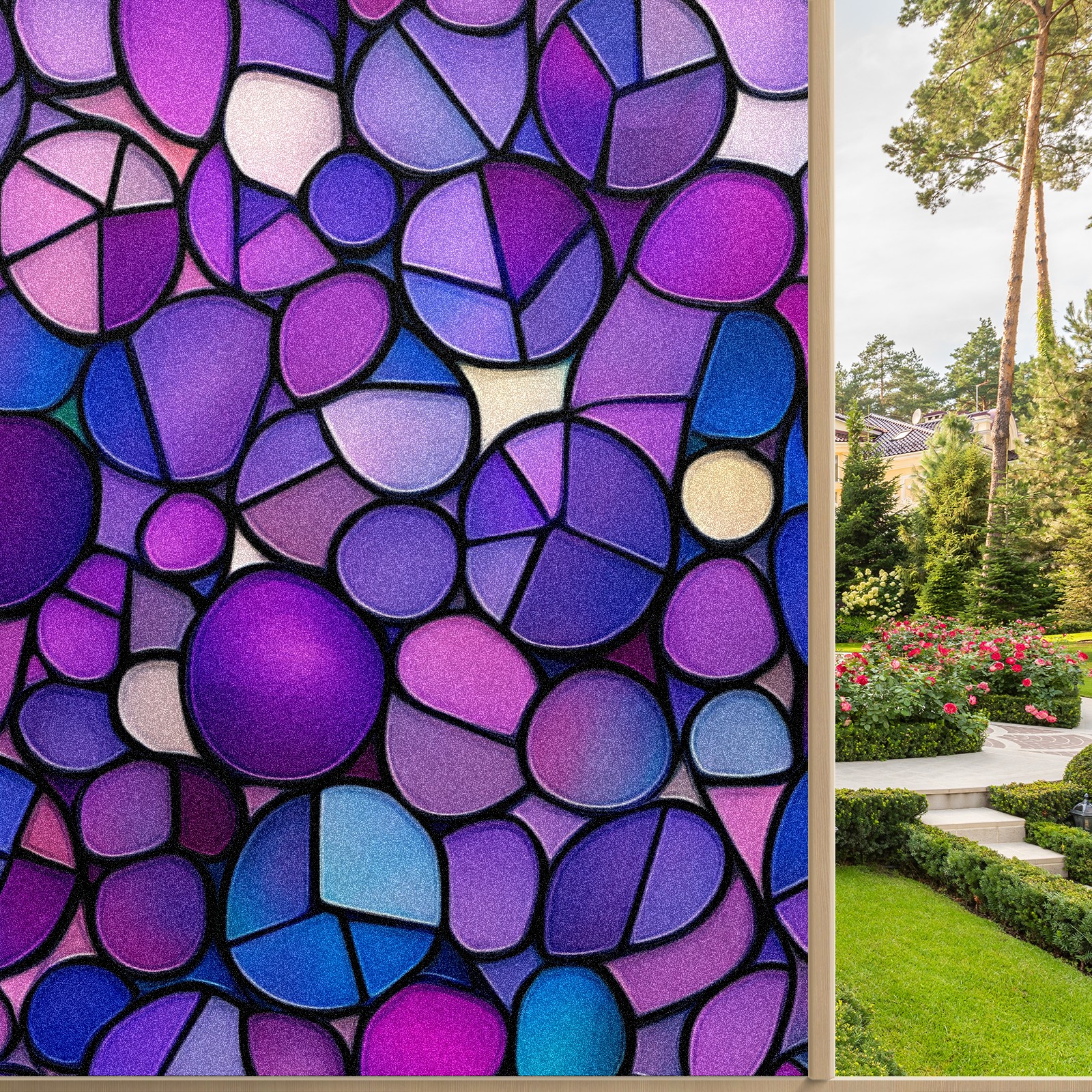 Stained Glass Window Film - Decorative Privacy Film for Windows, Peel and Stick Window Film for Bathroom/Office/Shower, Reusable and Easy to Cut 17.7"x23.6" (Purple-stained Glass)