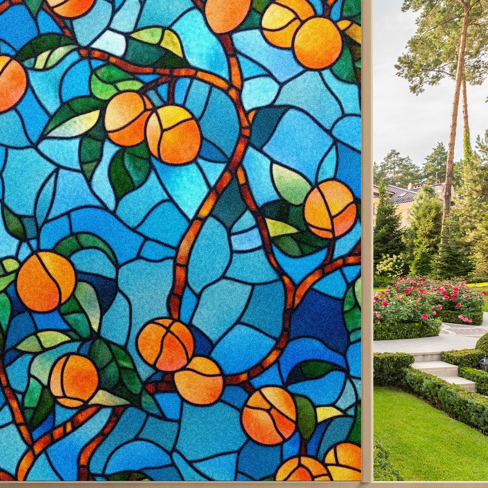 Stained Glass Window Film - Decorative Privacy Film for Windows, Peel and Stick Window Film for Bathroom/Office/Shower, Reusable and Easy to Cut 17.7"x23.6" (Orange Tree (2))