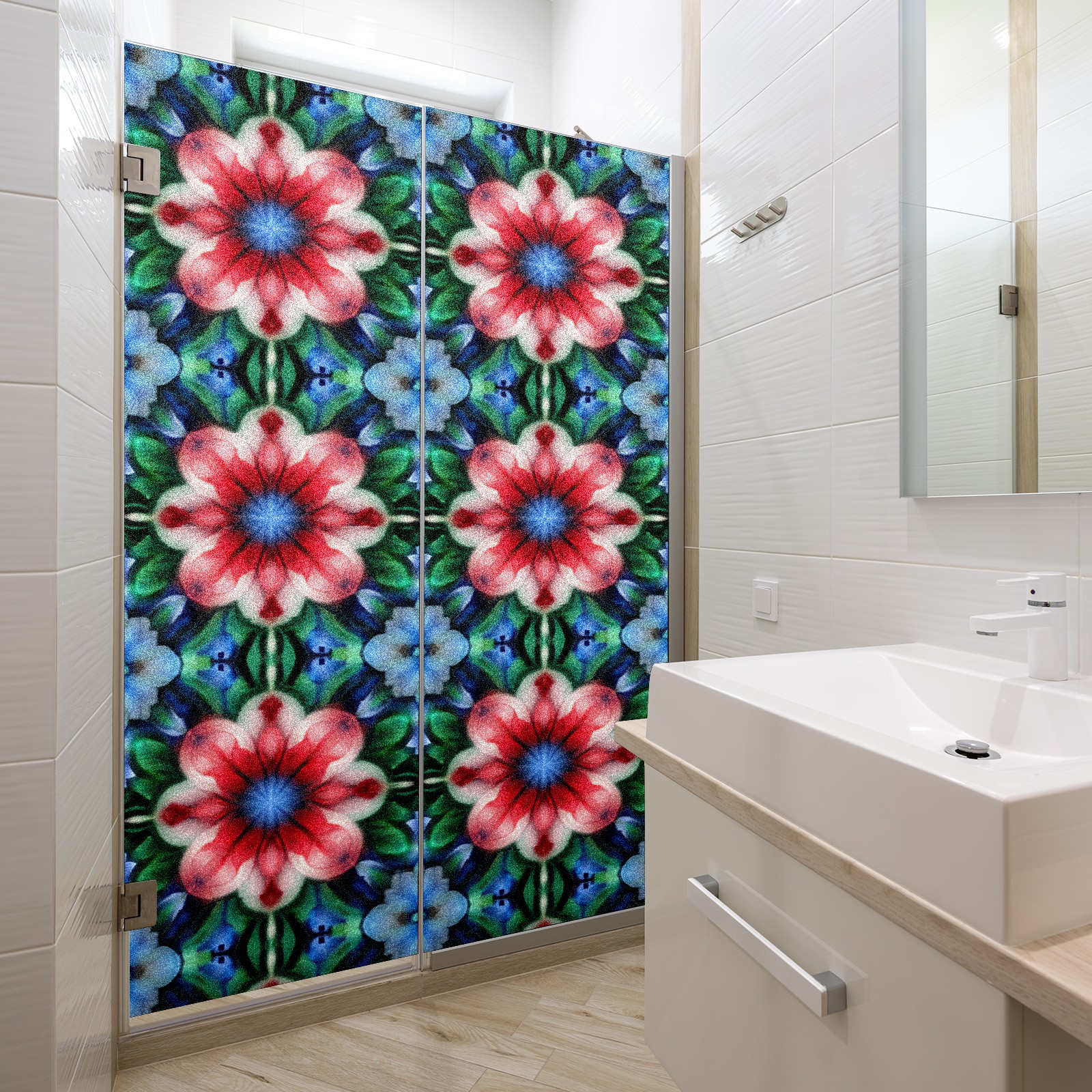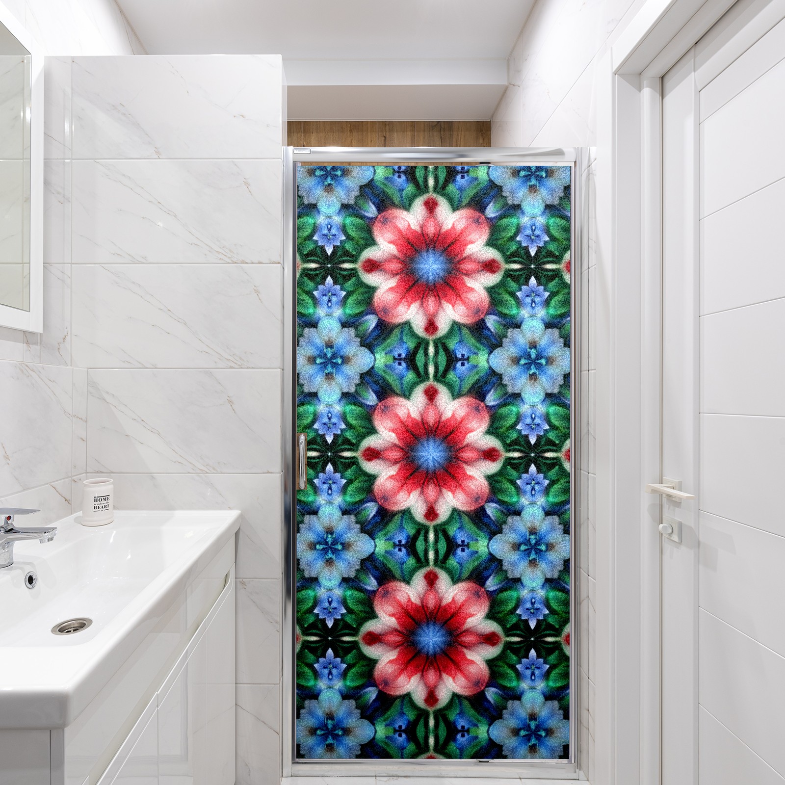 Stained Glass Window Film - Decorative Privacy Film for Windows, Peel and Stick Window Film for Bathroom/Office/Shower, Reusable and Easy to Cut 17.7"x23.6" (Red And Green Flowers)
