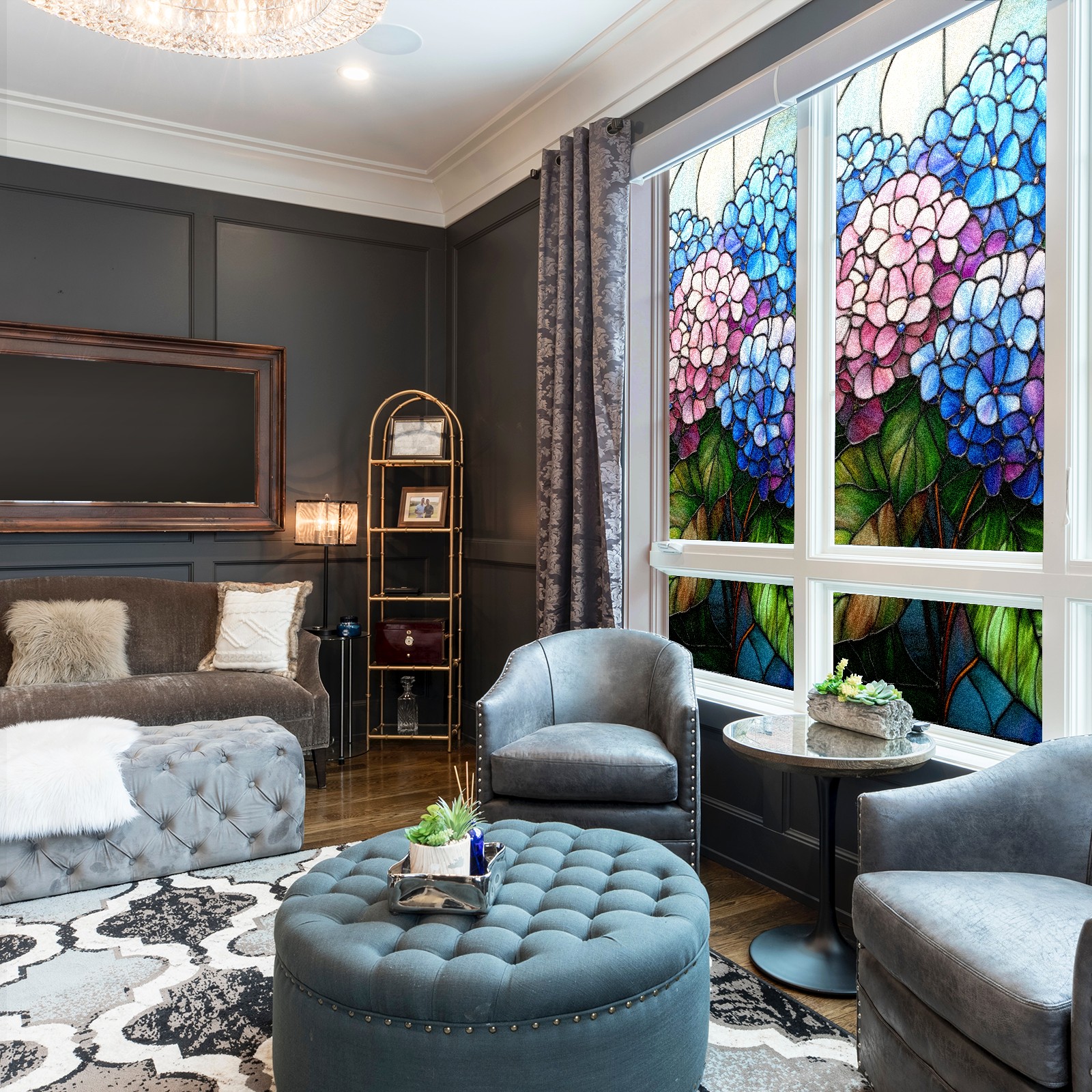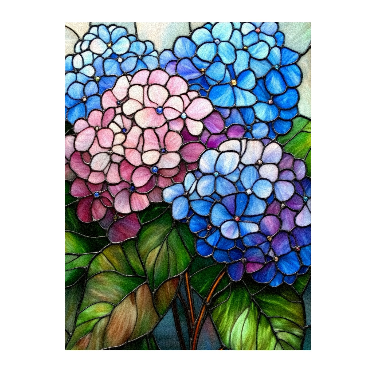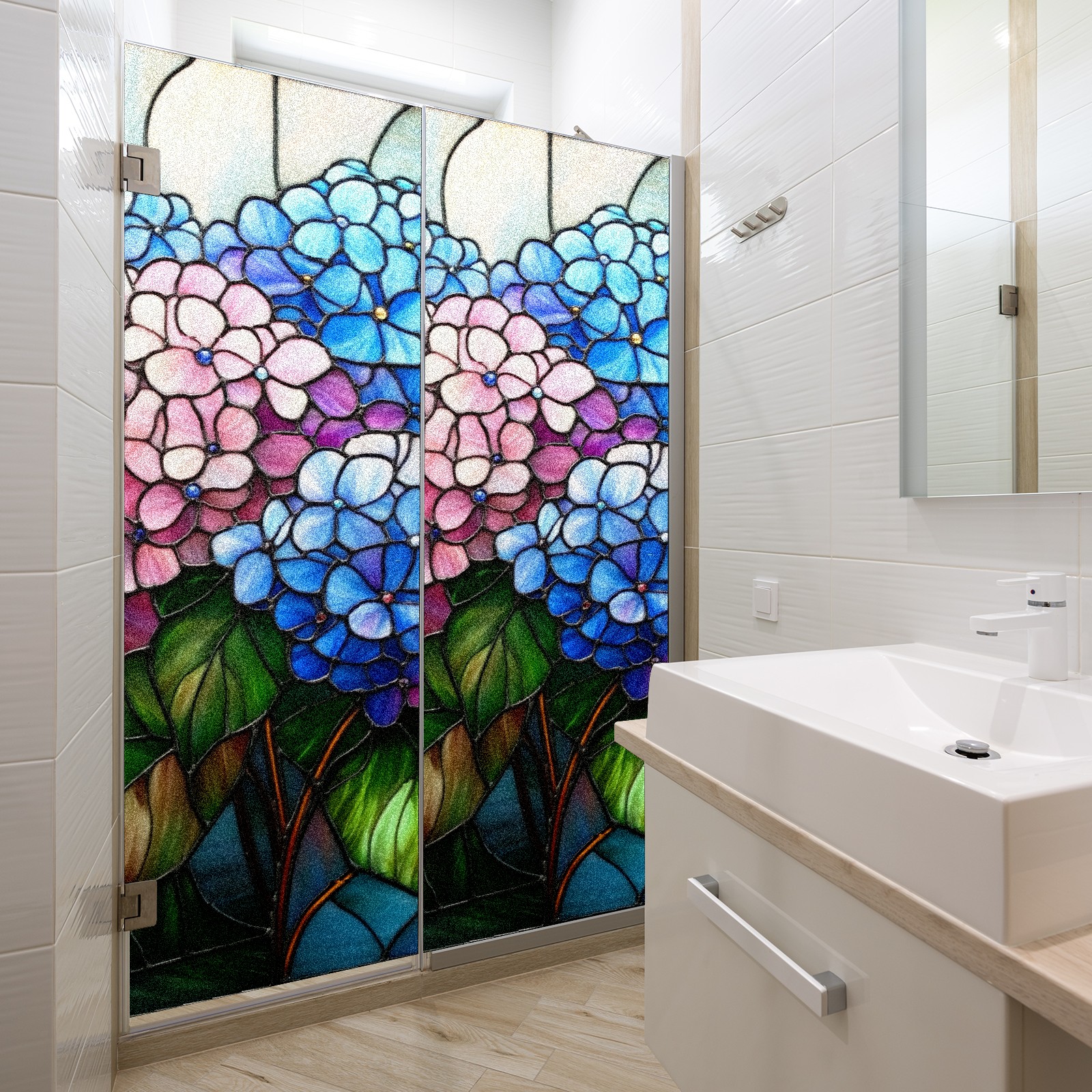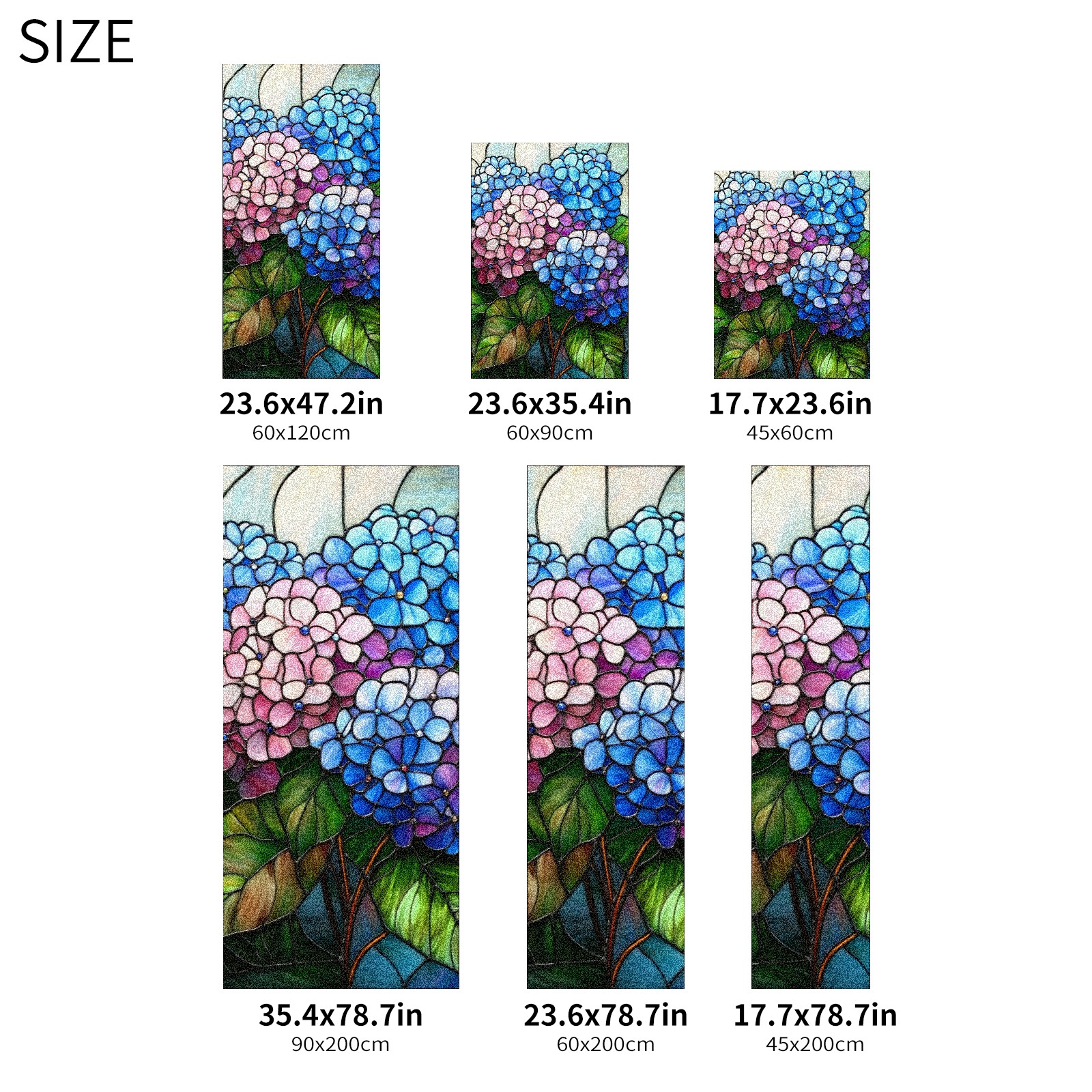 Stained Glass Window Film - Decorative Privacy Film for Windows, Peel and Stick Window Film for Bathroom/Office/Shower, Reusable and Easy to Cut 17.7"x23.6" (Hydrangea Flowers)