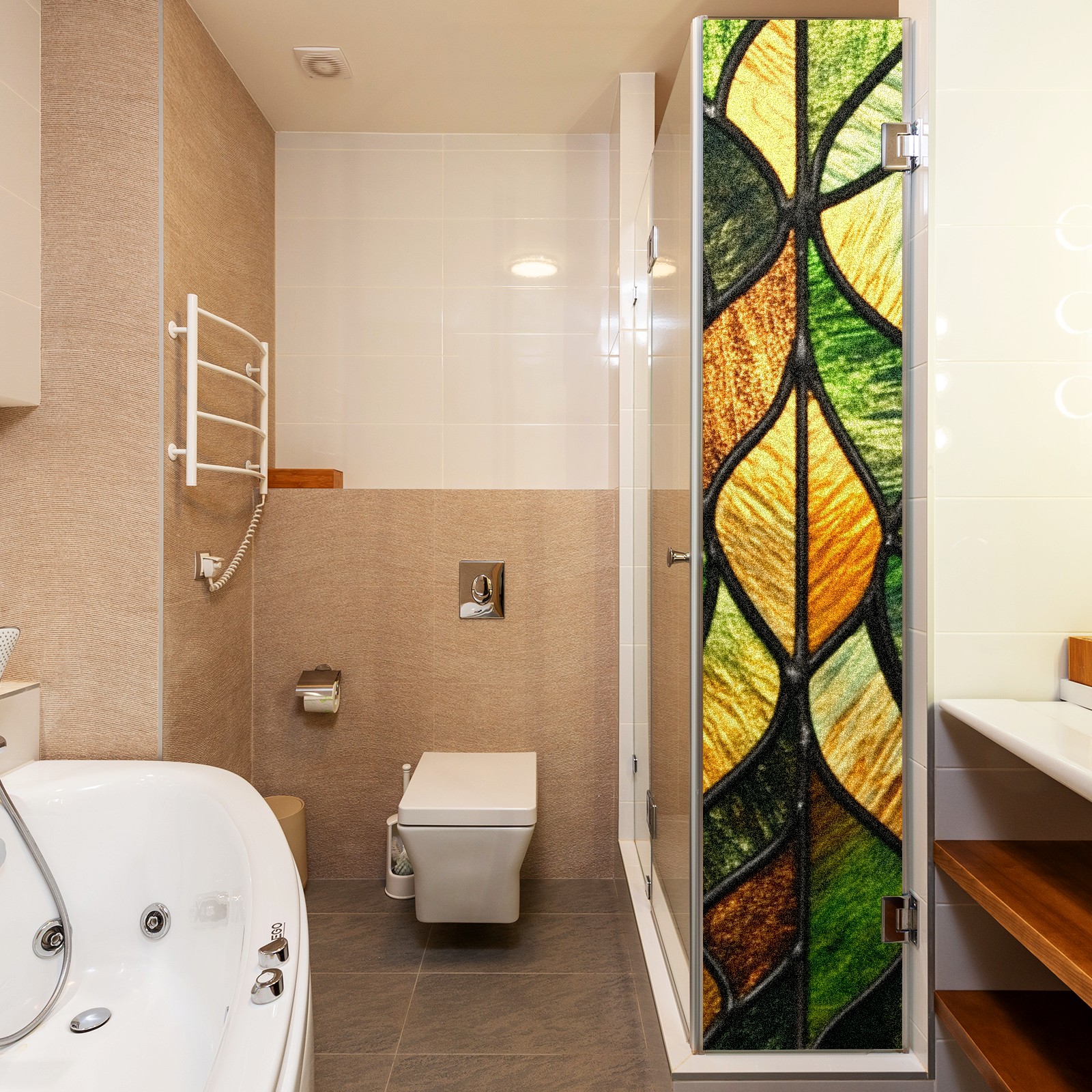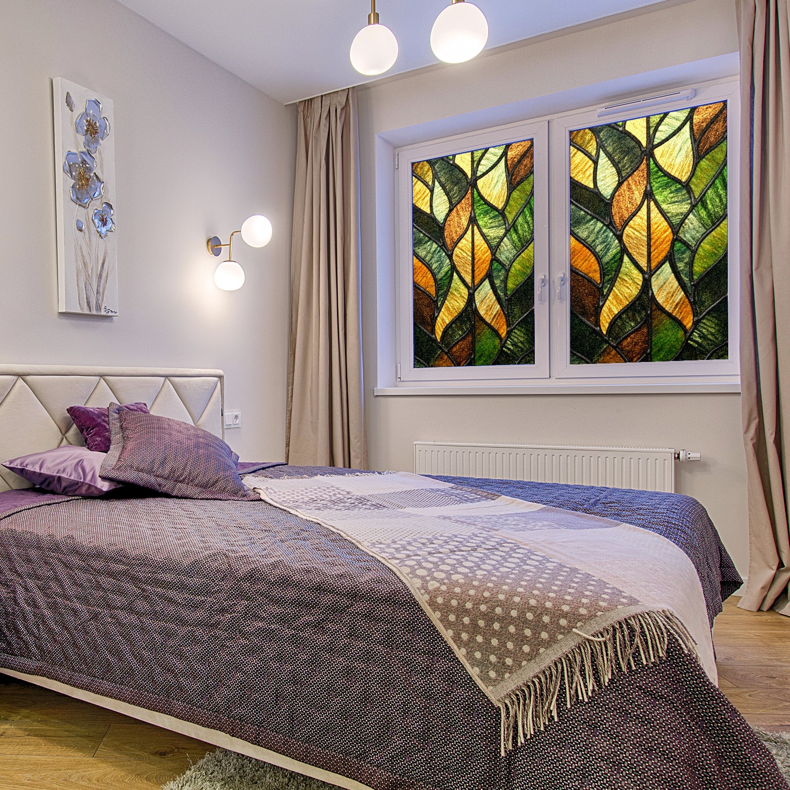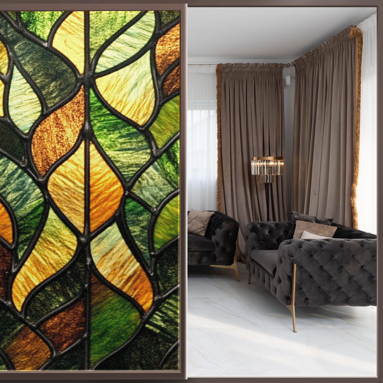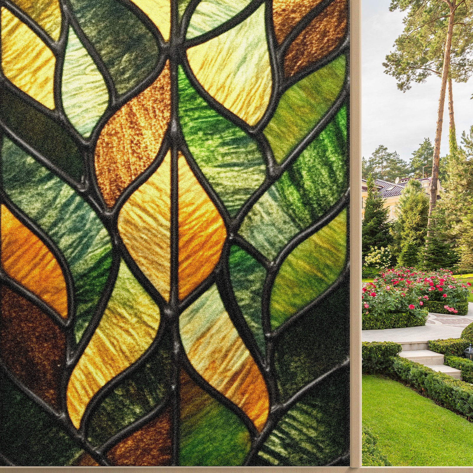 Stained Glass Window Film - Decorative Privacy Film for Windows, Peel and Stick Window Film for Bathroom/Office/Shower, Reusable and Easy to Cut 17.7"x23.6" (Geometric Leaf)