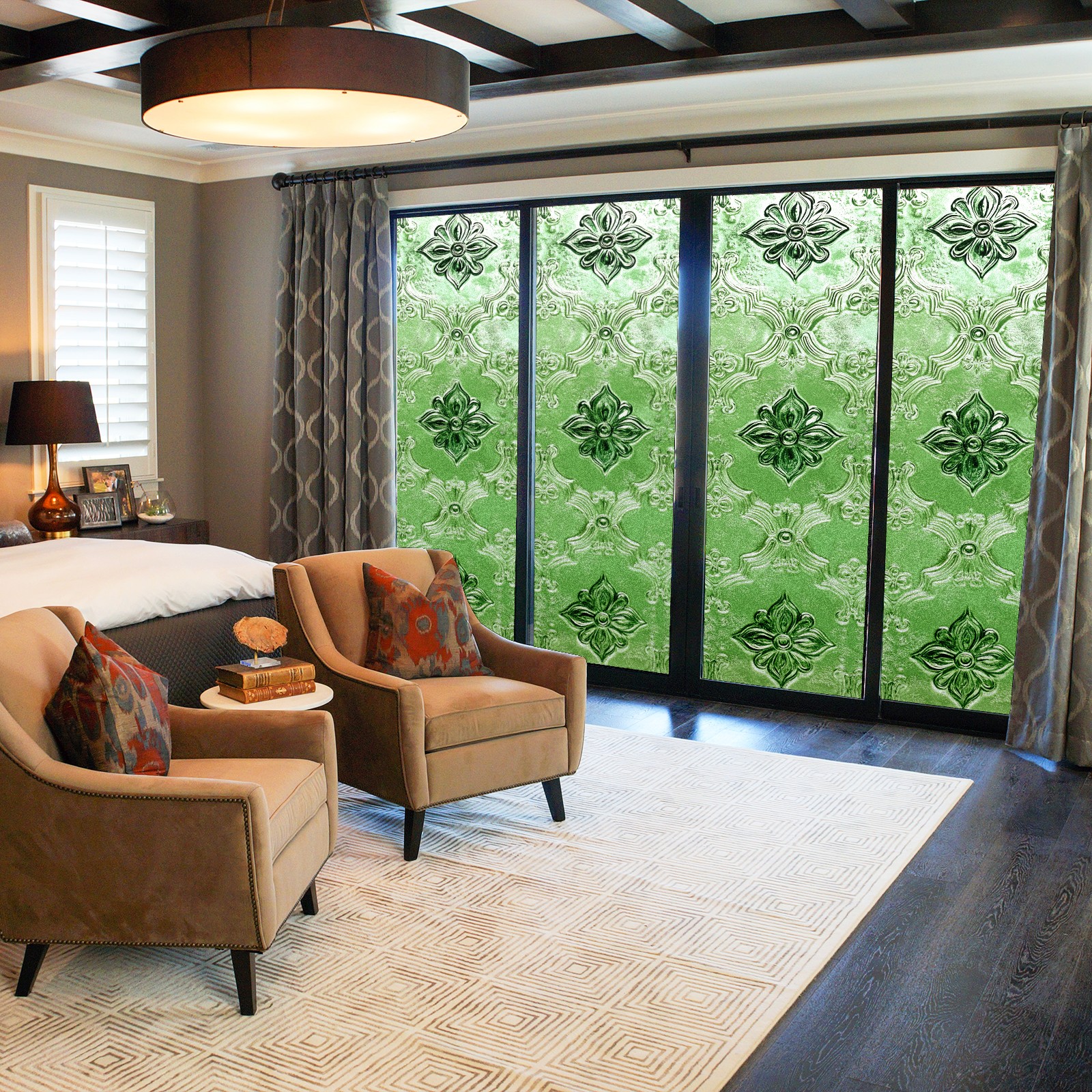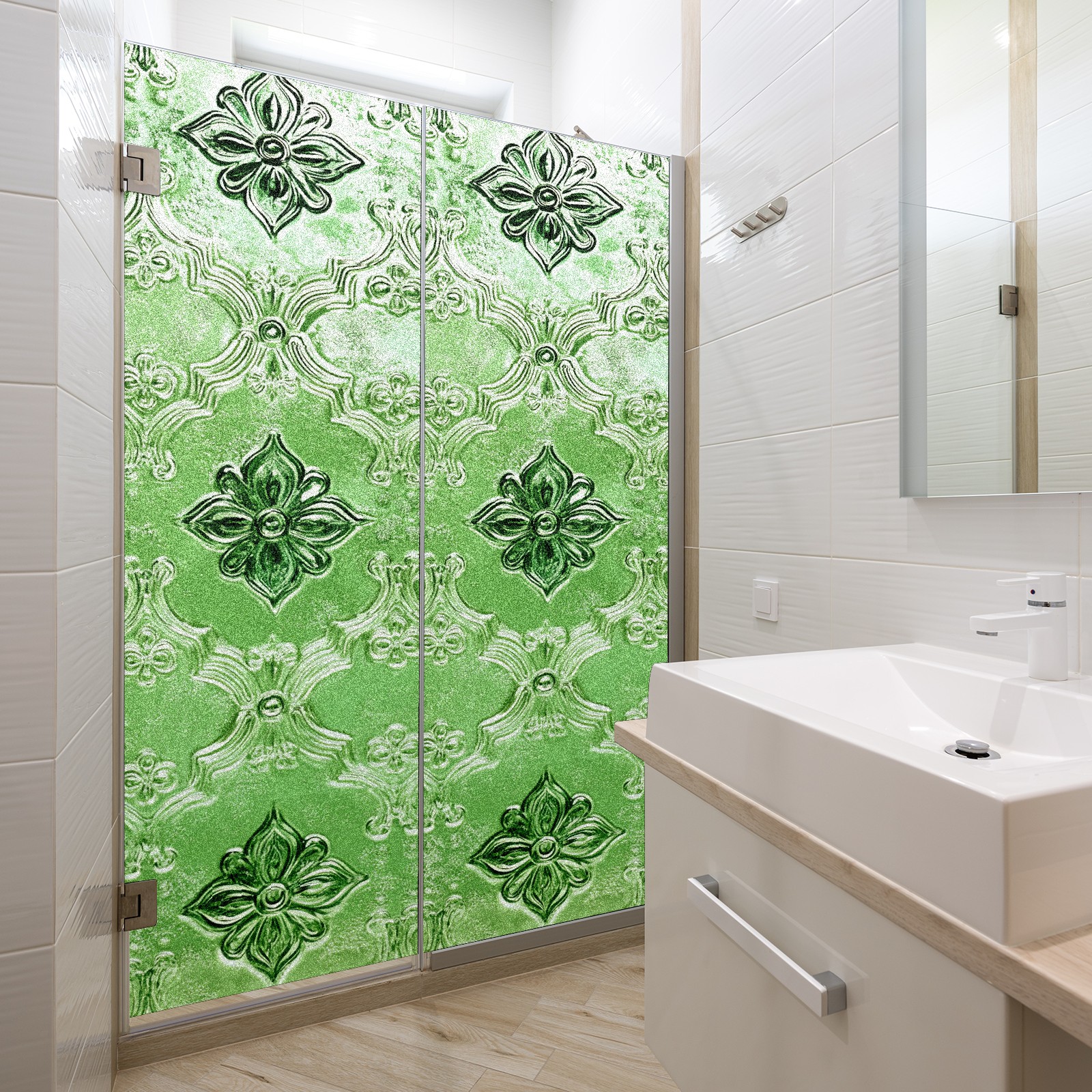 Stained Glass Window Film - Decorative Privacy Film for Windows, Peel and Stick Window Film for Bathroom/Office/Shower, Reusable and Easy to Cut 17.7"x23.6" (Green Glass)