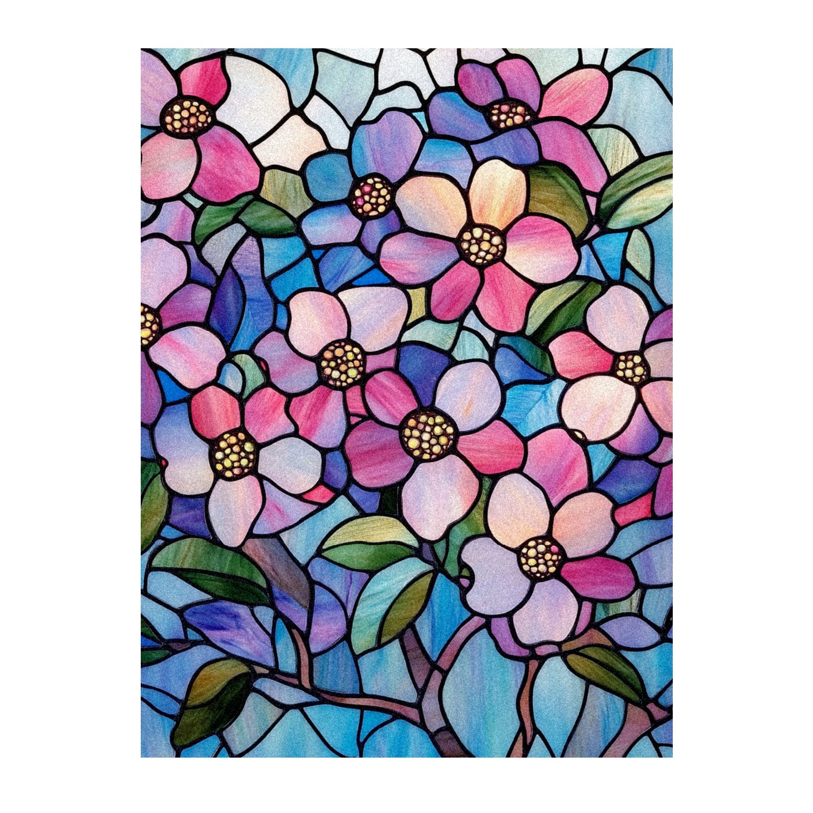 Stained Glass Window Film - Decorative Privacy Film for Windows, Peel and Stick Window Film for Bathroom/Office/Shower, Reusable and Easy to Cut 17.7"x23.6" (Dogwood Flowers)