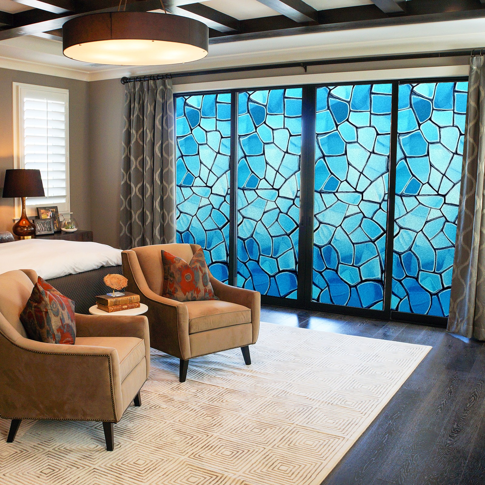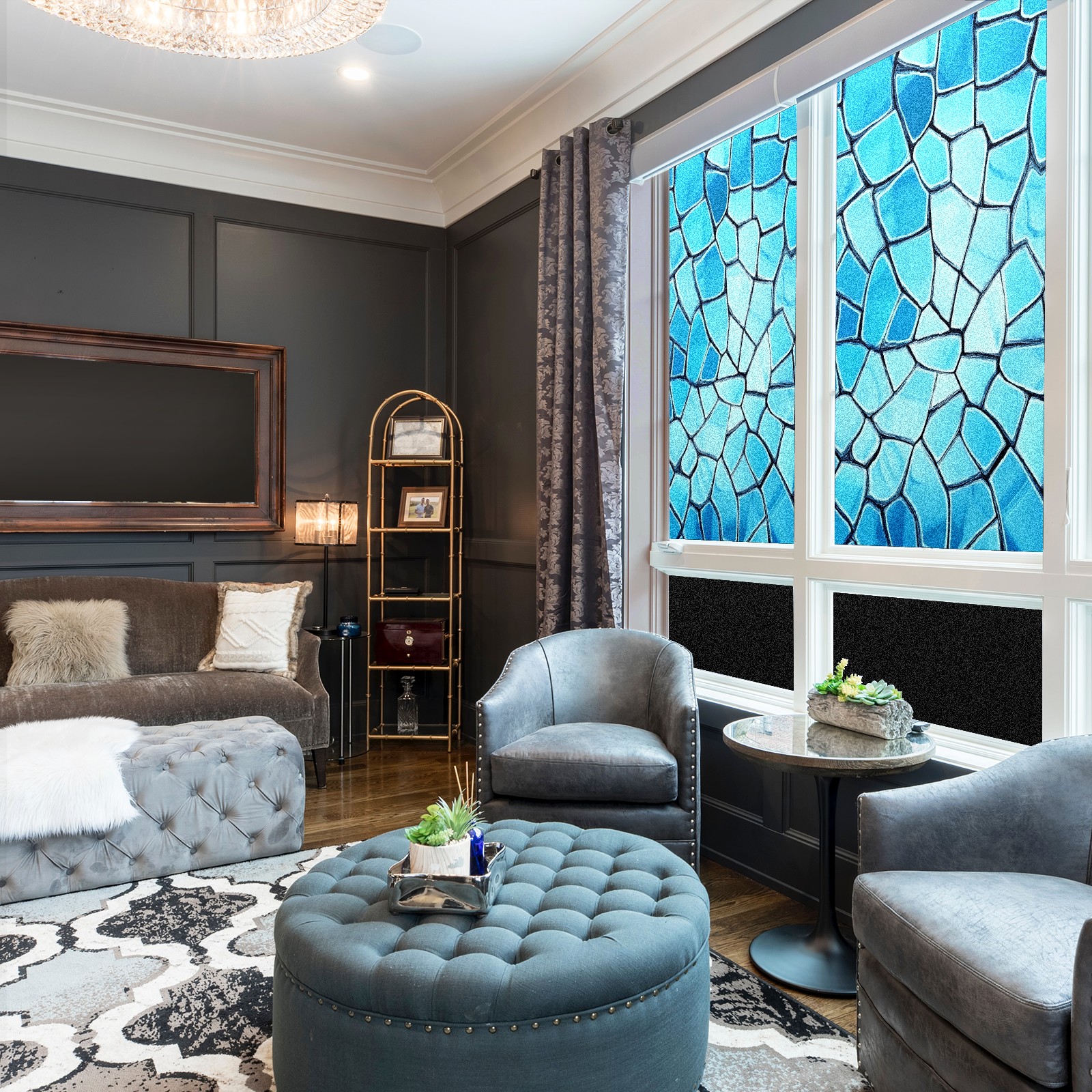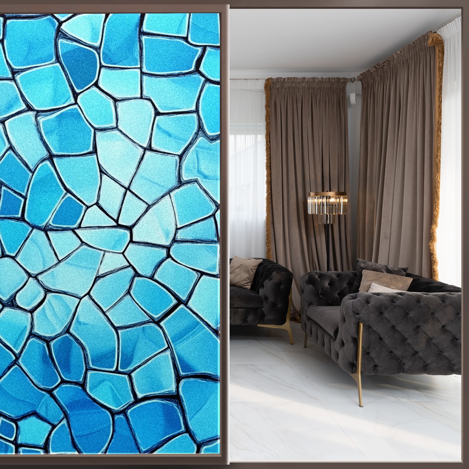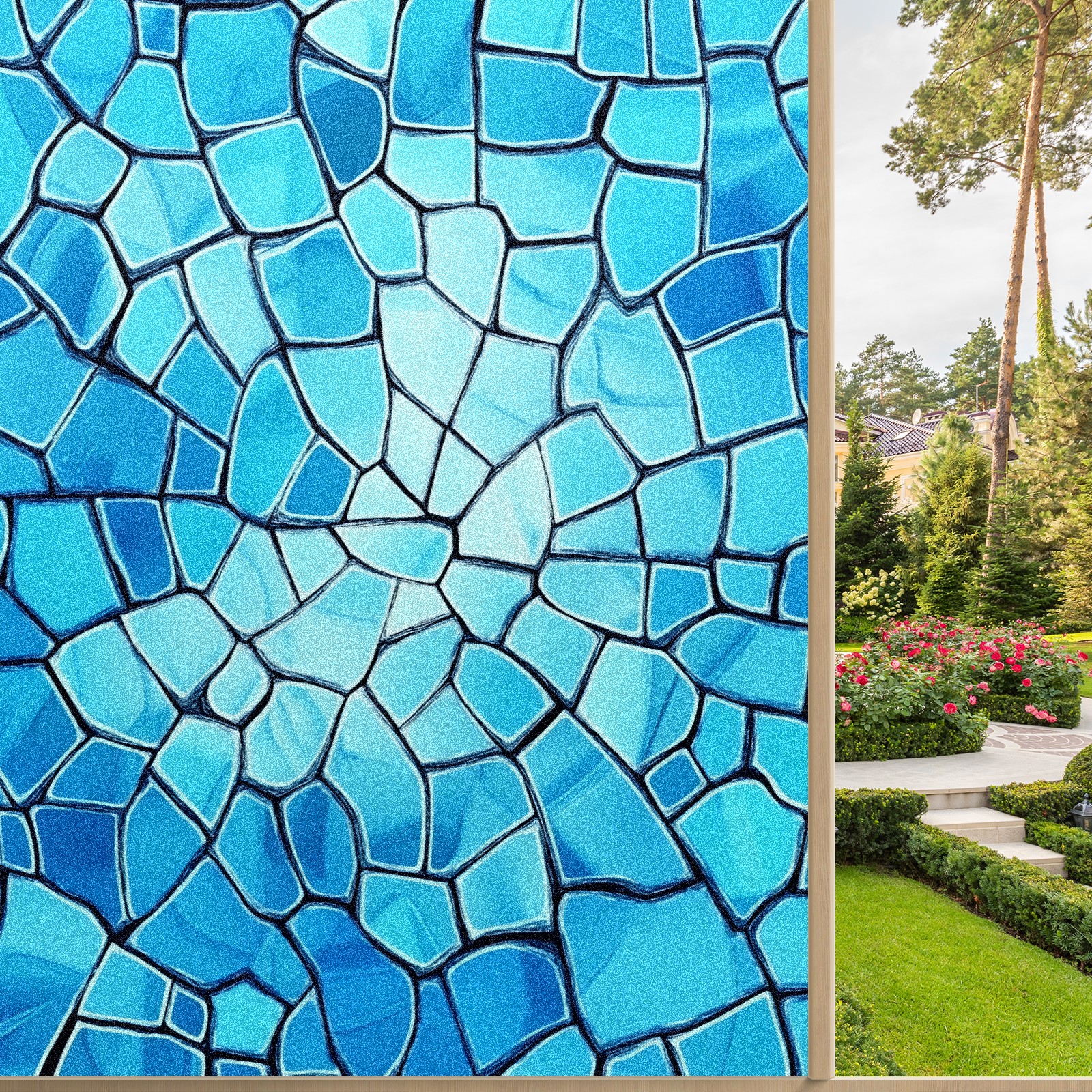 Stained Glass Window Film - Decorative Privacy Film for Windows, Peel and Stick Window Film for Bathroom/Office/Shower, Reusable and Easy to Cut 17.7"x23.6" (Blue)