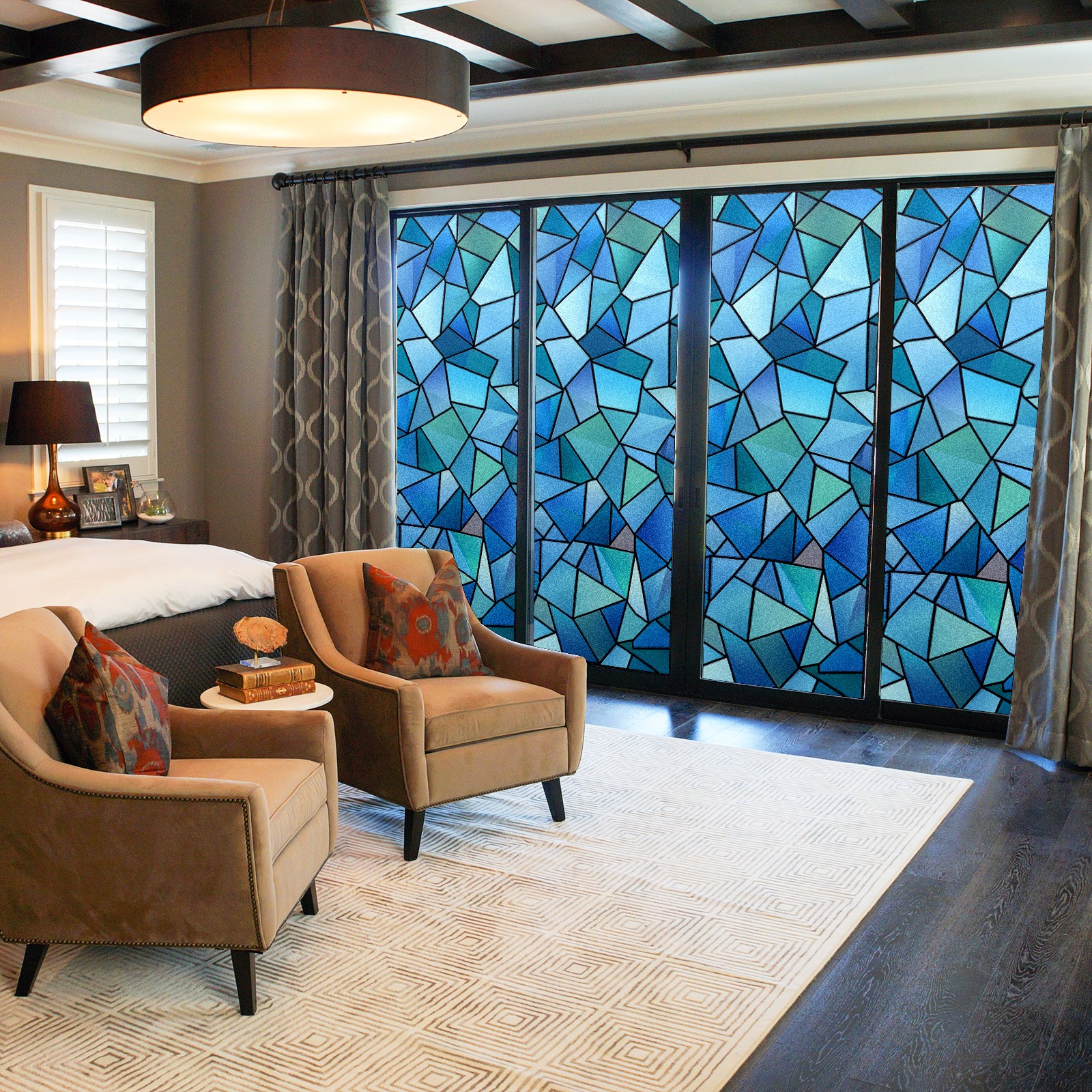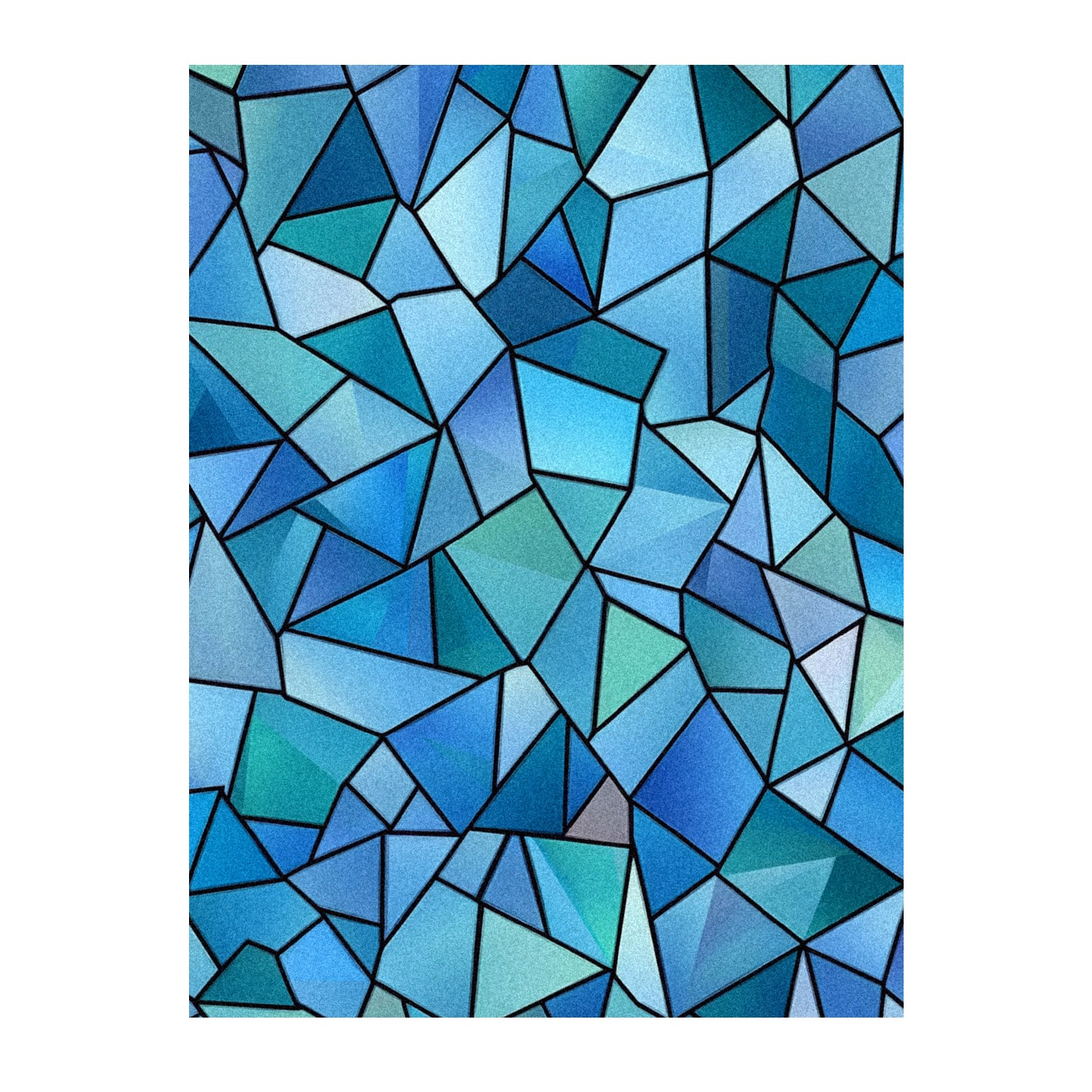 Stained Glass Window Film - Decorative Privacy Film for Windows, Peel and Stick Window Film for Bathroom/Office/Shower, Reusable and Easy to Cut 17.7"x23.6" (Blue And Teal Geometric Triangles)
