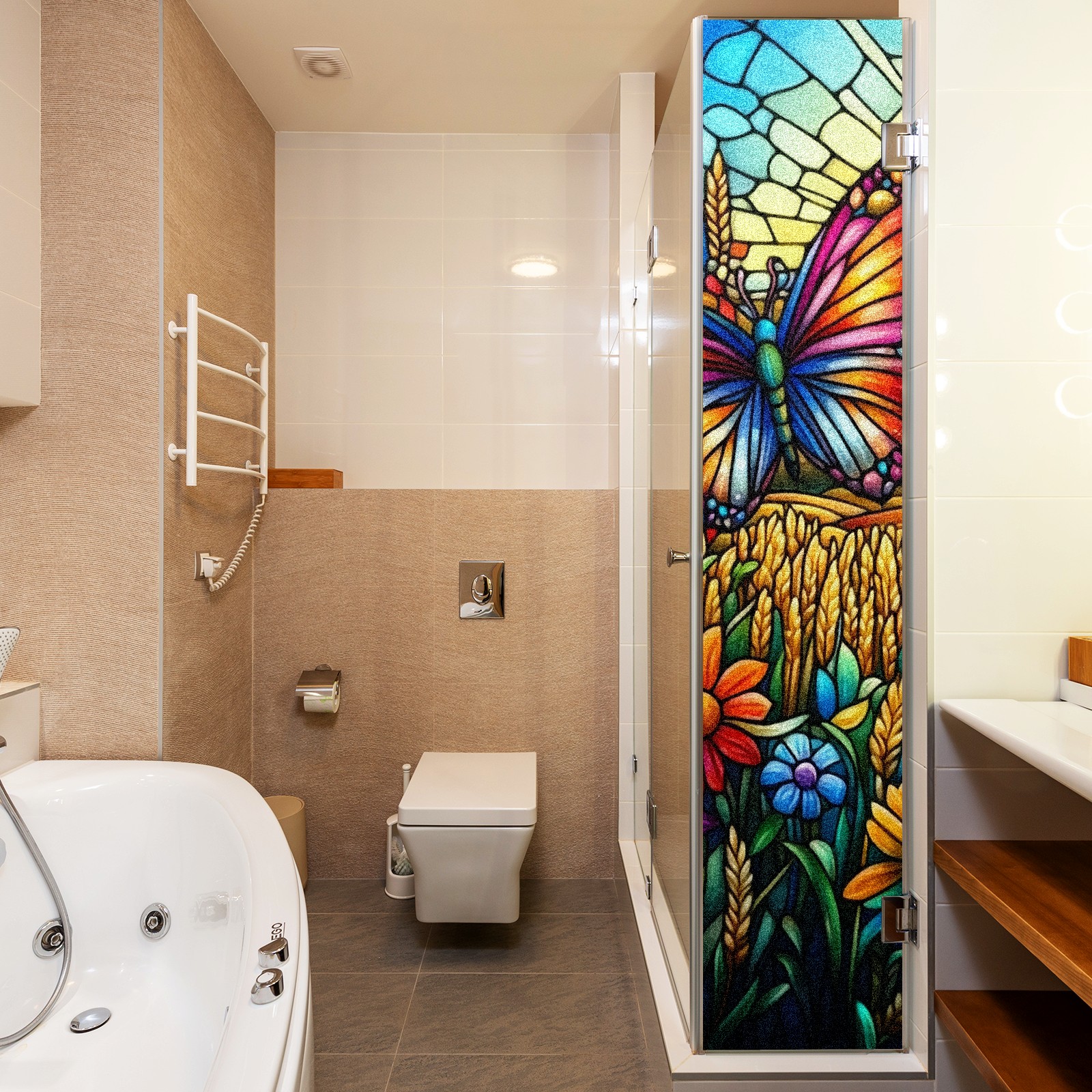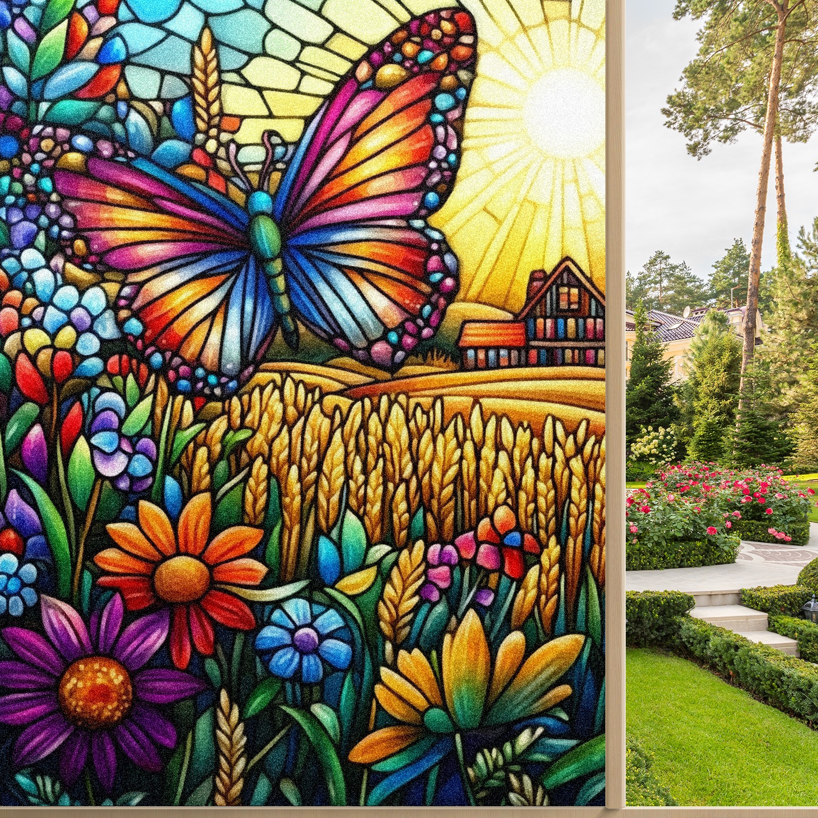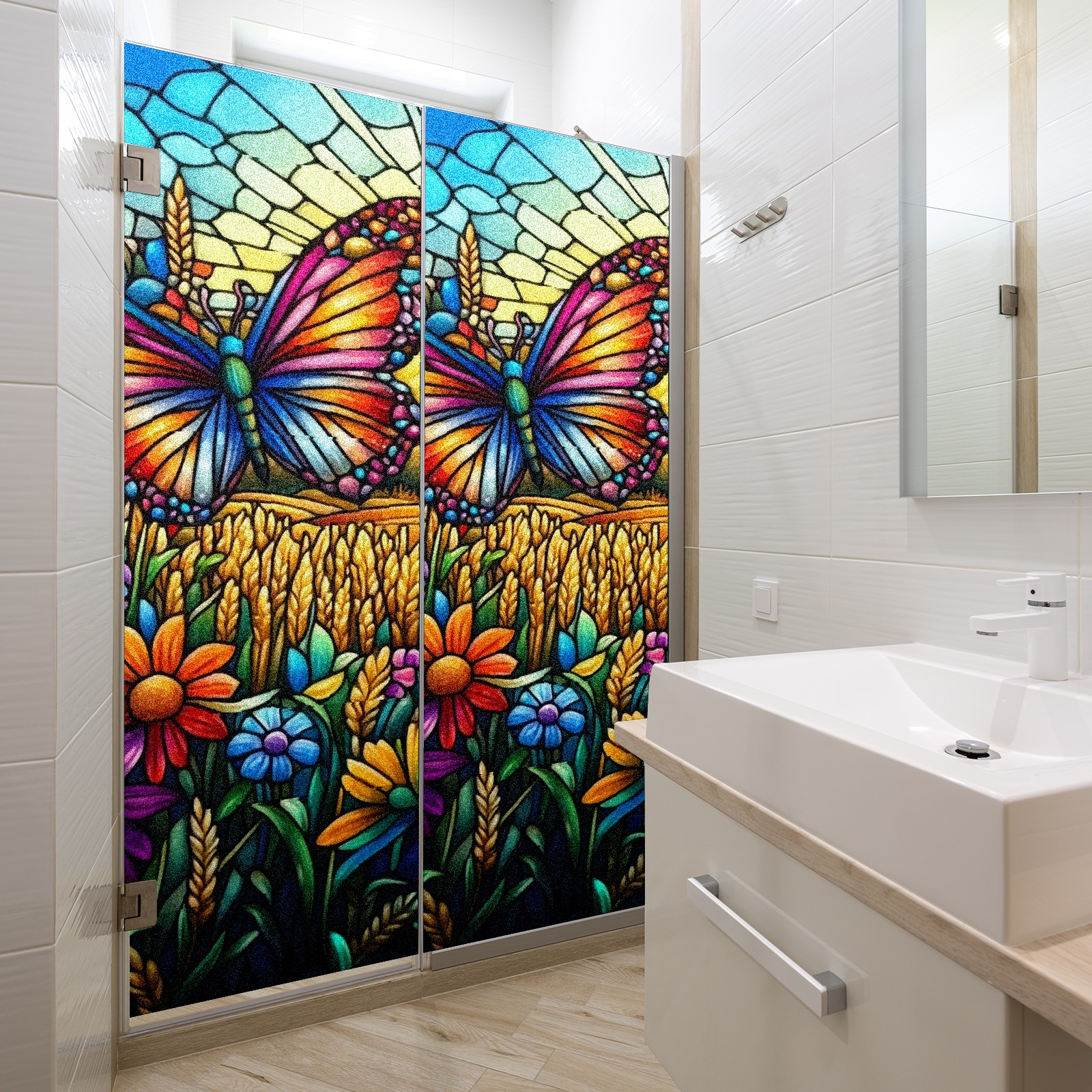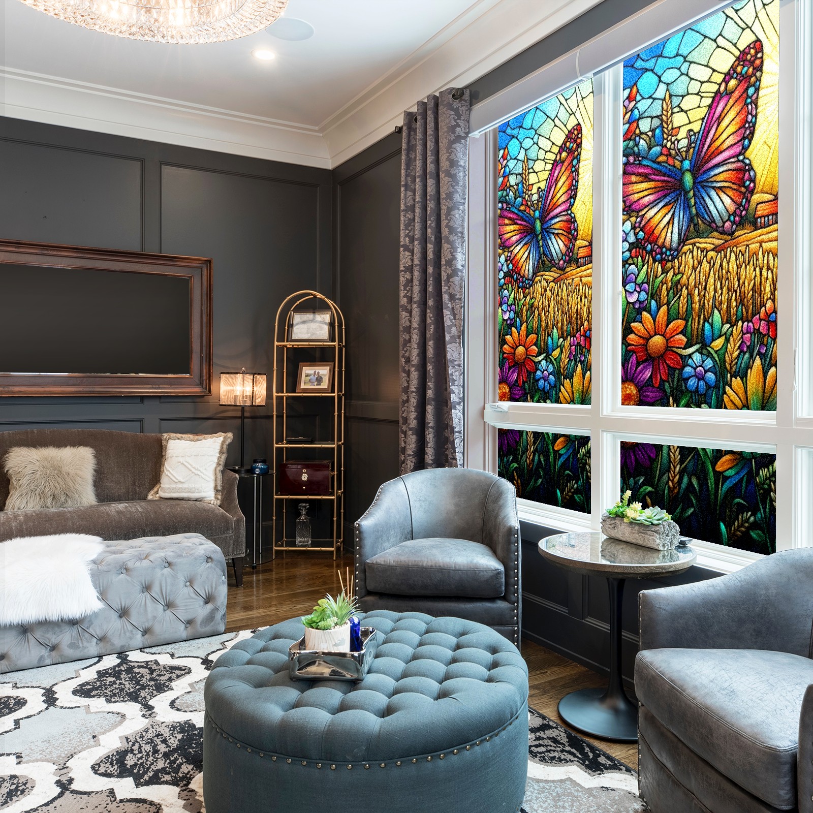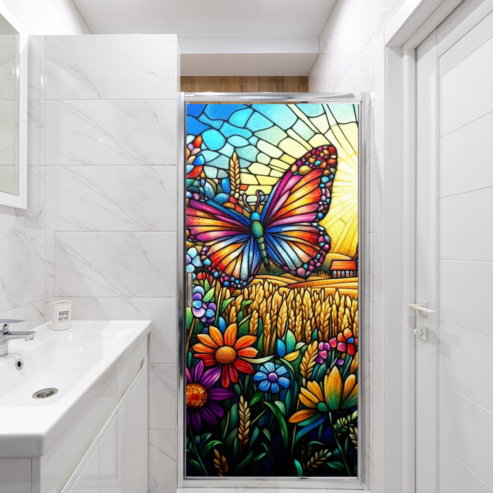 Stained Glass Window Film - Decorative Privacy Film for Windows, Peel and Stick Window Film for Bathroom/Office/Shower, Reusable and Easy to Cut 17.7"x23.6" (Butterfly)
