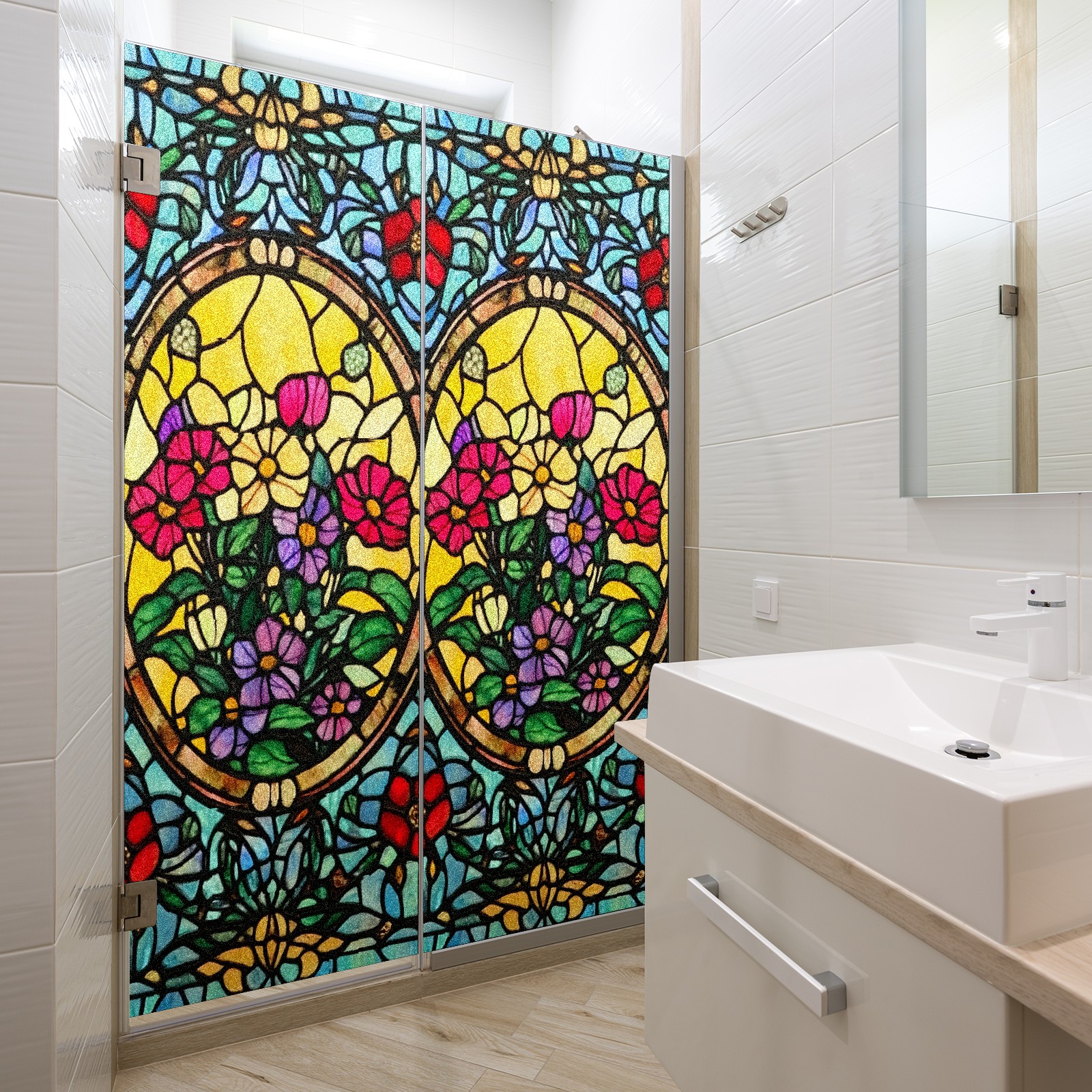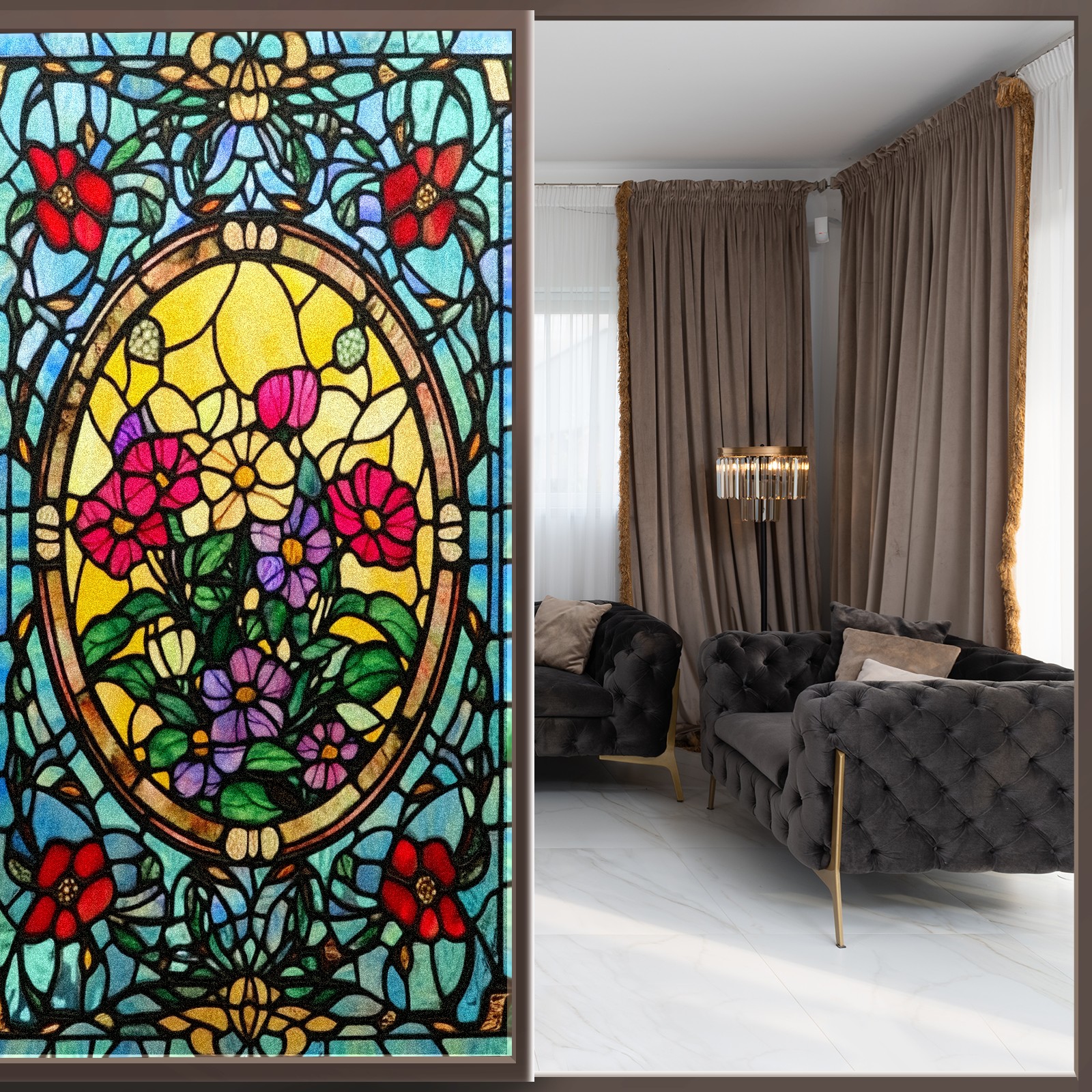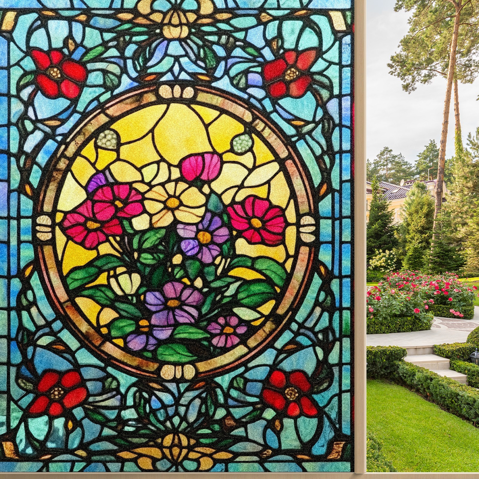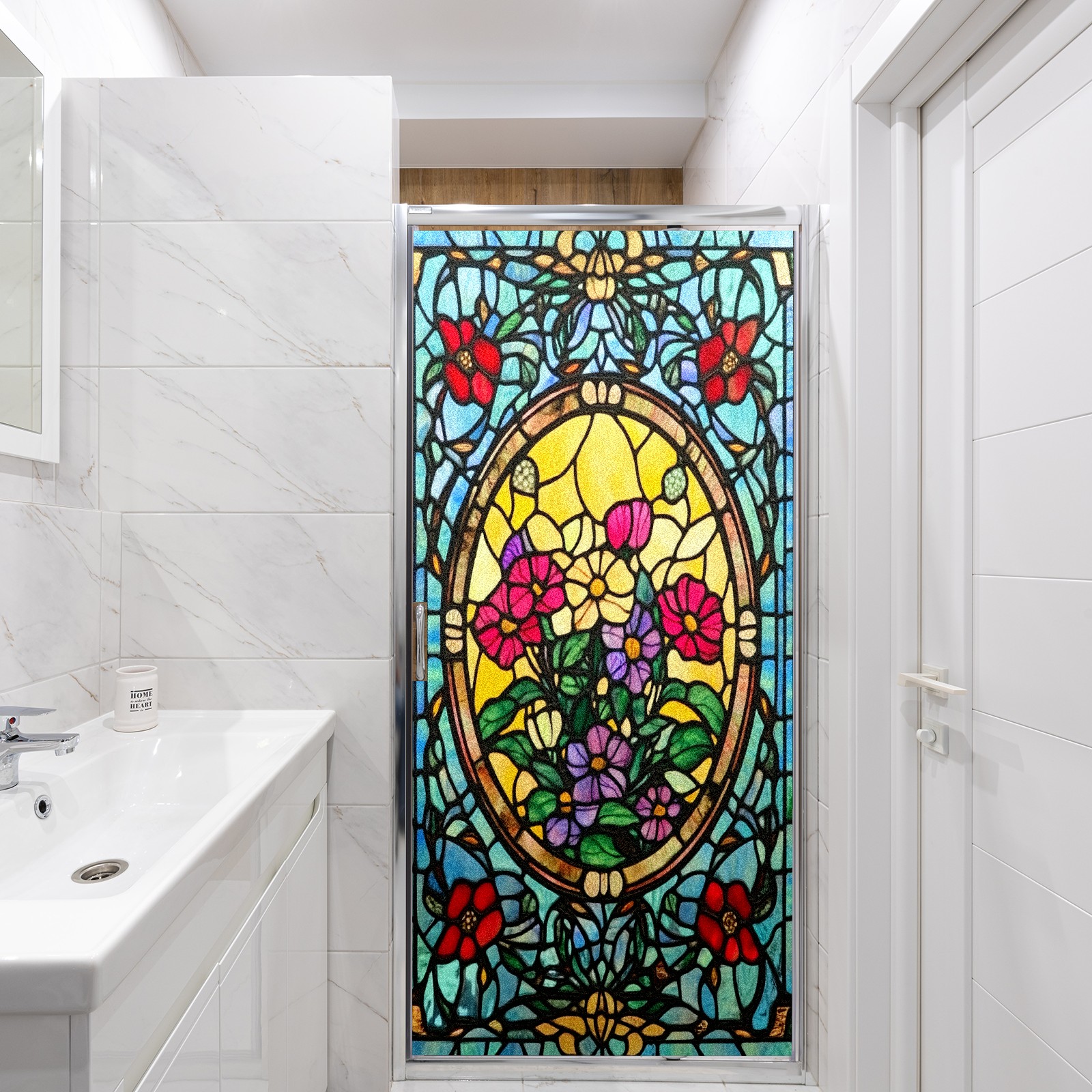 Stained Glass Window Film - Decorative Privacy Film for Windows, Peel and Stick Window Film for Bathroom/Office/Shower, Reusable and Easy to Cut 17.7"x23.6" (Rose)