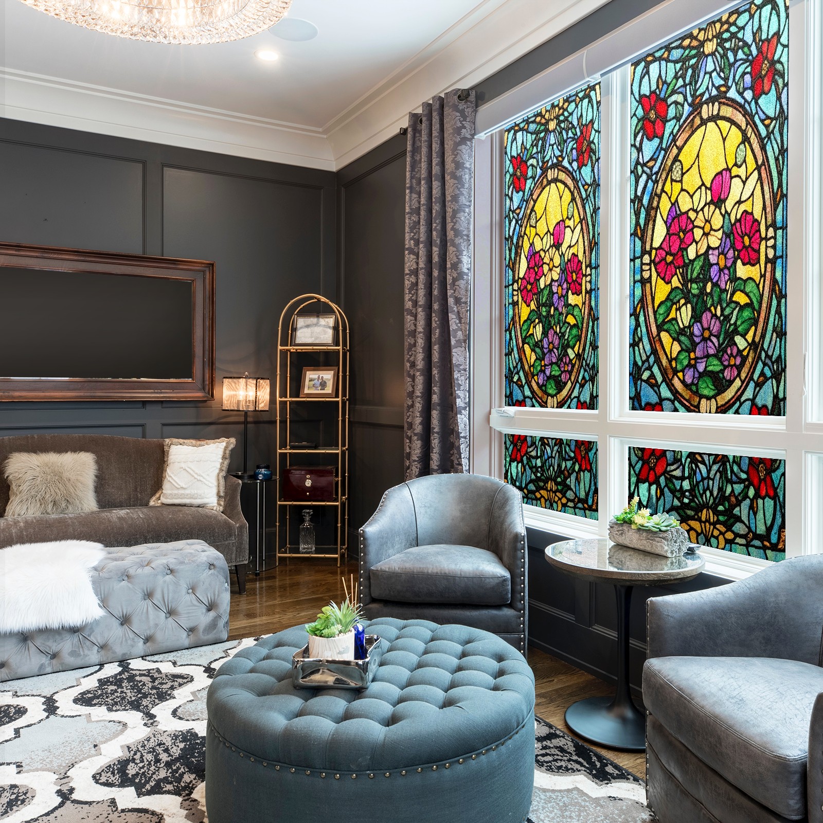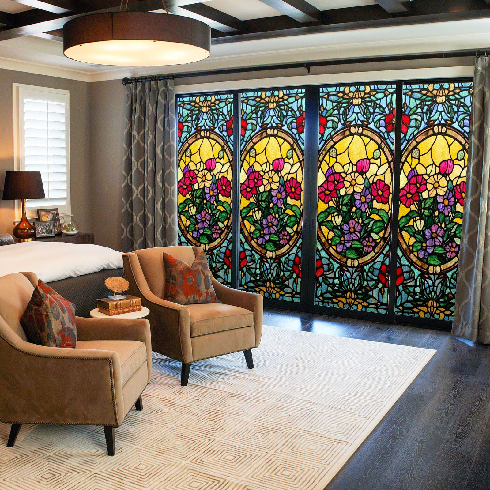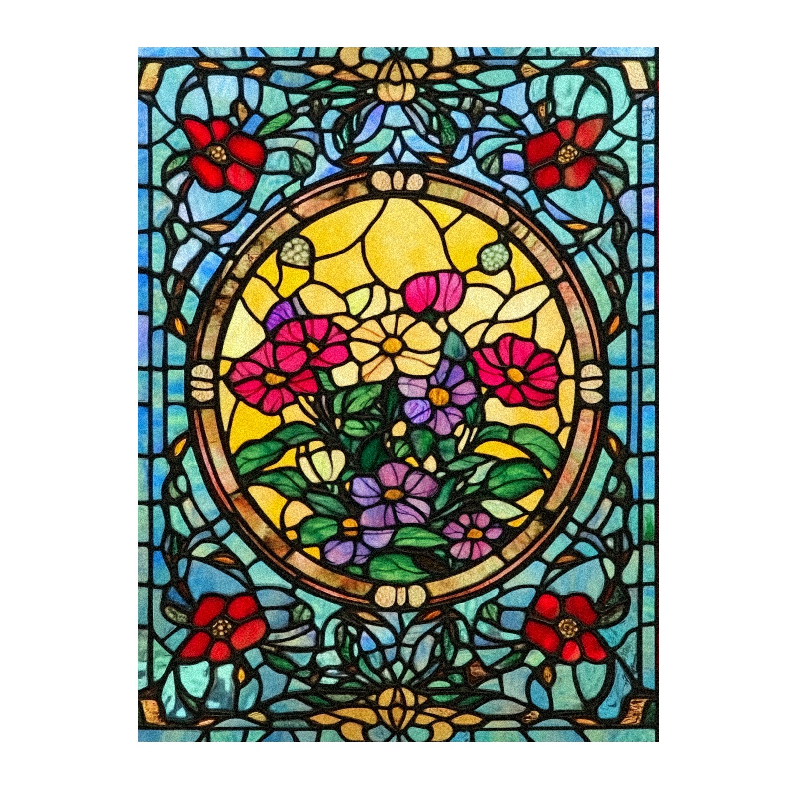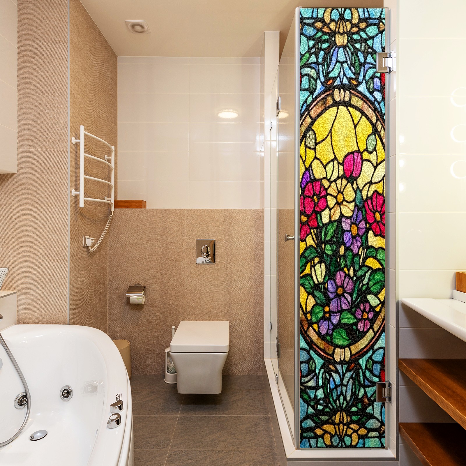 Stained Glass Window Film - Decorative Privacy Film for Windows, Peel and Stick Window Film for Bathroom/Office/Shower, Reusable and Easy to Cut 17.7"x23.6" (Rose)