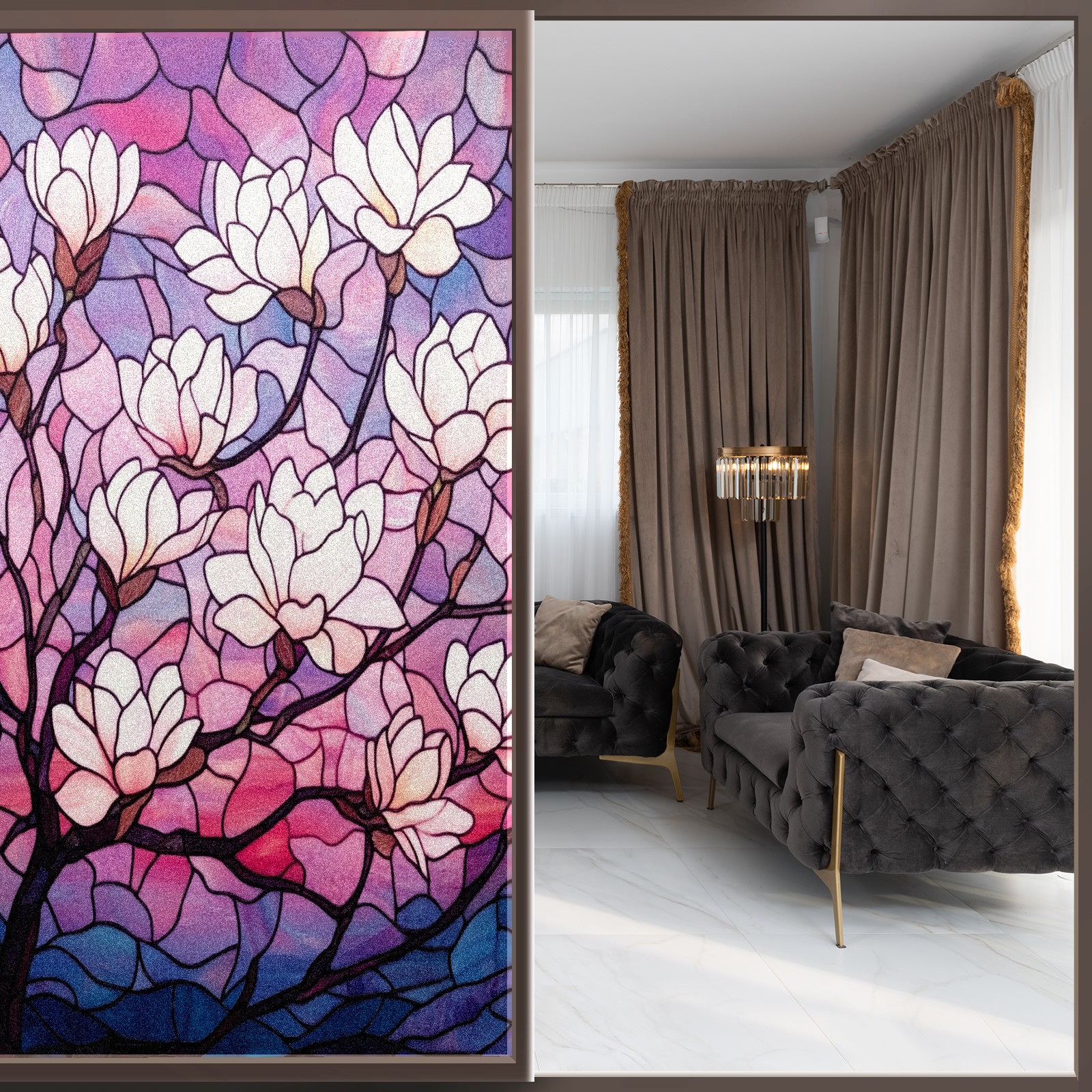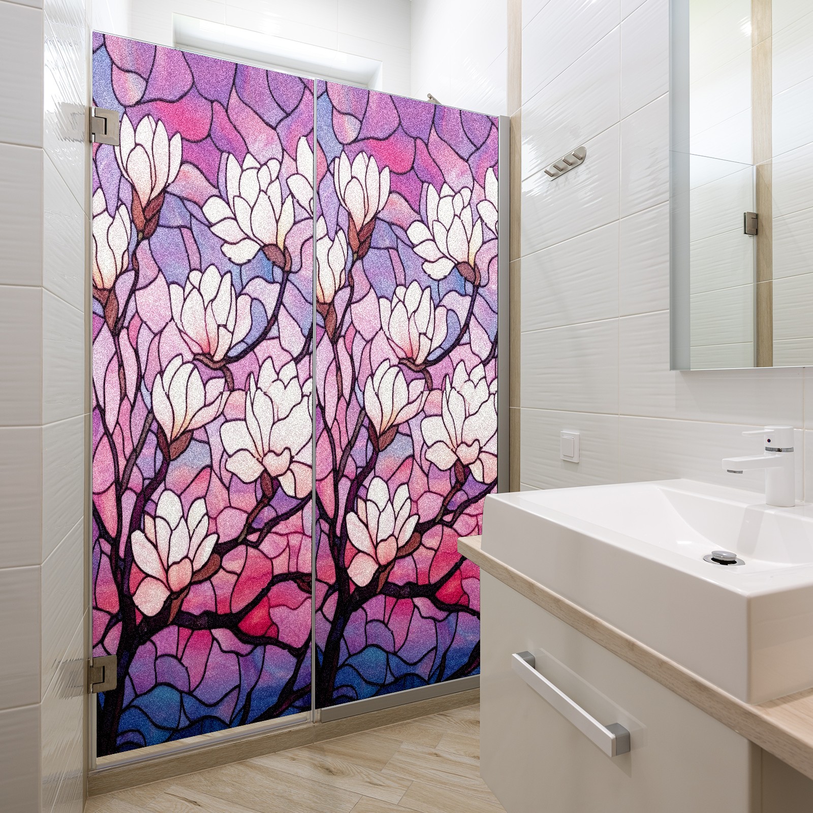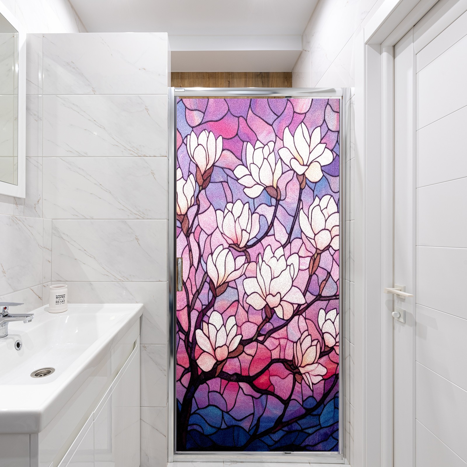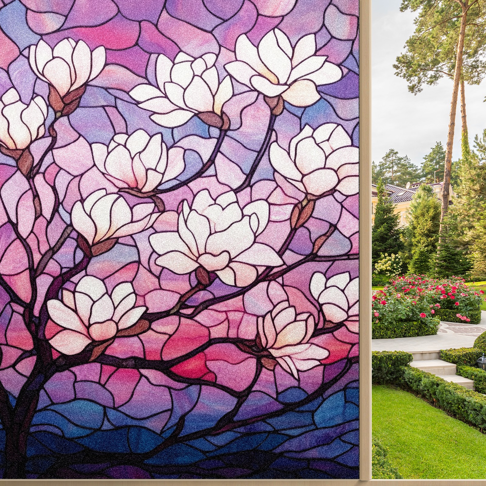 Stained Glass Window Film - Decorative Privacy Film for Windows, Peel and Stick Window Film for Bathroom/Office/Shower, Reusable and Easy to Cut 17.7"x23.6" (Magnolia Tree)