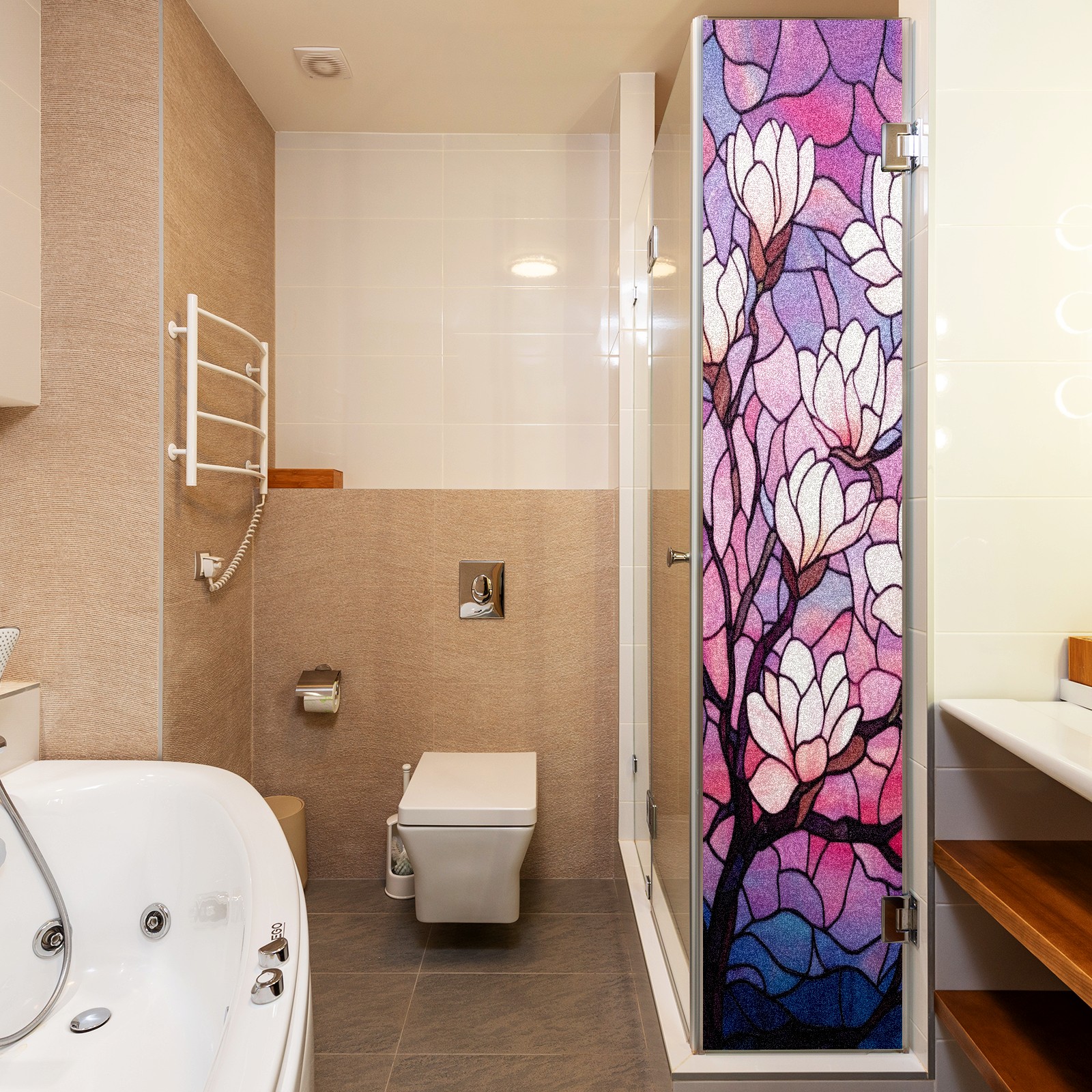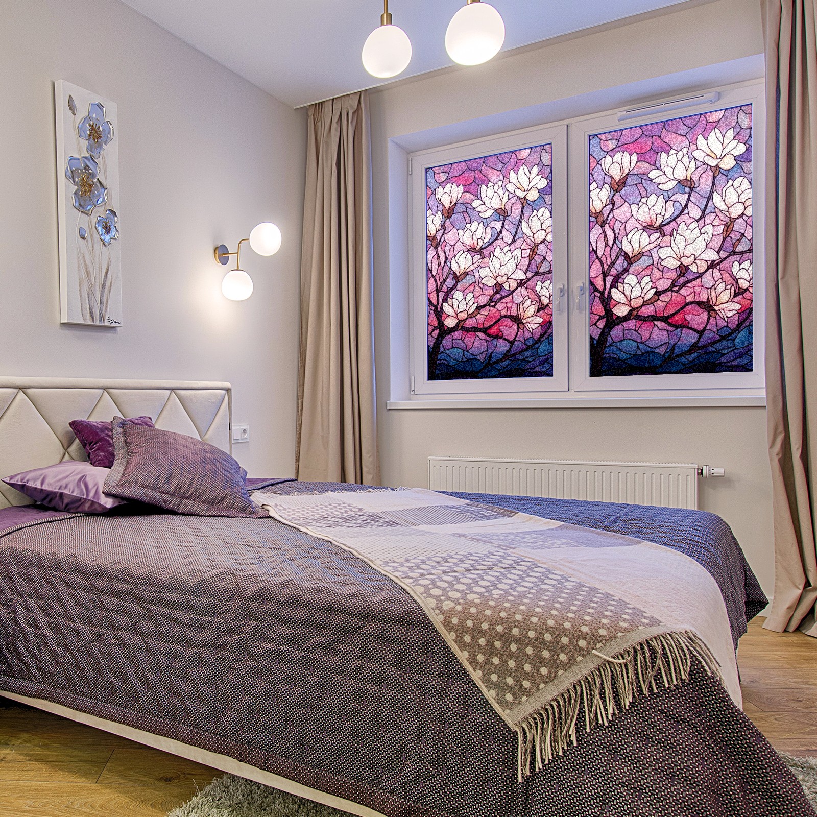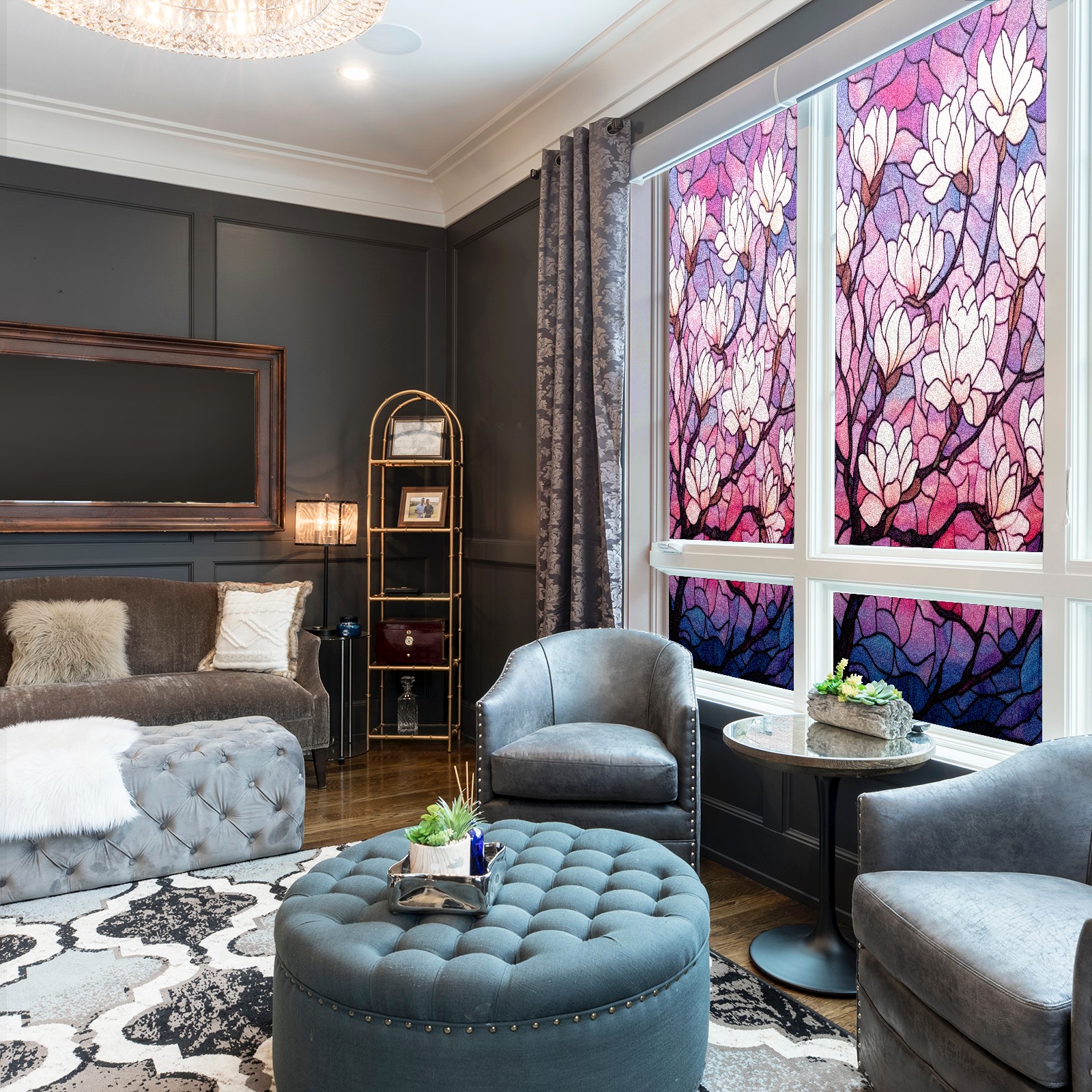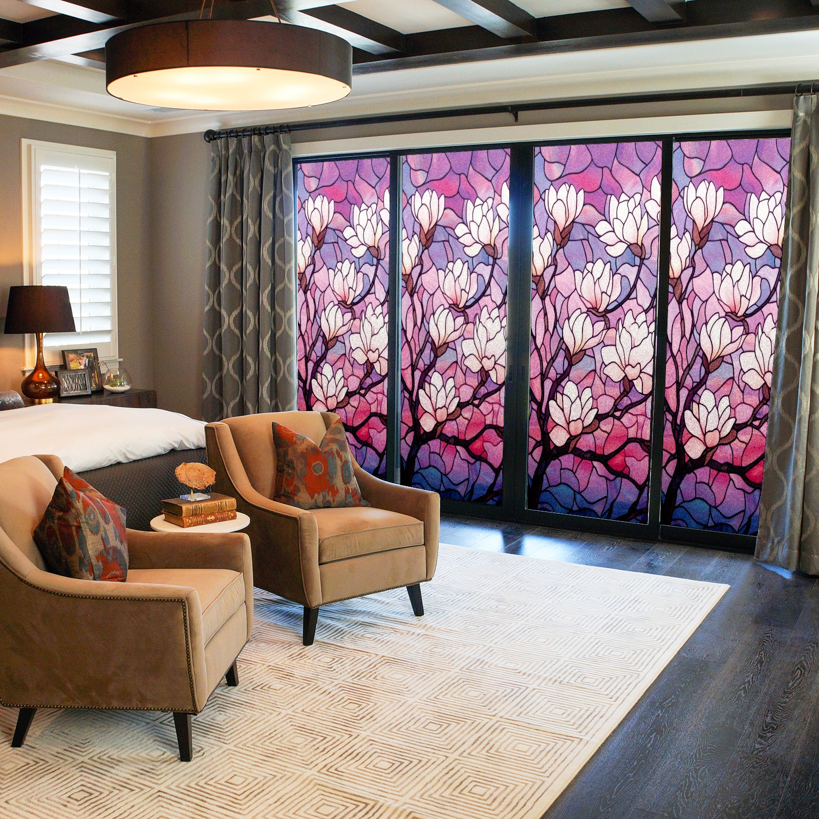 Stained Glass Window Film - Decorative Privacy Film for Windows, Peel and Stick Window Film for Bathroom/Office/Shower, Reusable and Easy to Cut 17.7"x23.6" (Magnolia Tree)