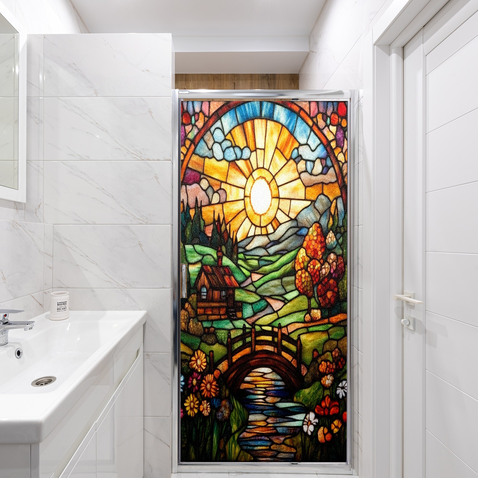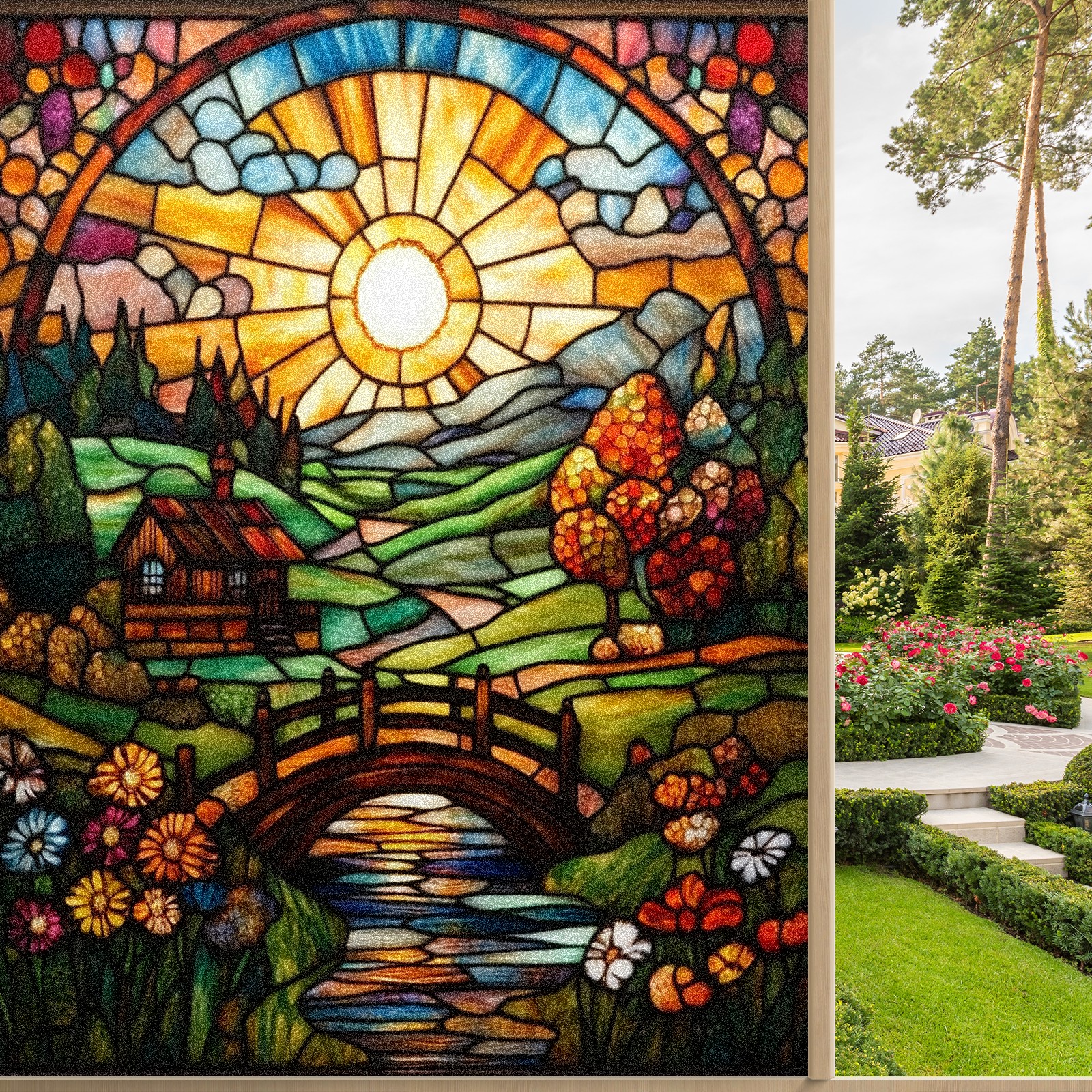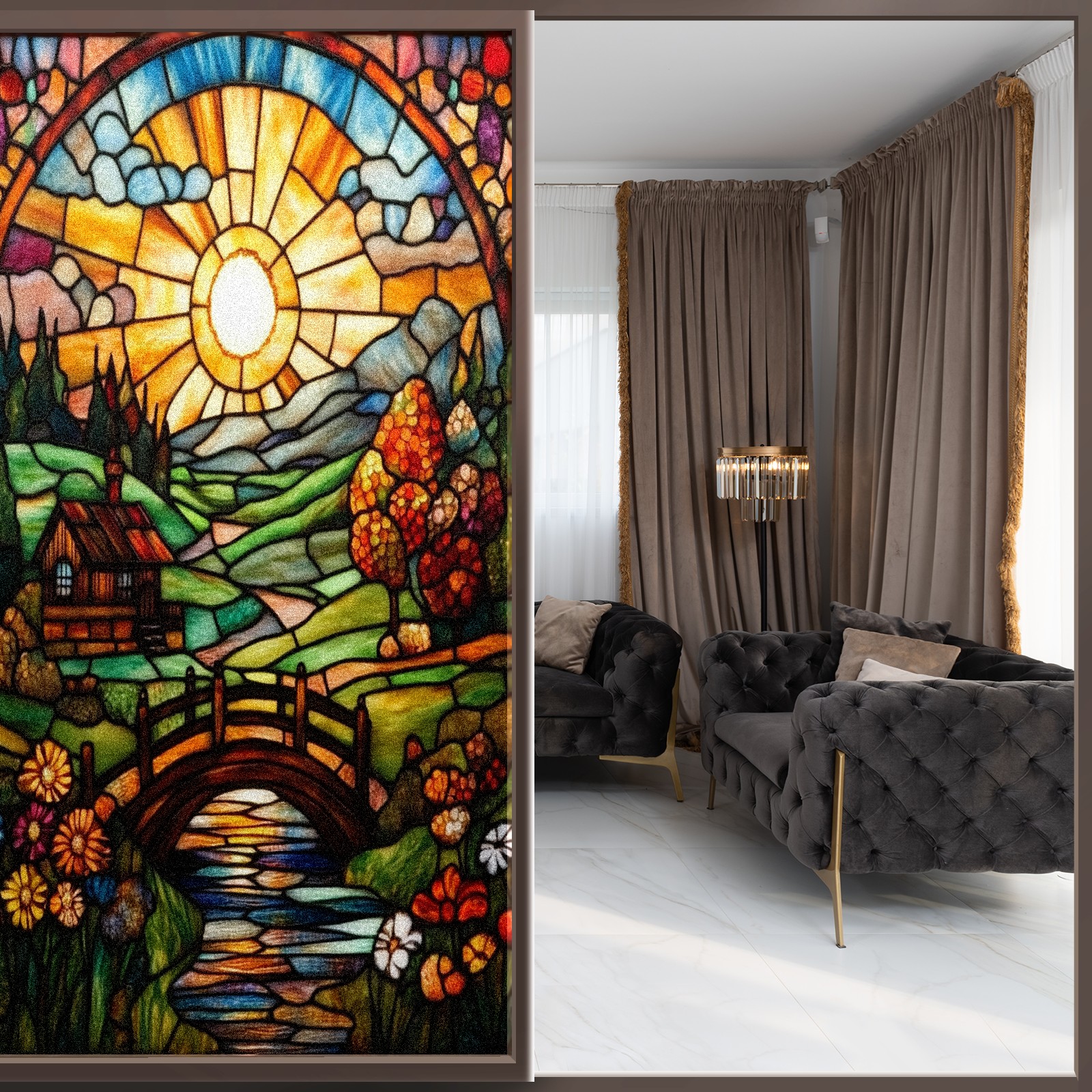 Stained Glass Window Film - Decorative Privacy Film for Windows, Peel and Stick Window Film for Bathroom/Office/Shower, Reusable and Easy to Cut 17.7"x23.6" (Bridge)