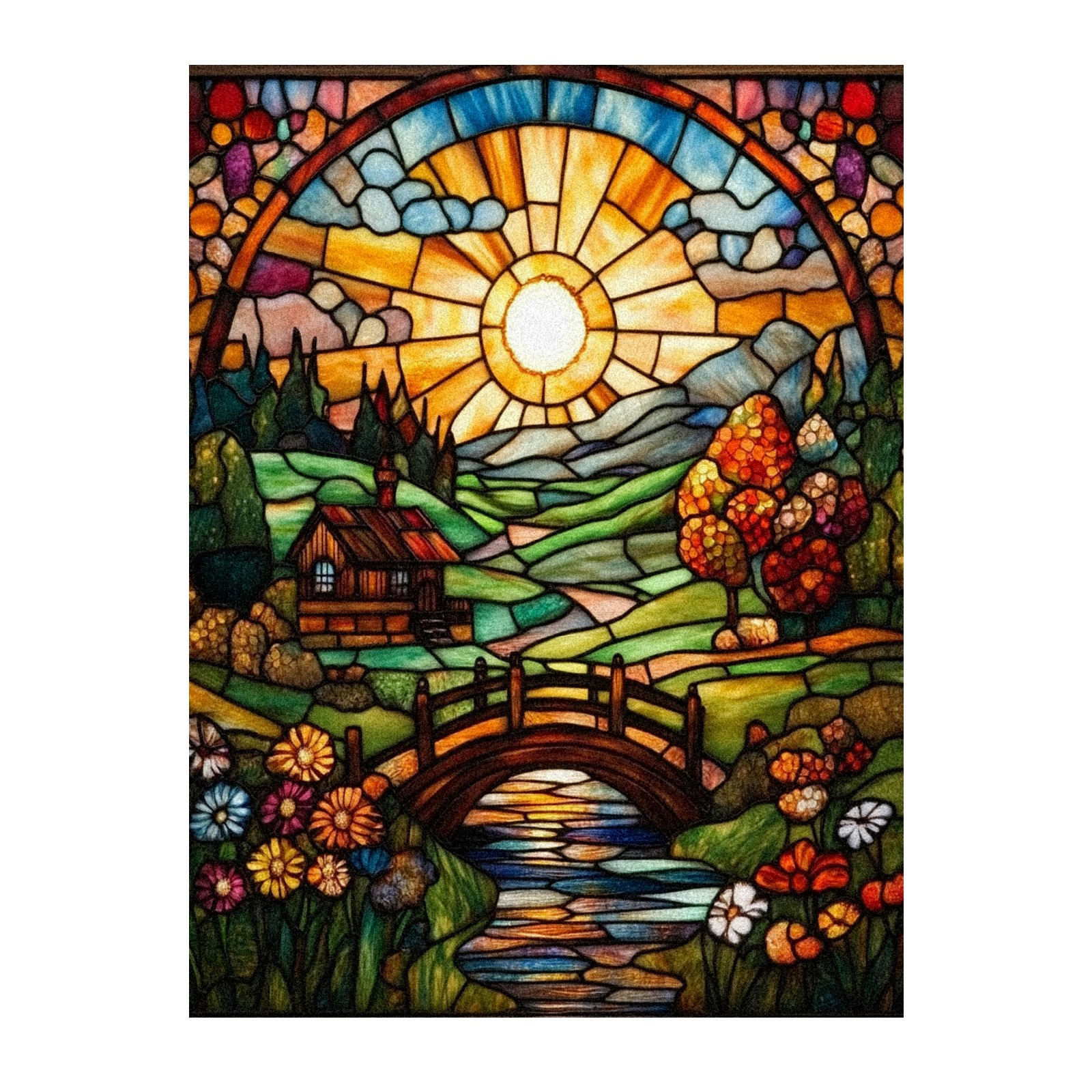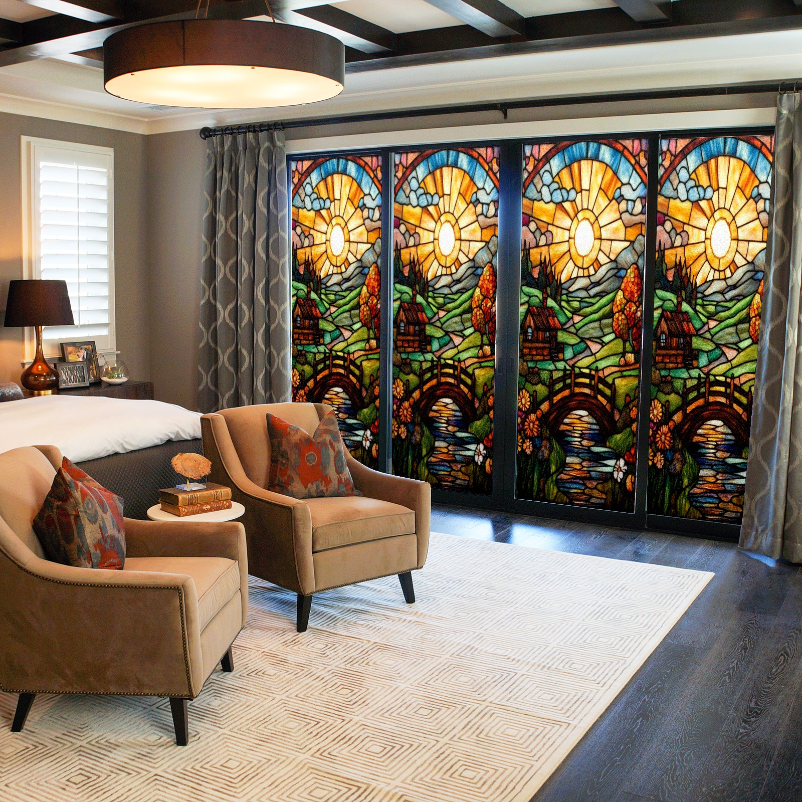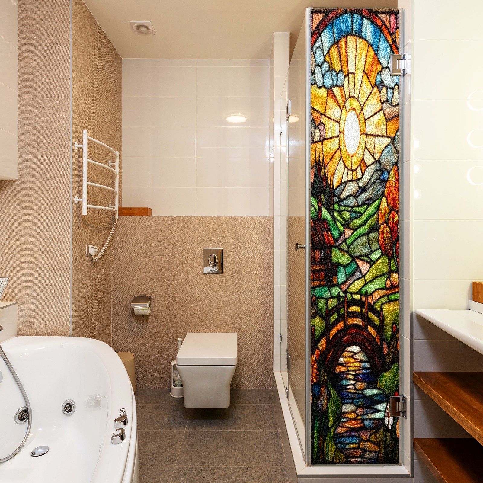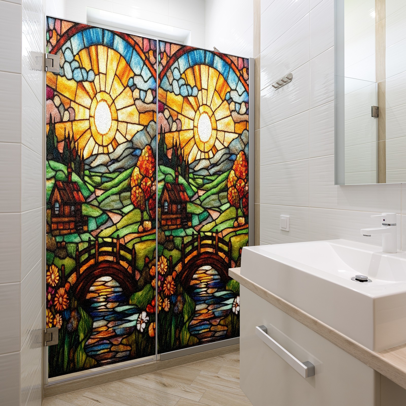 Stained Glass Window Film - Decorative Privacy Film for Windows, Peel and Stick Window Film for Bathroom/Office/Shower, Reusable and Easy to Cut 17.7"x23.6" (Bridge)
