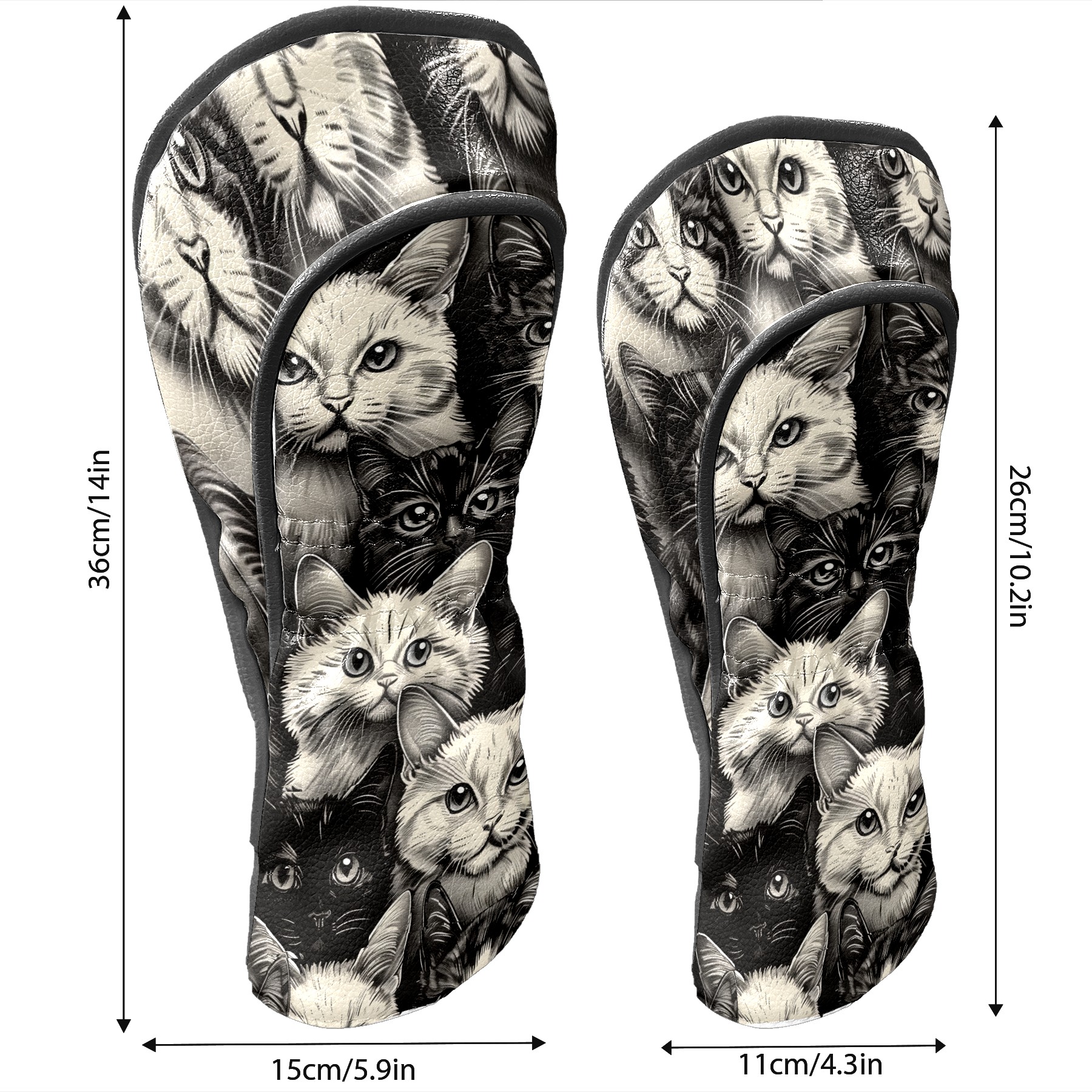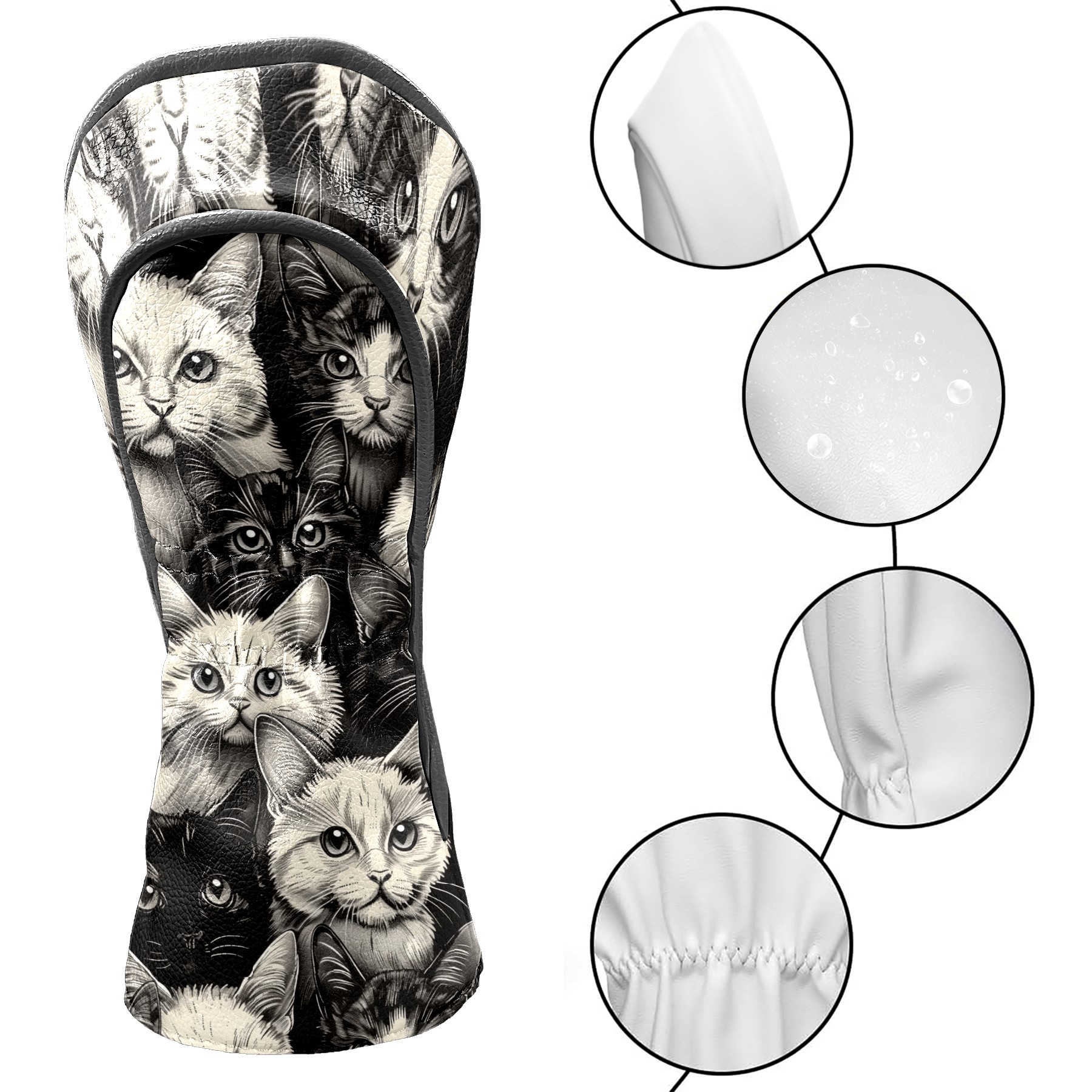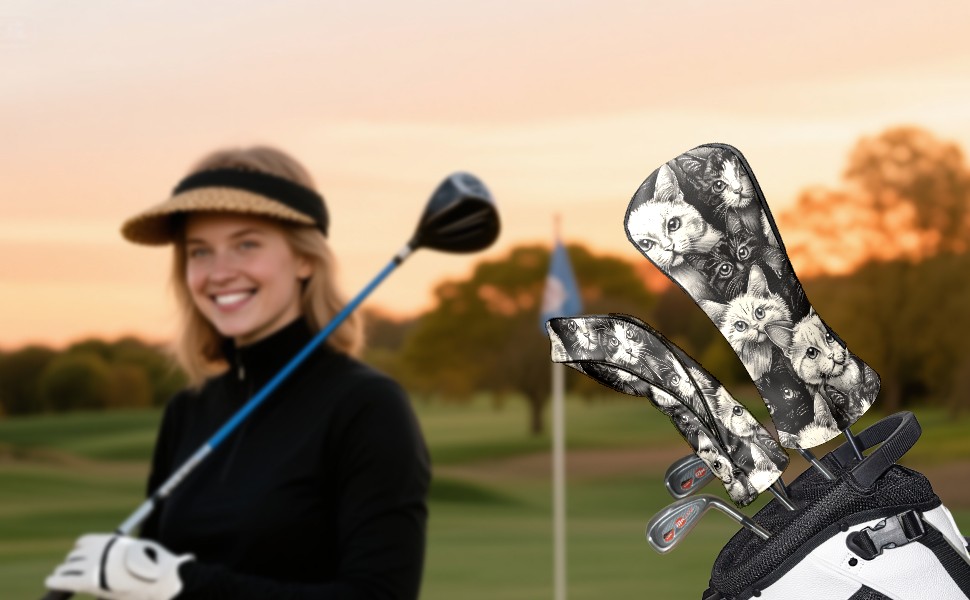 Golf Club Covers Cats Black Driver Headcover, Leather Golf Club Head Covers for Driver Fairway Woods Waterproof Golf Headcovers with Anti-Scratch Lining for Men Women