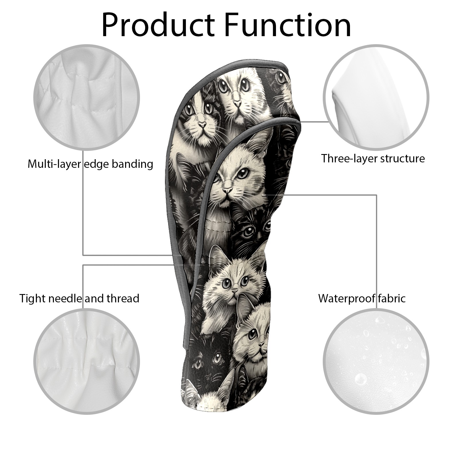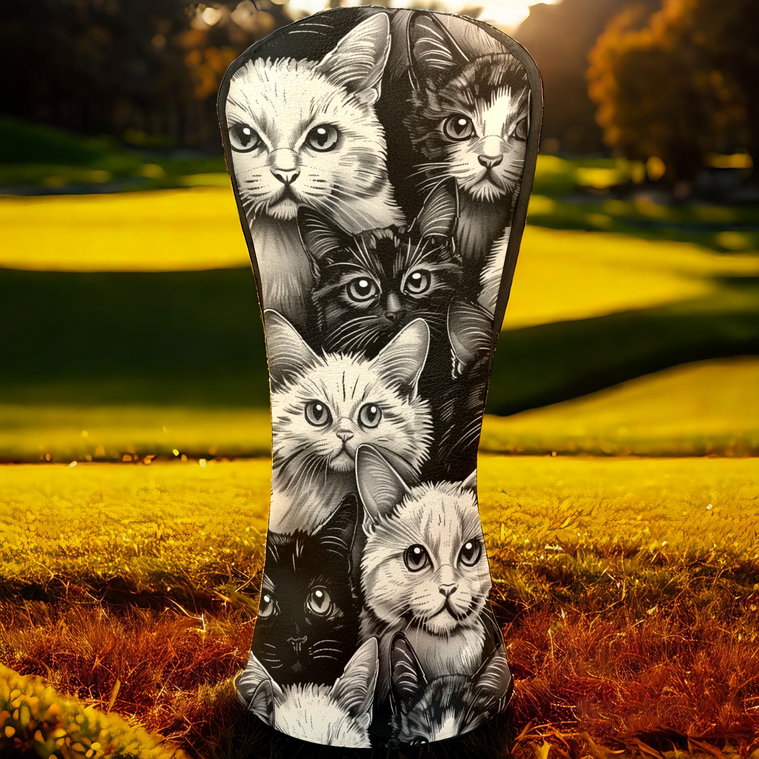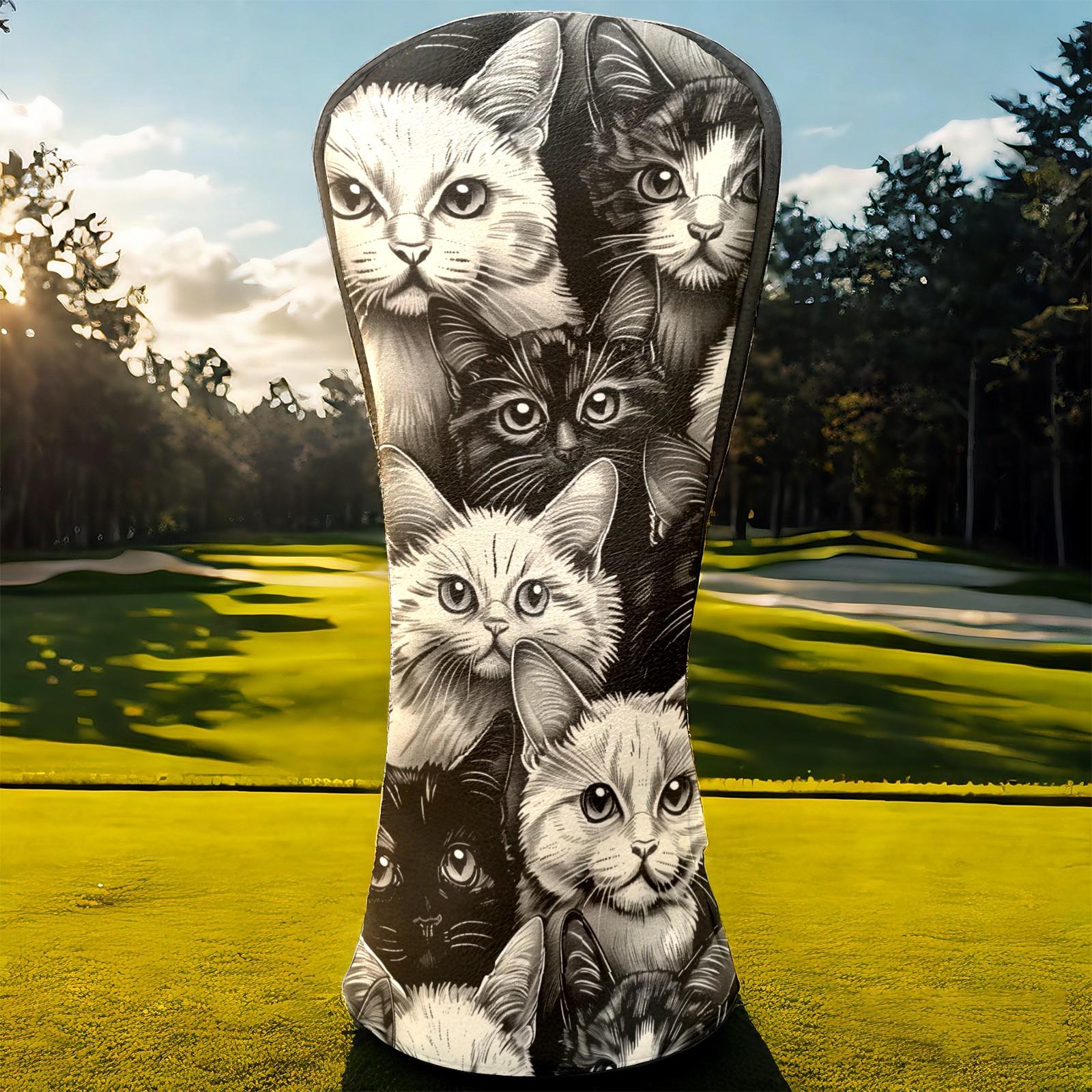 Golf Club Covers Cats Black Driver Headcover, Leather Golf Club Head Covers for Driver Fairway Woods Waterproof Golf Headcovers with Anti-Scratch Lining for Men Women