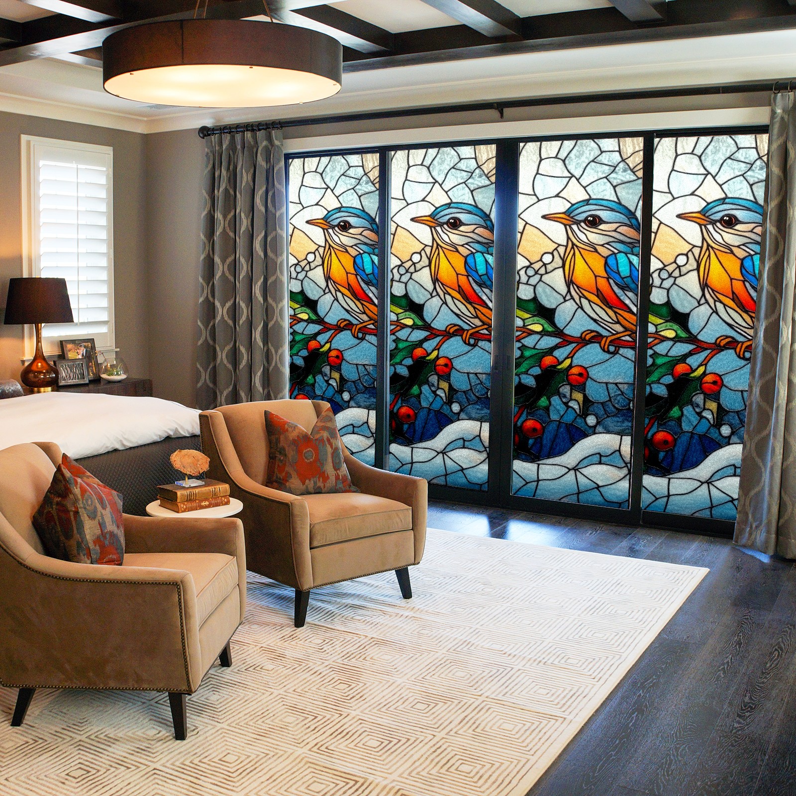 • <p>The main body is made of PET single-sided frosted material, with a smooth surface that adheres to the glass. The frosted surface forms a hazy blocking effect, effectively protecting privacy while retaining soft light.The pattern covers the entire surface of the sticker, adopting a seamless design with clear and three-dimensional texture, breaking the traditional sticker's sense of fragmentation.</p>