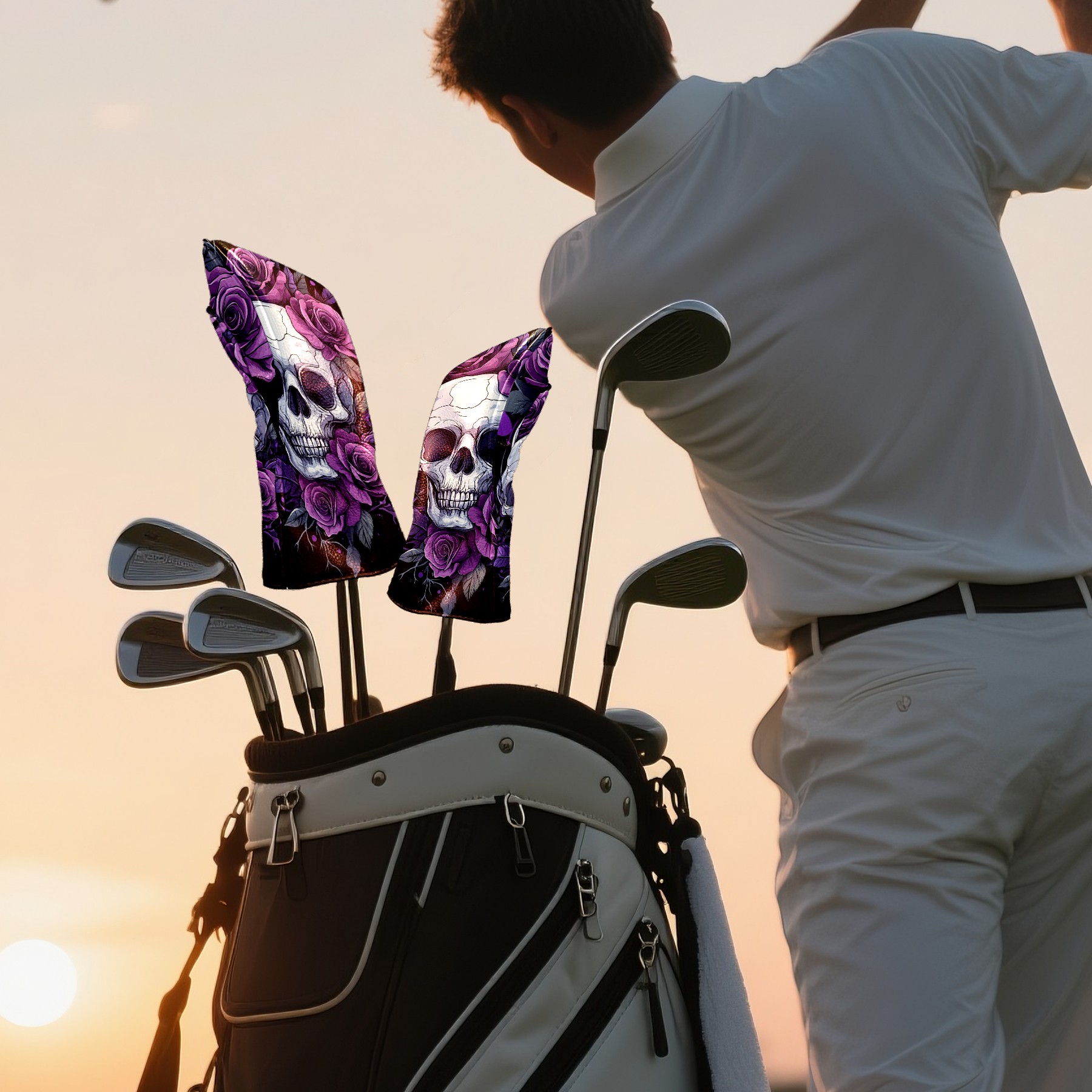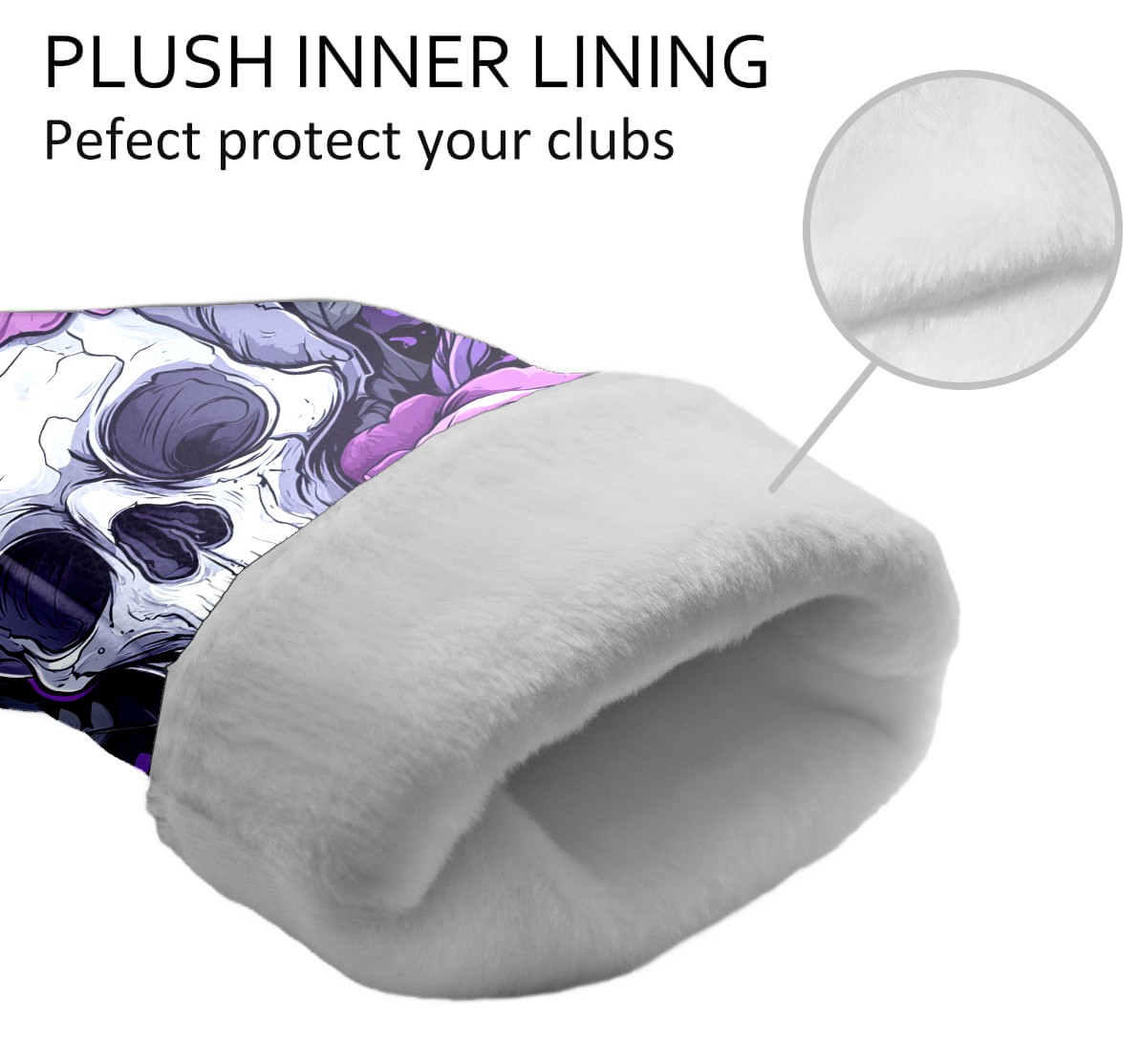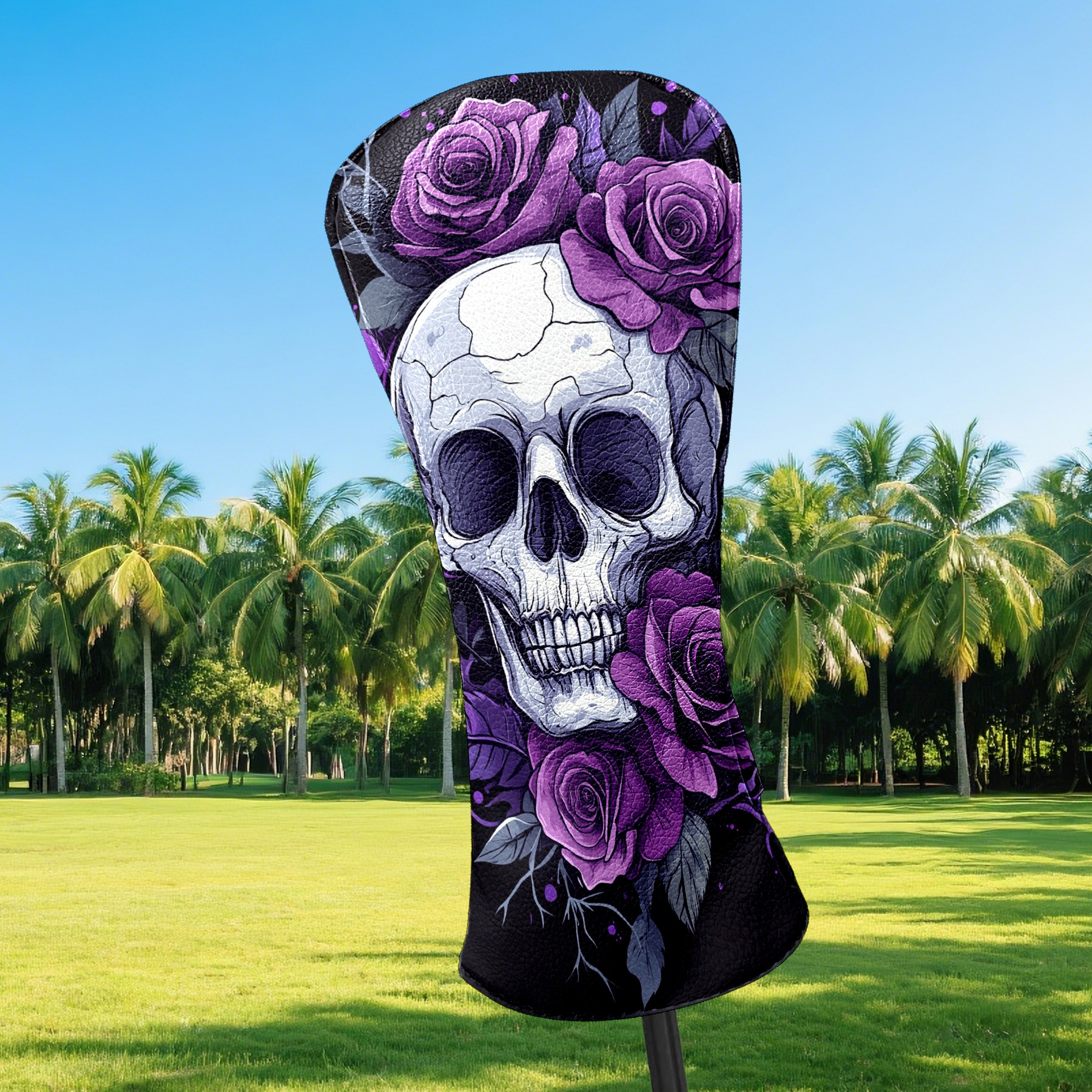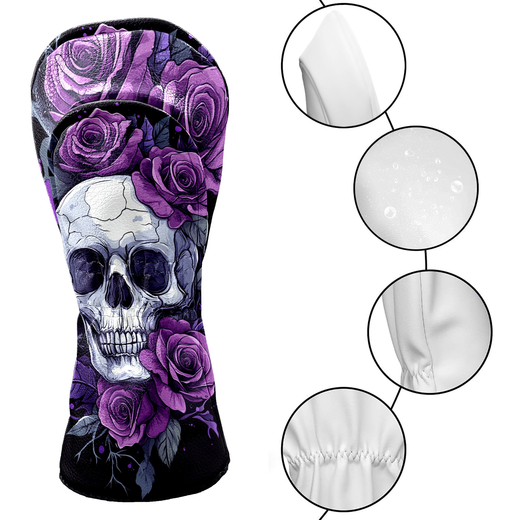 Golf Club Covers Skull Purple Roses Driver Headcover, Leather Golf Club Head Covers for Driver Fairway Woods Waterproof Golf Headcovers with Anti-Scratch Lining for Men Women
