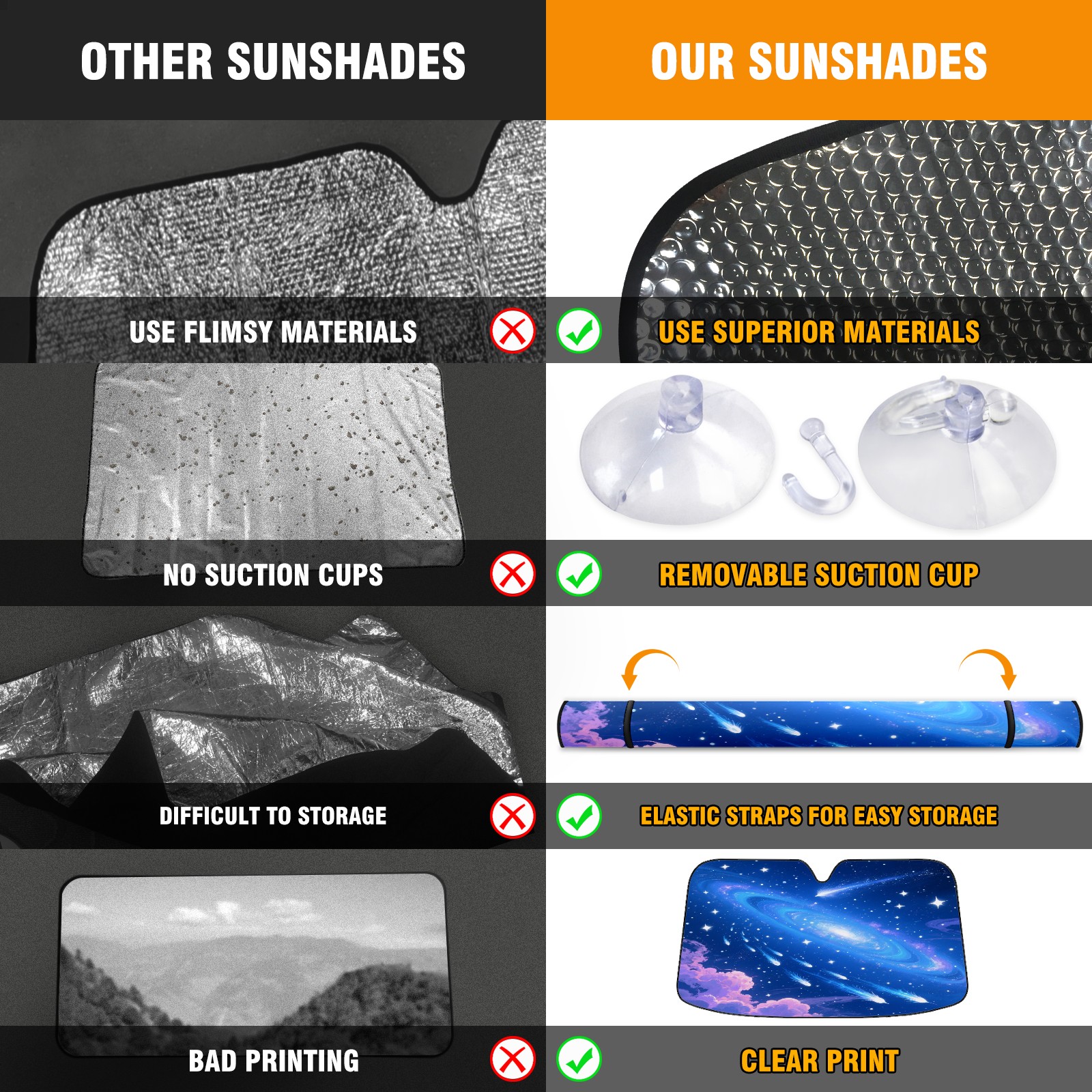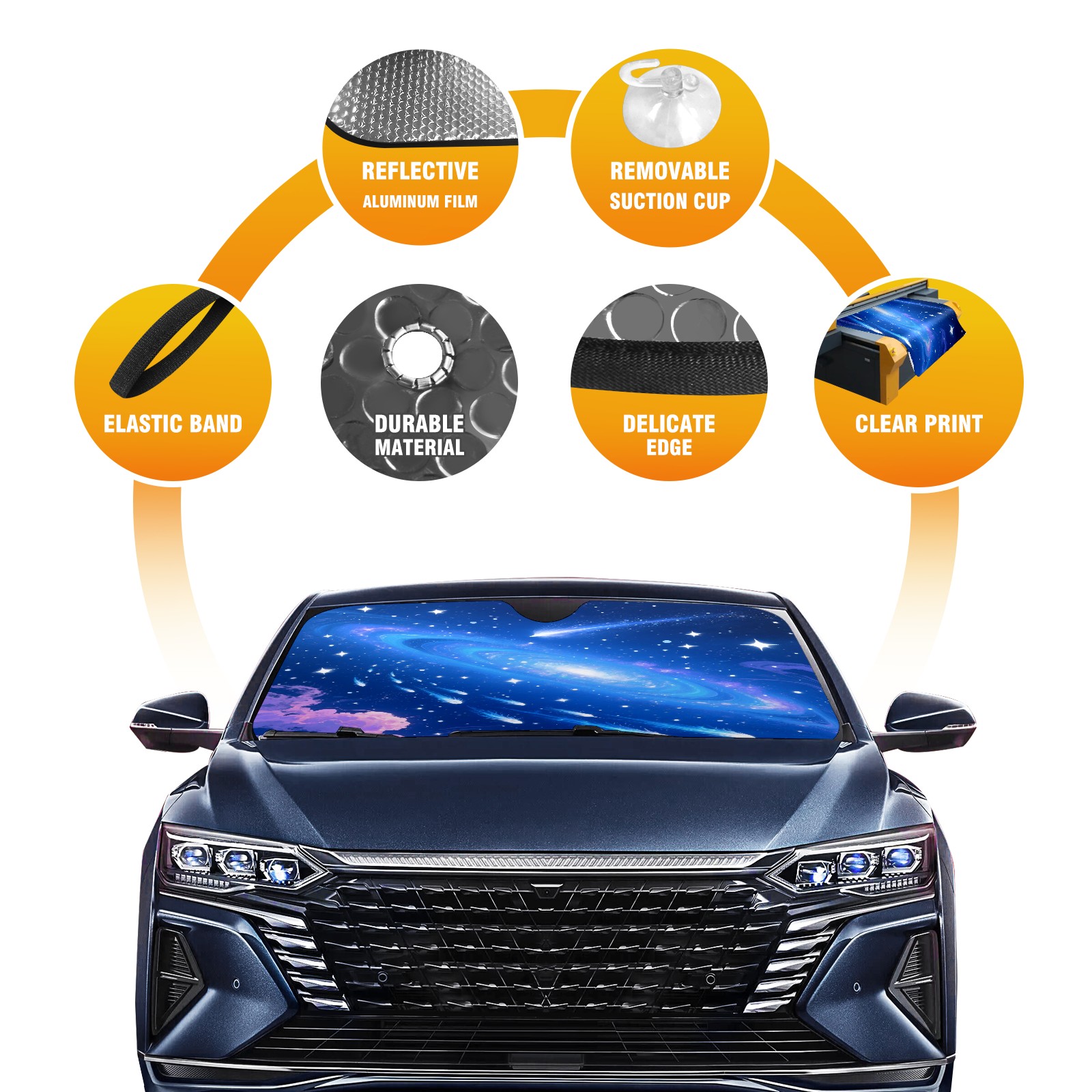 • <p>This sunshade pad is made of aluminum foil and polyester material, paired with high-quality aluminum foil bubbles, which can efficiently block ultraviolet rays, provide strong insulation and cooling, easily reduce the temperature inside the car, and save fuel when turning on the air conditioning, keeping the car cool at all times. Processed with transparent adhesive technology, the material is sturdy and durable, capable of long-term protection of the car dashboard, steering wheel, and seats, and is not afraid of sunlight erosion. The transparent pocket in the bottom right corner of the front is convenient for placing contact phone cards, and temporary parking with a number is no longer a hassle. Foldable design combined with compact size, lightweight and portable, does not take up interior space after storage, making it easy to carry for daily commuting or outdoor travel. There is no need to worry about cleaning, it is recommended to wash by hand. Regular cleaning can keep the sunshade pad clean as new and provide long-lasting protection.</p>