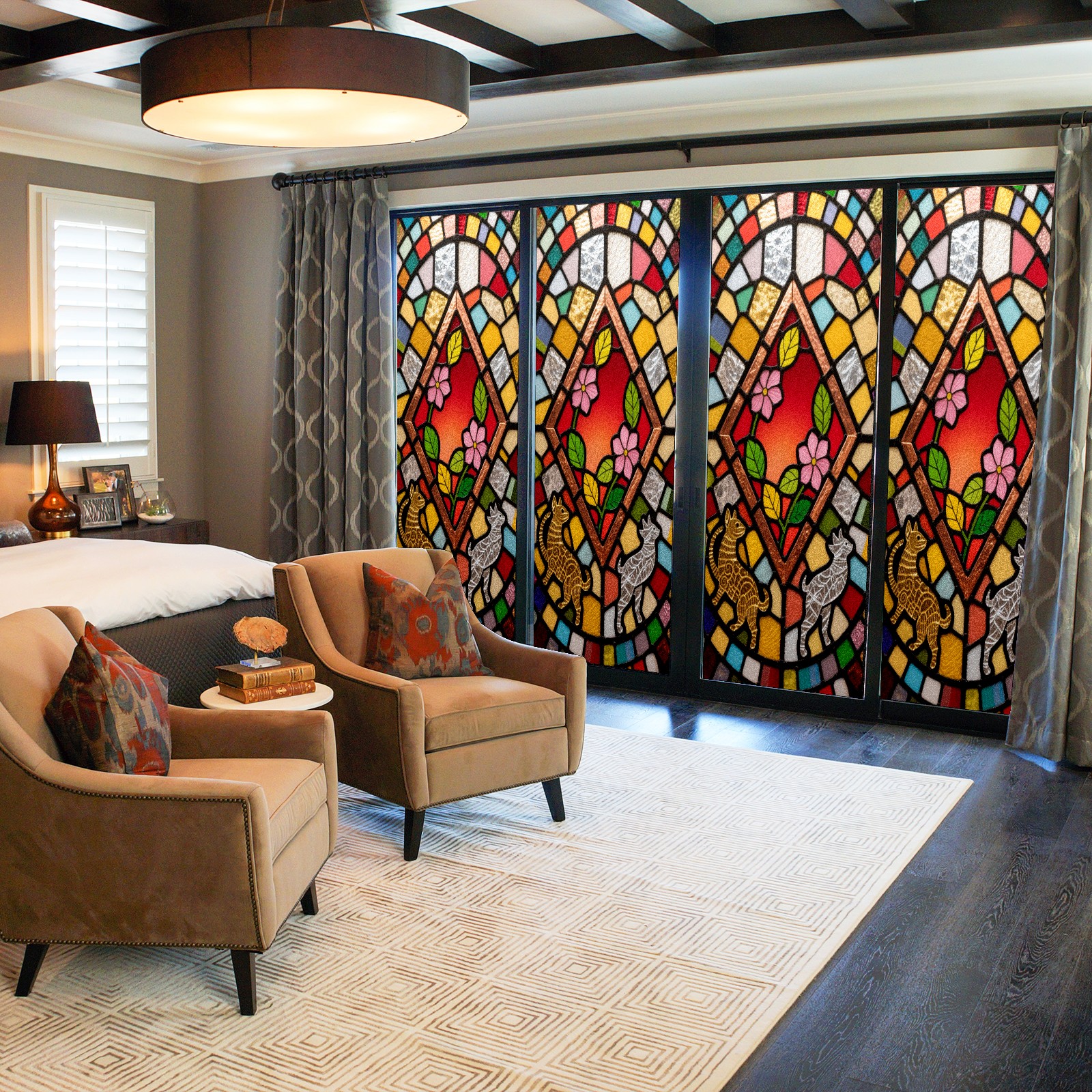 <p>Our film is made of food-grade PET material, safe and odorless, mother and baby families can rest assured that the use of explosion-proof impact resistance more peace of mind. High-definition full-sheet printing, delicate pattern does not fade, easy to enhance the tone of the home, suitable for a variety of decorative styles. Single-sided frosted design, effective protection of privacy, clear view during the day, night anti-peeping without embarrassment. Electrostatic adsorption installation, glue-free without leaving marks, can be repeatedly adjusted for use. It can also block ultraviolet rays, sunscreen insulation, protect furniture from fading, energy saving and more comfortable!&nbsp;&nbsp;</p>