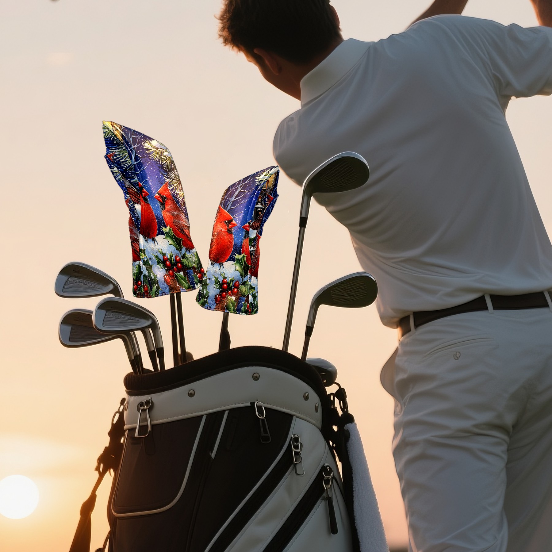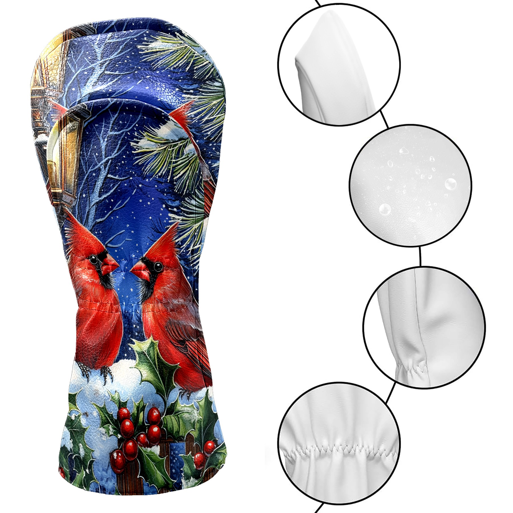 Golf Club Head Cover Premium Leather Driver Headcover, Golf Head Covers for Woods and Driver Waterproof Golf Headcovers with Anti-Scratch Lining for Men Women (Red Cardinals)