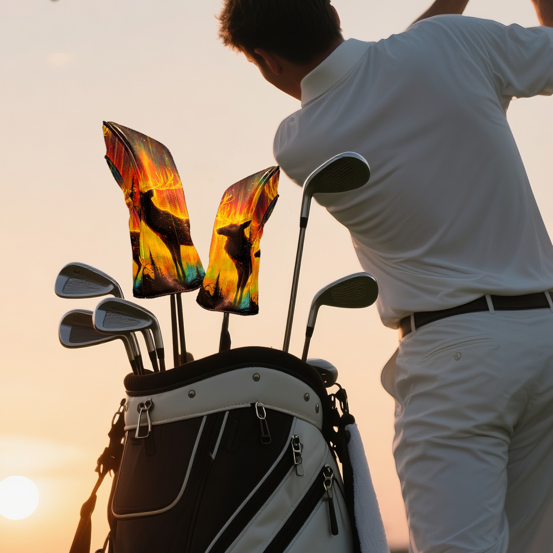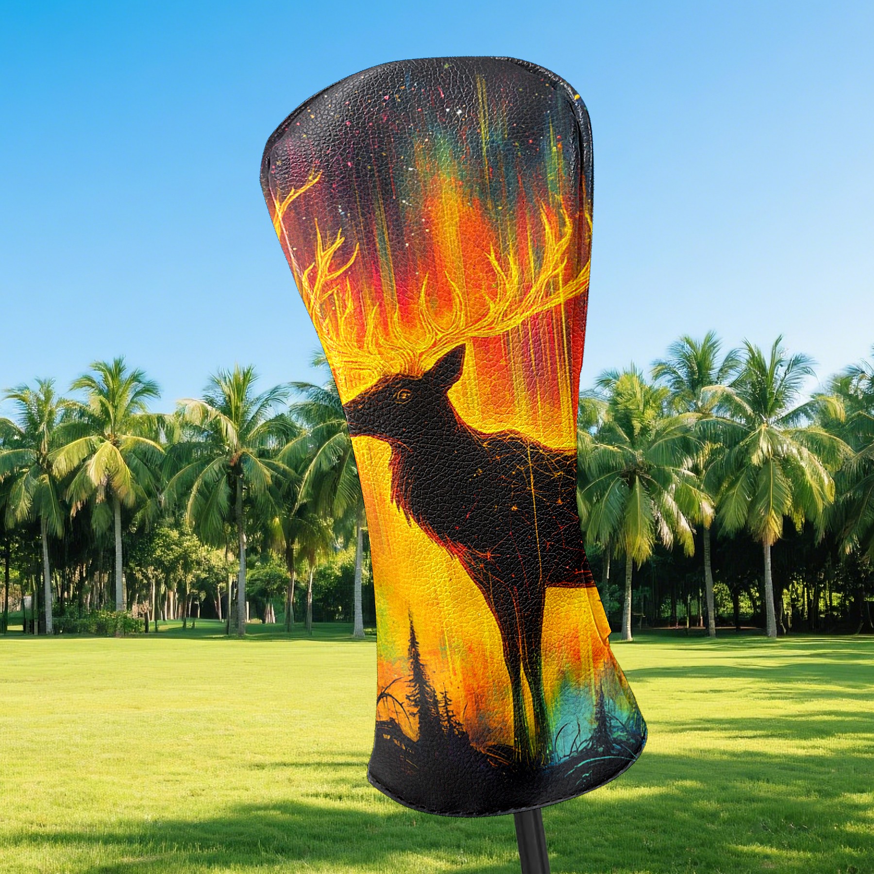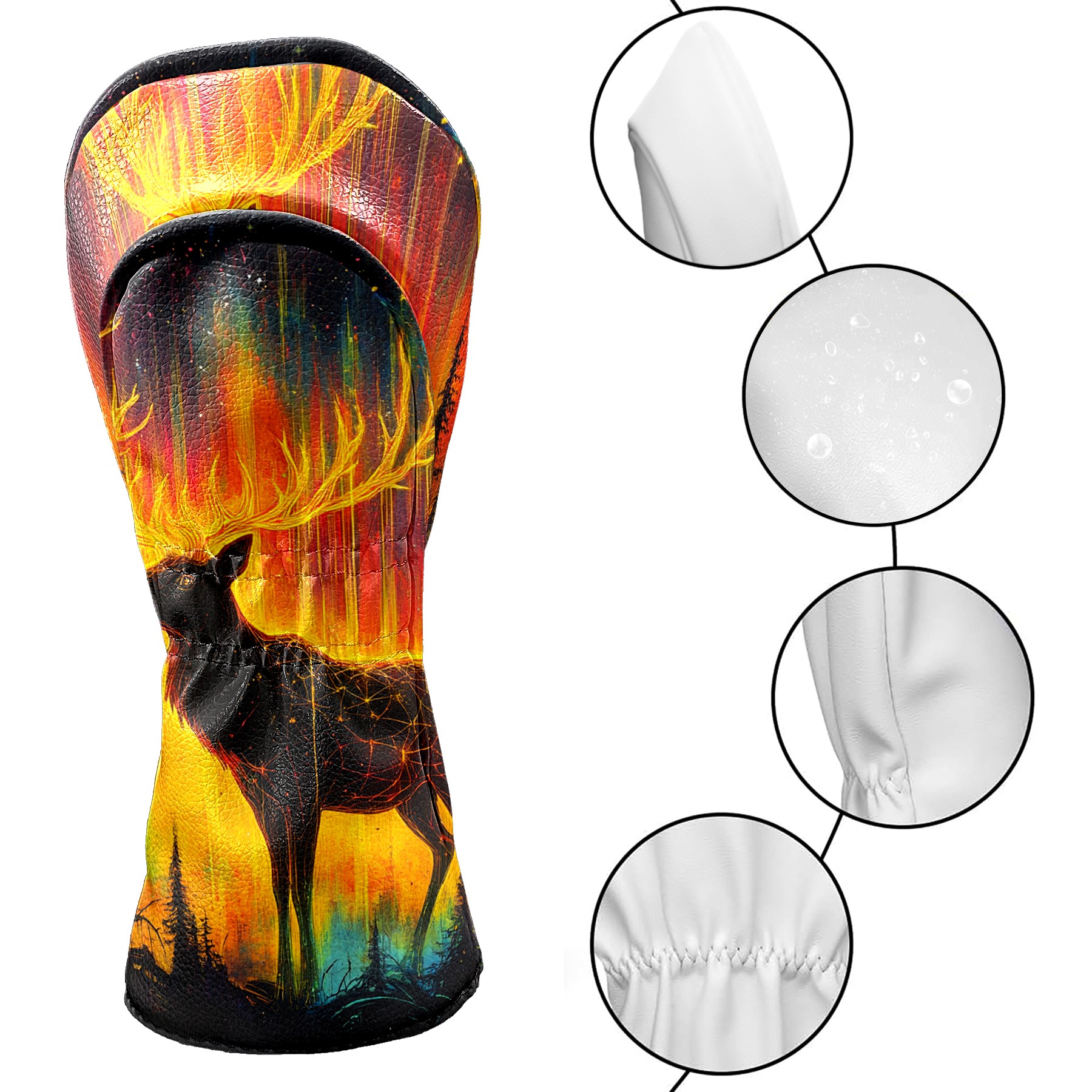 Golf Club Head Cover Premium Leather Driver Headcover, Golf Head Covers for Woods and Driver Waterproof Golf Headcovers with Anti-Scratch Lining for Men Women (Neon Elk Deer)
