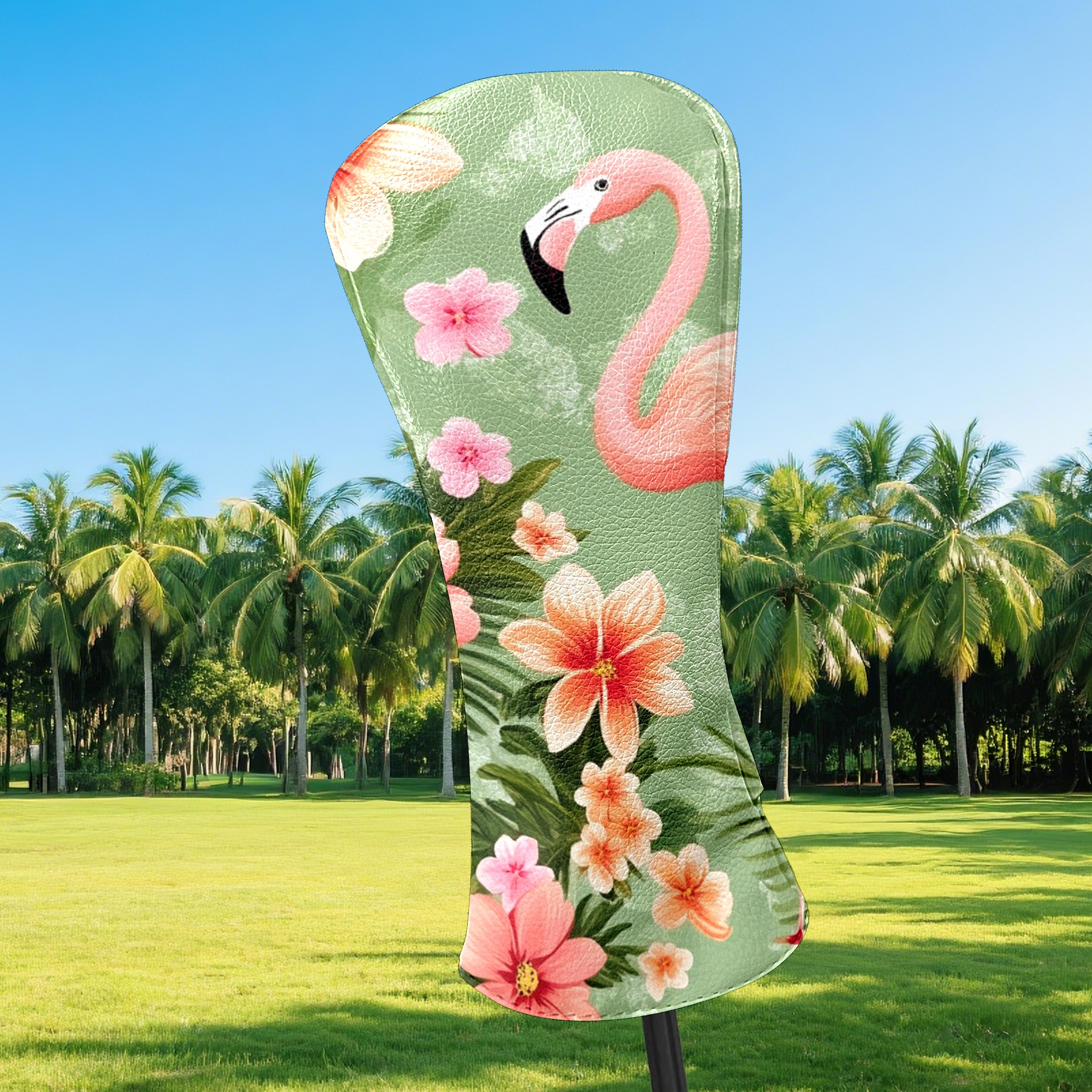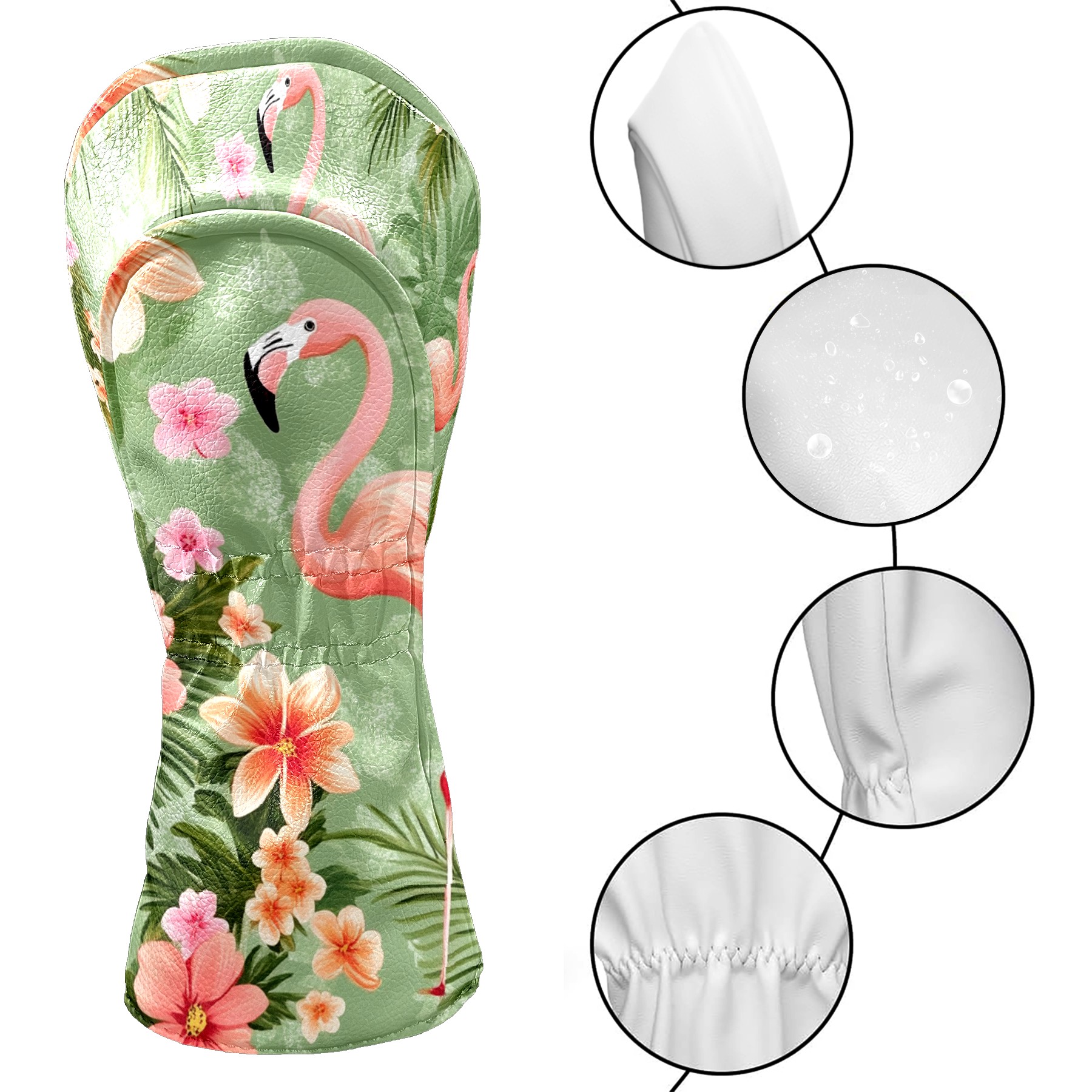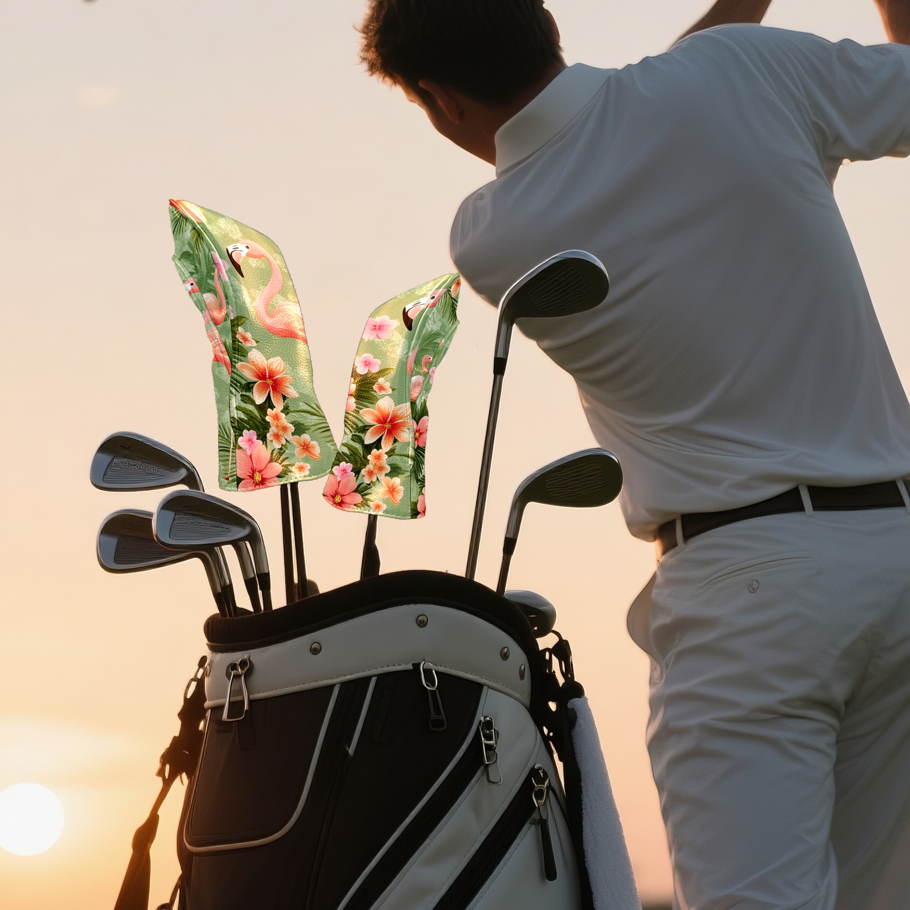 Golf Head Covers Fairway Woods Headcover Hybrid Head Cover, Protective Covers for Golf Clubs, Ideal Golf Accessories Gift for Men Women (Dark Green Leaves Flamingo)