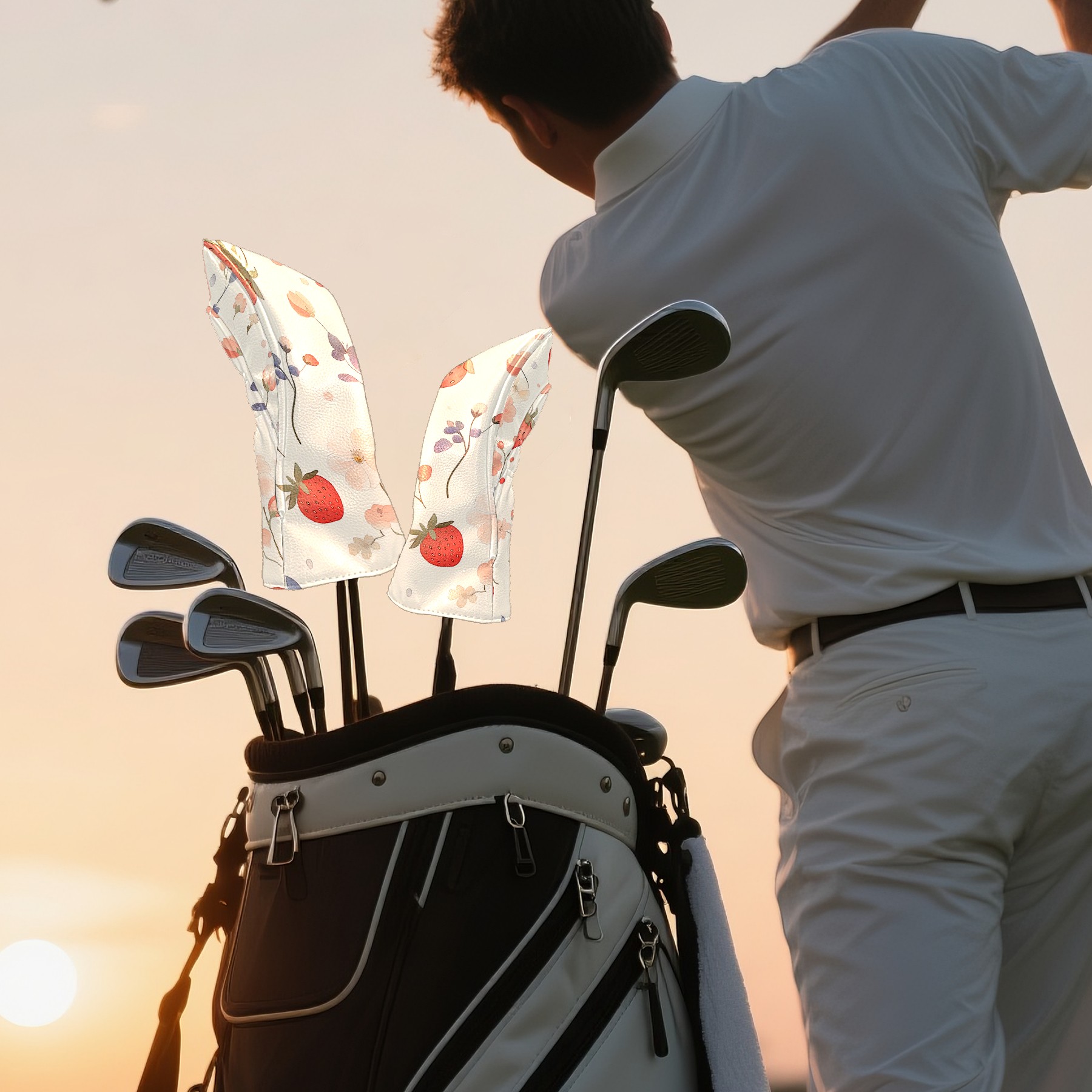 Golf Head Covers Fairway Woods Headcover Hybrid Head Cover, Protective Covers for Golf Clubs, Ideal Golf Accessories Gift for Men Women (Retro Strawberry Pattern)