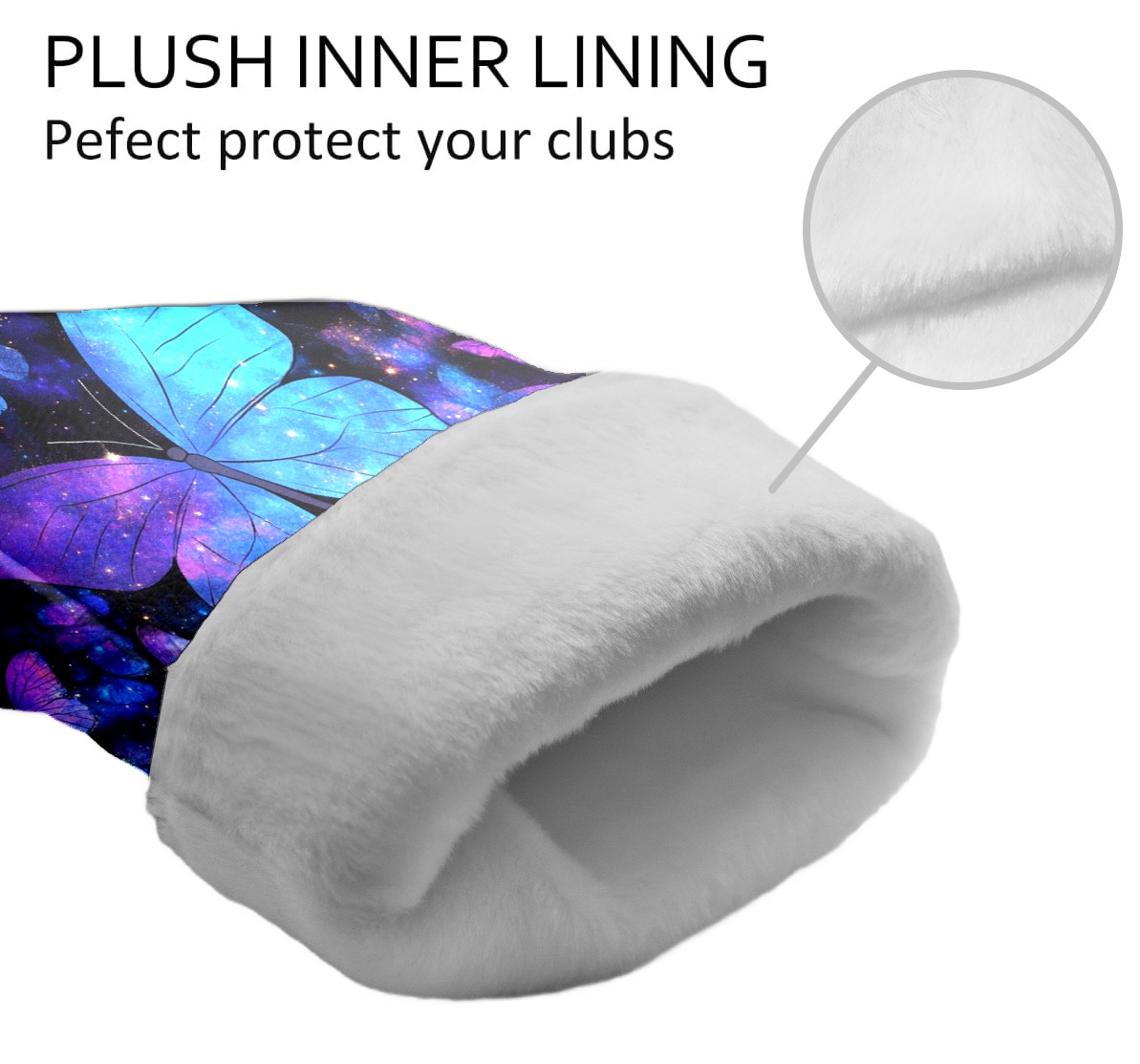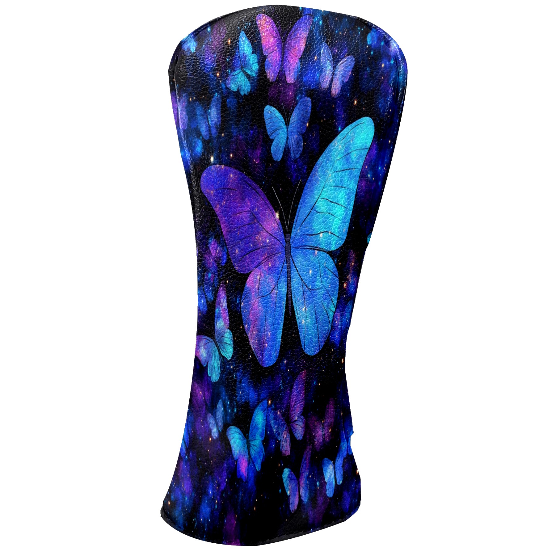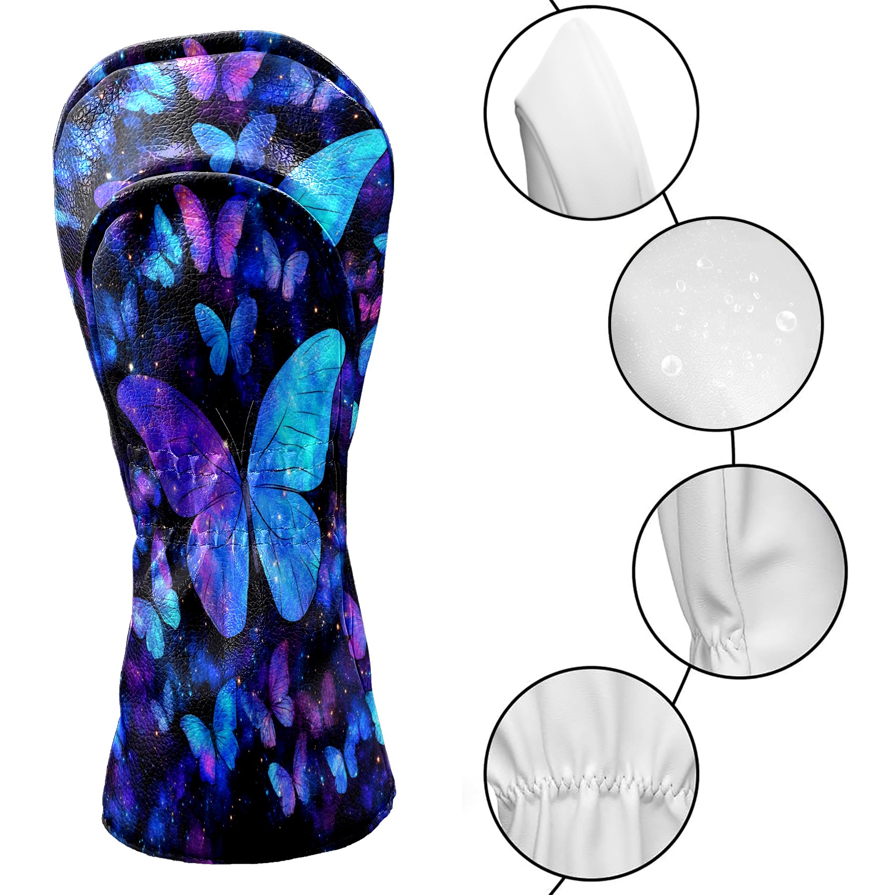 Golf Club Head Cover Premium Leather Driver Headcover, Golf Head Covers for Woods and Driver Waterproof Golf Headcovers with Anti-Scratch Lining for Men Women (Universe Butterfly)