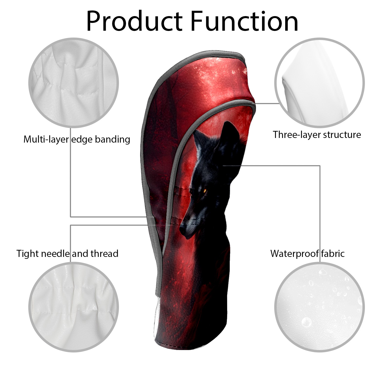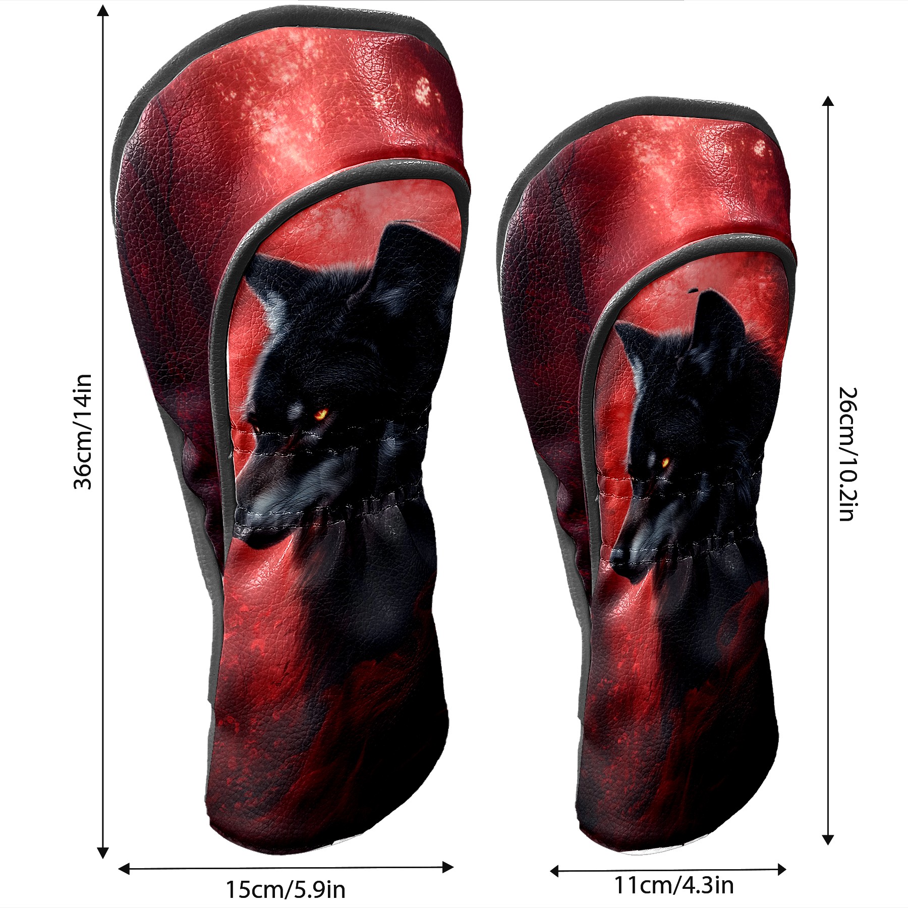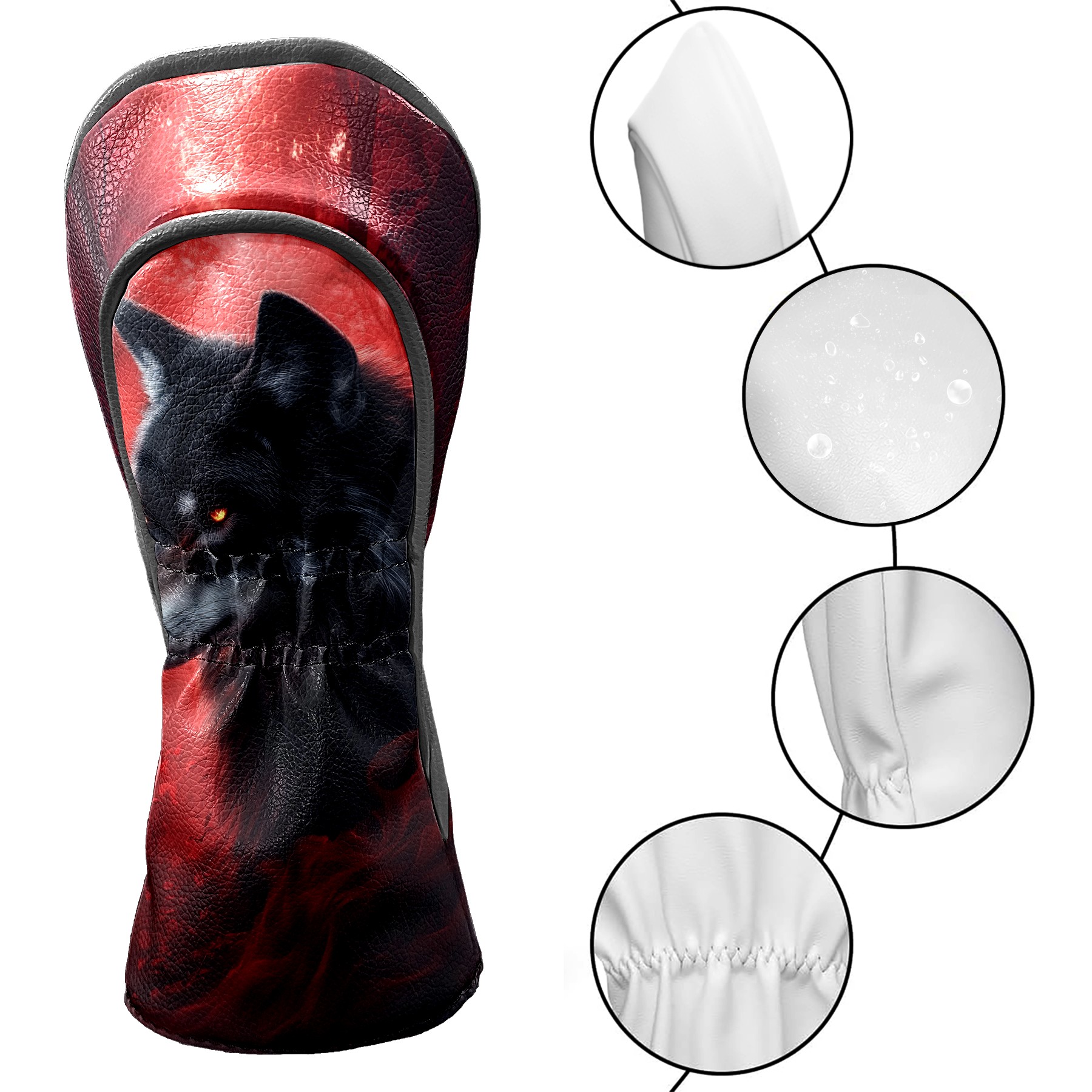 Golf Club Head Cover Premium Leather Driver Headcover, Golf Head Covers for Woods and Driver Waterproof Golf Headcovers with Anti-Scratch Lining for Men Women (Black Wolf)