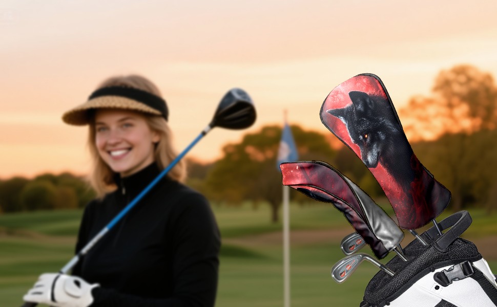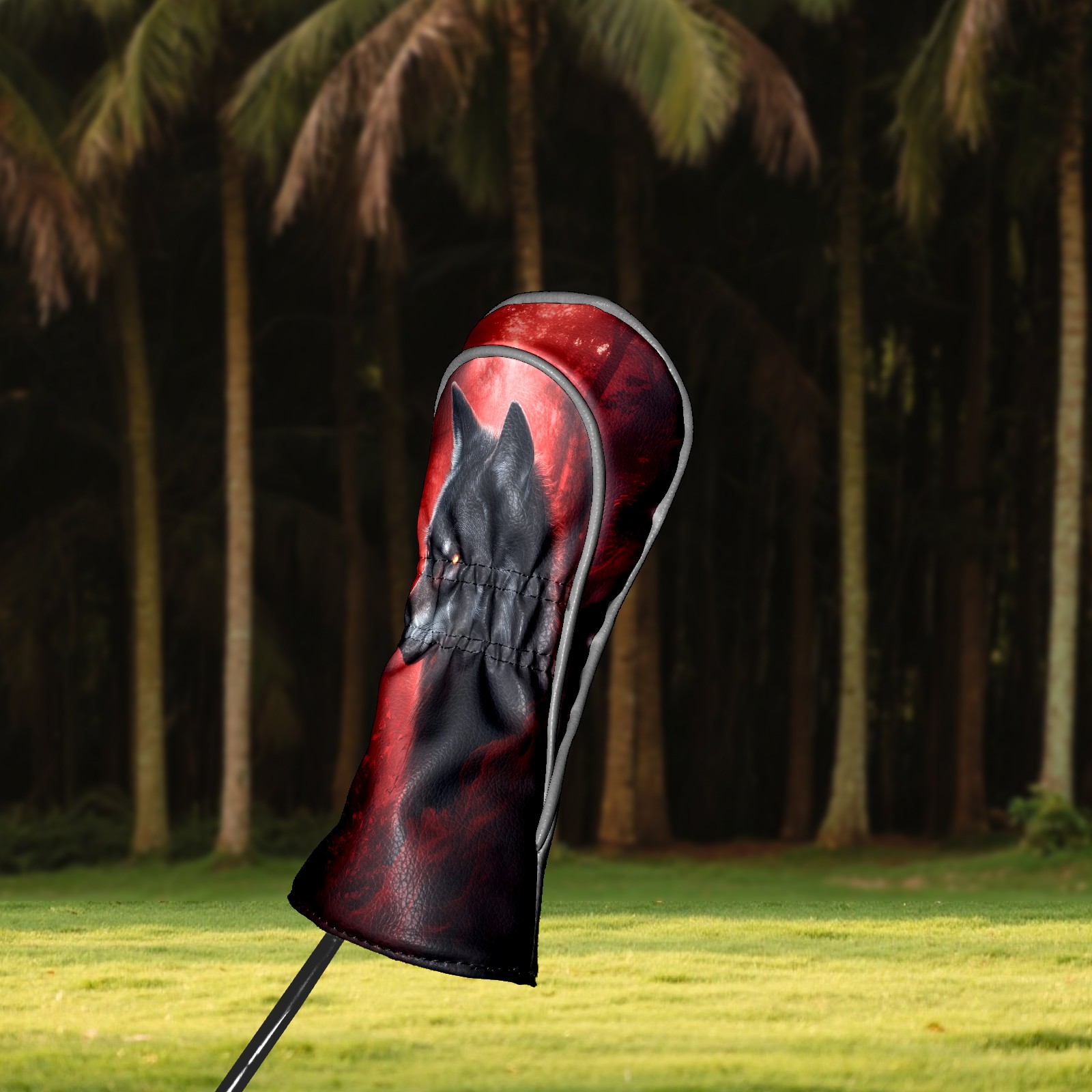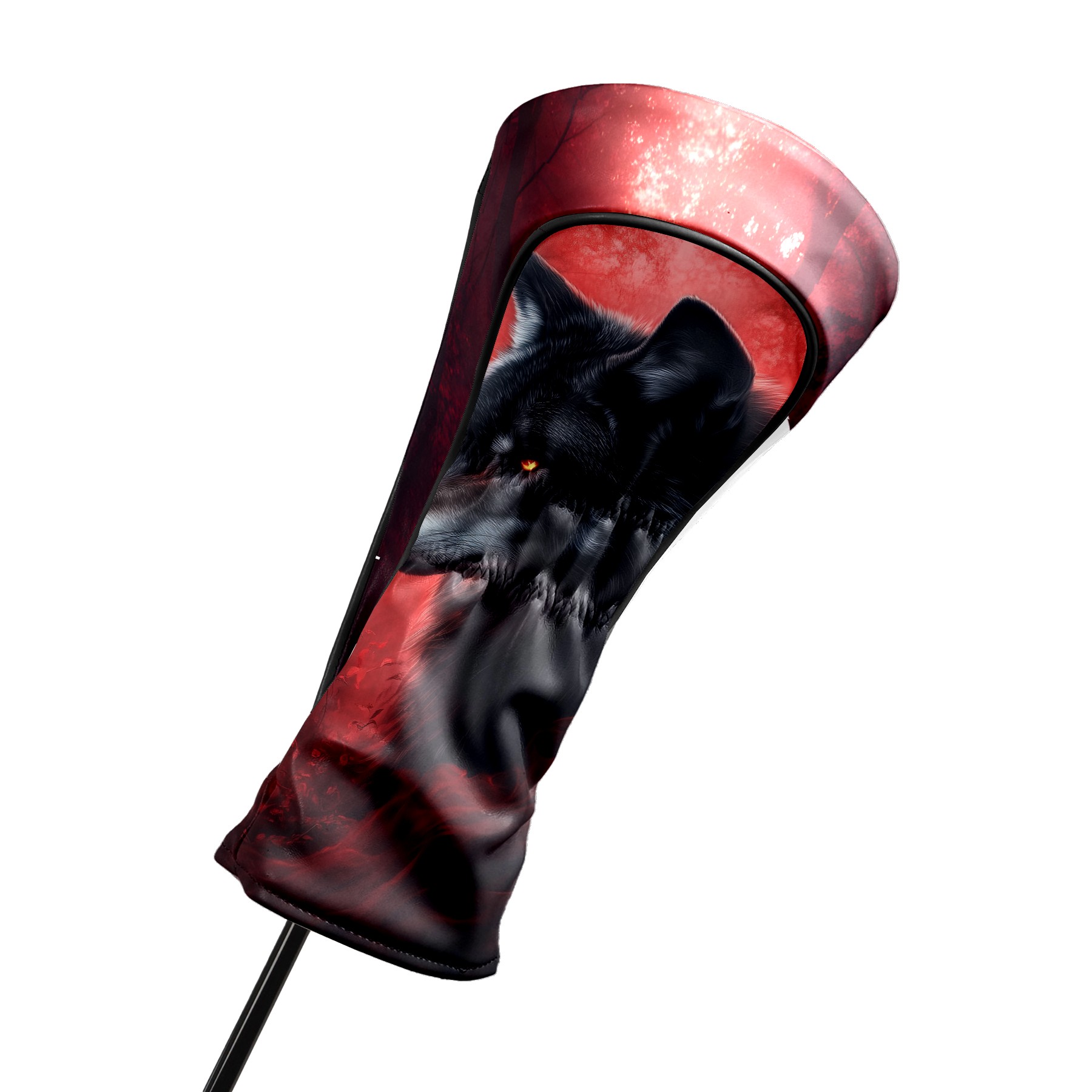 Golf Club Head Cover Premium Leather Driver Headcover, Golf Head Covers for Woods and Driver Waterproof Golf Headcovers with Anti-Scratch Lining for Men Women (Black Wolf)