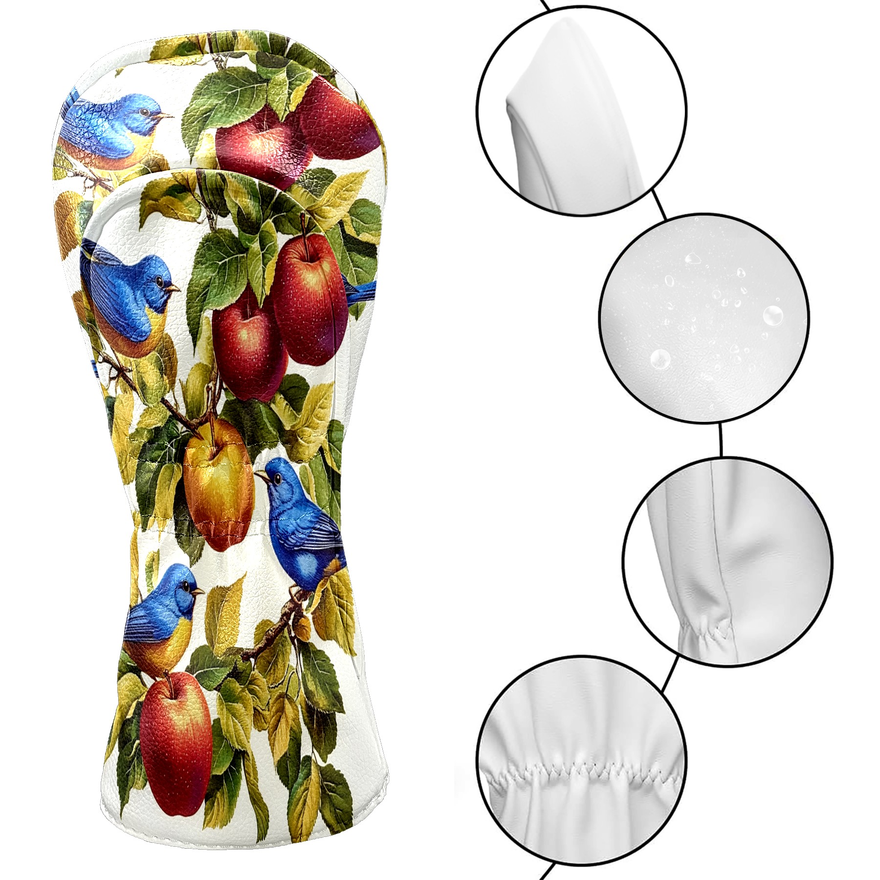 Golf Club Head Cover Premium Leather Driver Headcover, Golf Head Covers for Woods and Driver Waterproof Golf Headcovers with Anti-Scratch Lining for Men Women (Vintage Bluebirds)