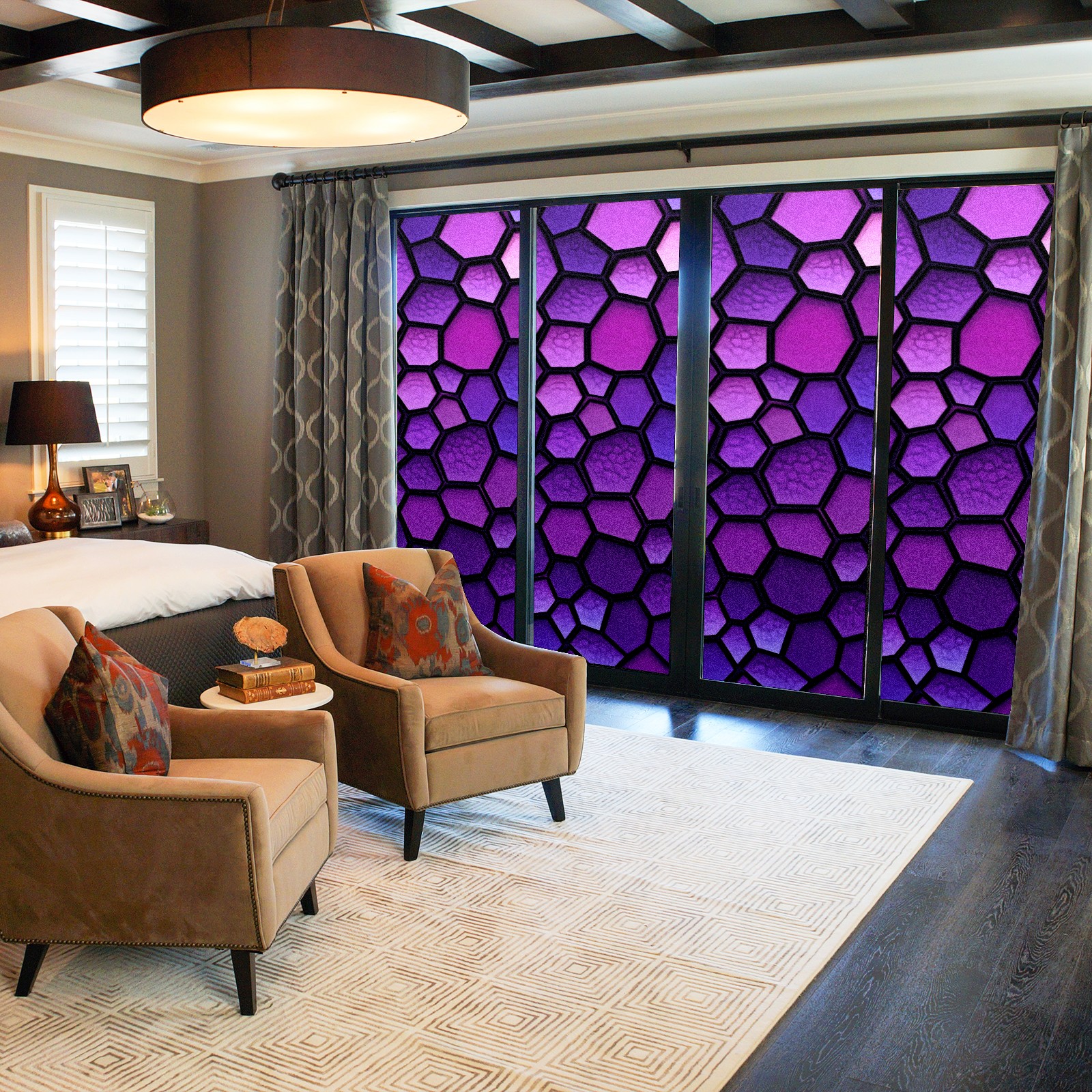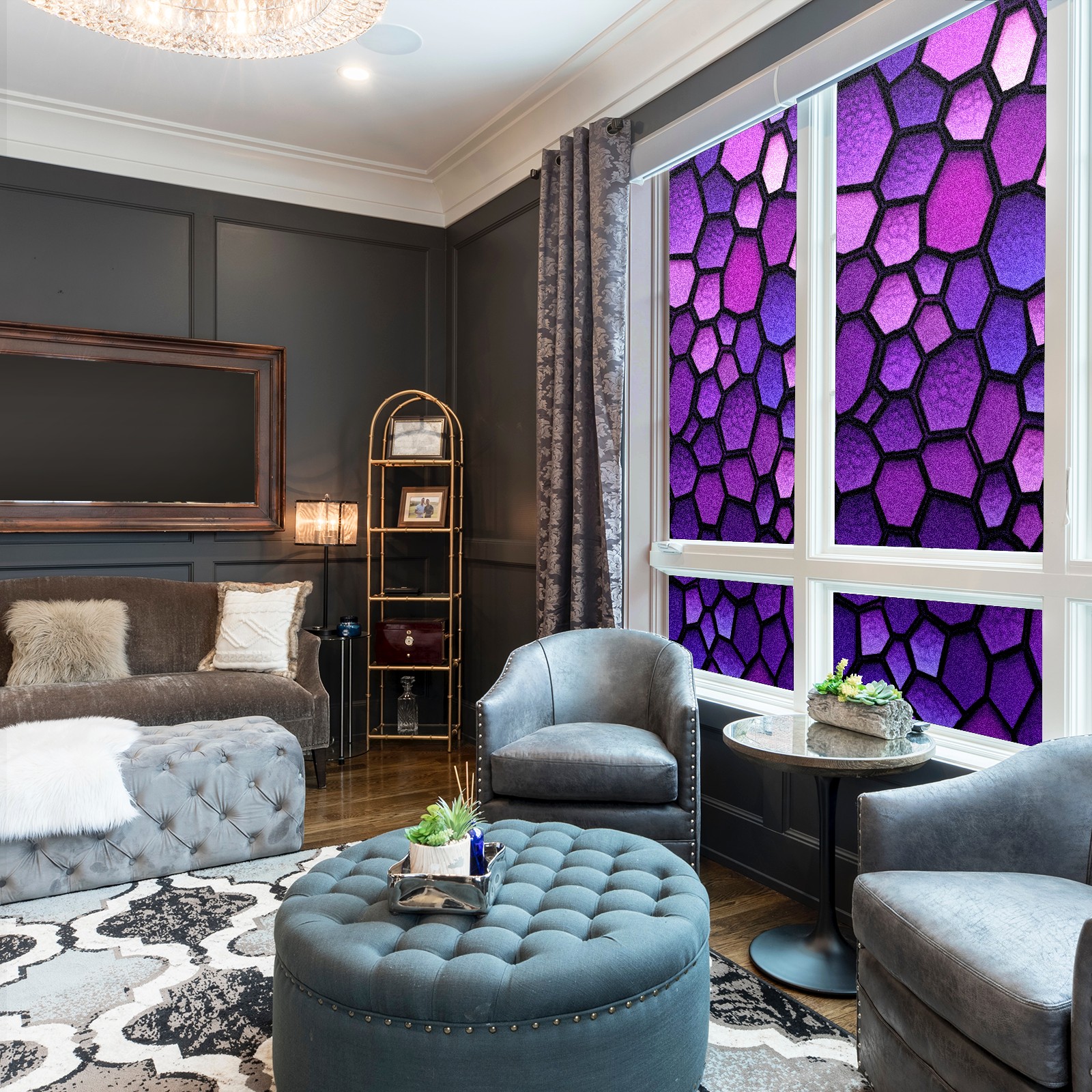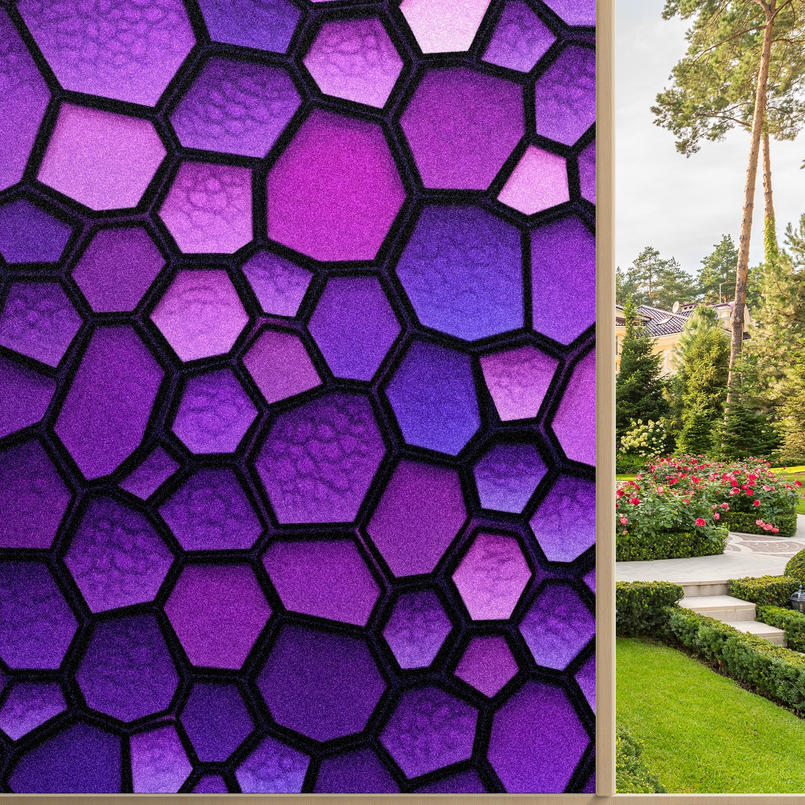 Single sided frosted full screen printed glass sticker soft pink green stripe seamless embroidery pattern privacy decoration Purple