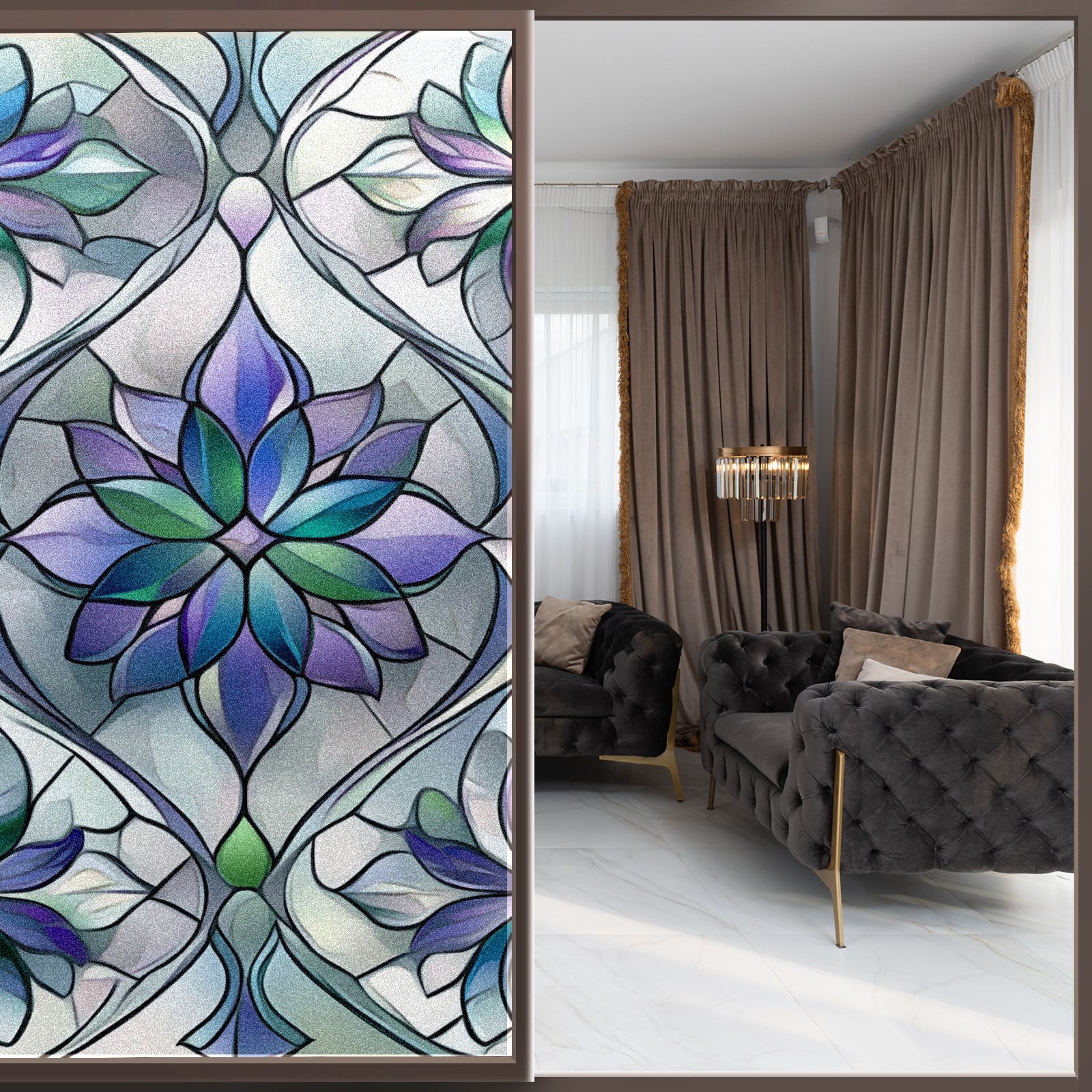 • <p>The main body is made of PET single-sided frosted material, with a smooth surface that adheres to the glass. The frosted surface forms a hazy blocking effect, effectively protecting privacy while retaining soft light.The pattern covers the entire surface of the sticker, adopting a seamless design with clear and three-dimensional texture, breaking the traditional sticker's sense of fragmentation.</p>