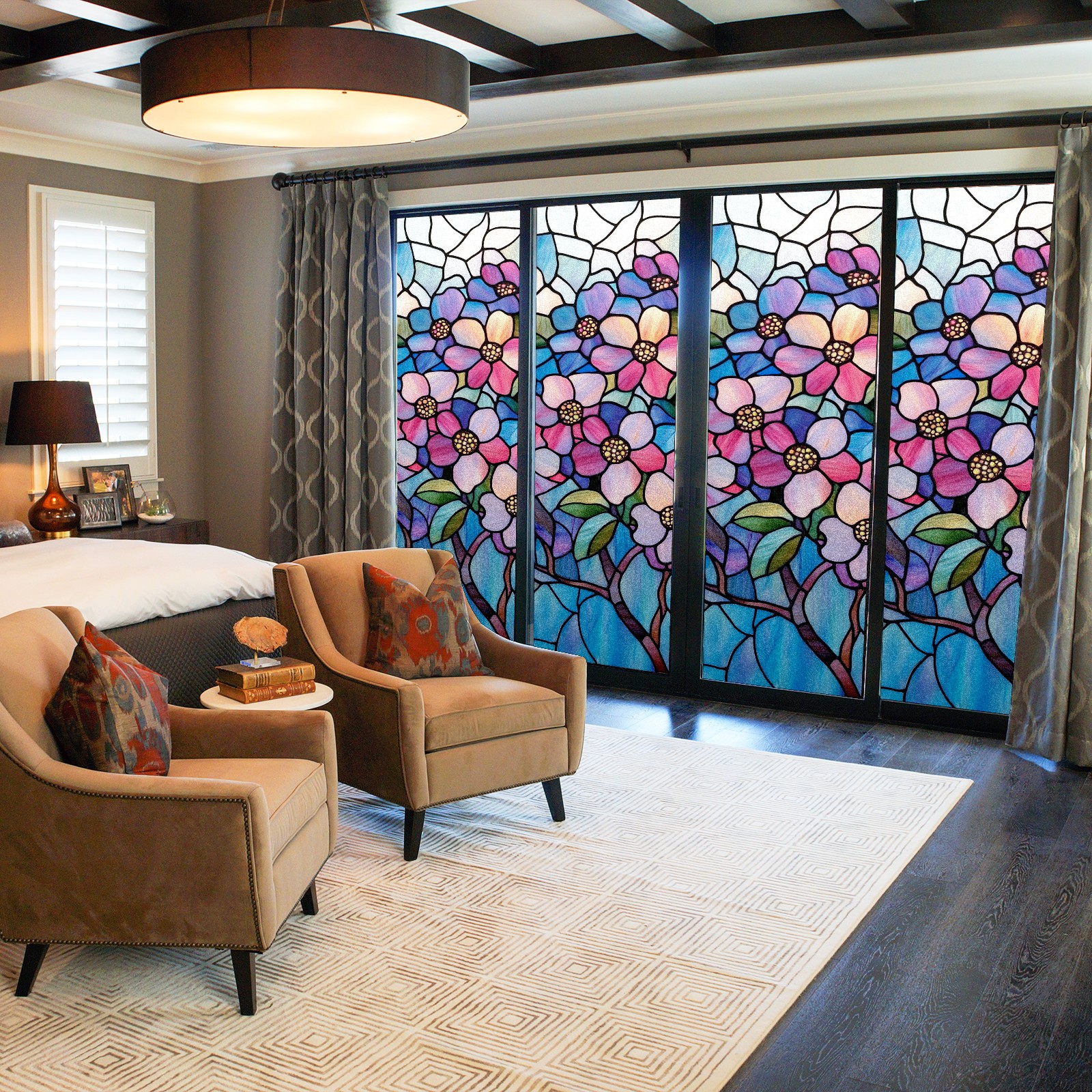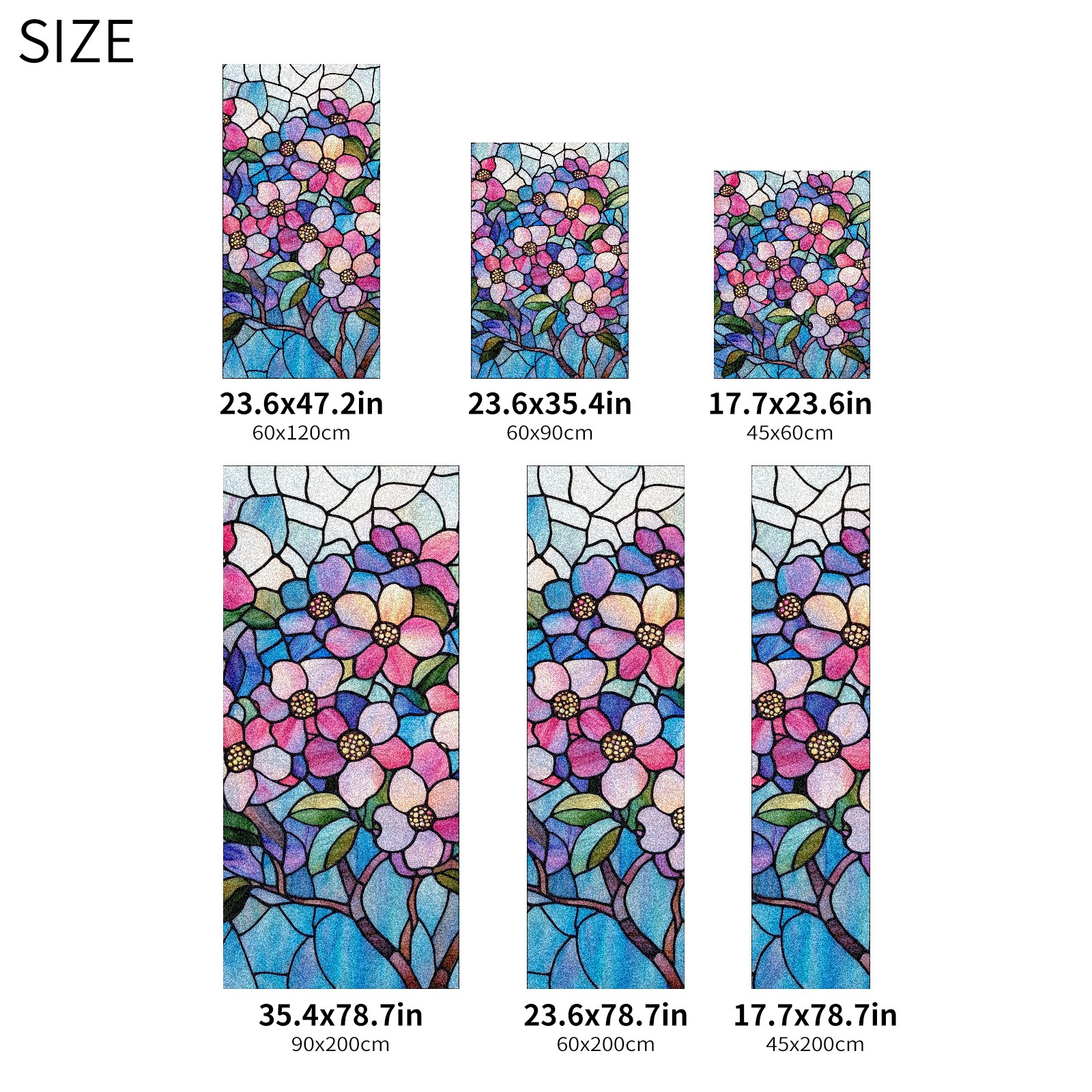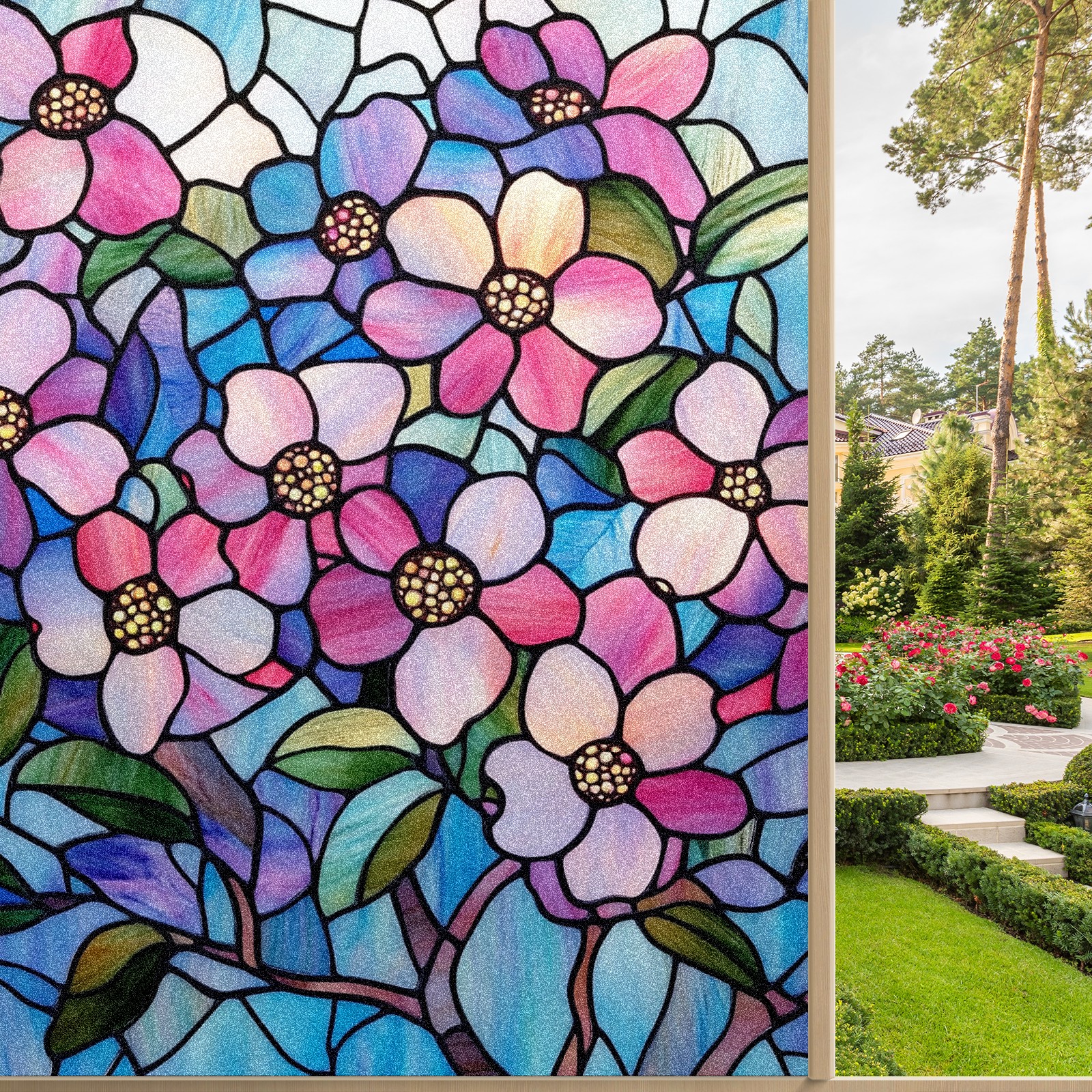 Single sided frosted full screen printed glass sticker soft pink green stripe seamless embroidery pattern privacy decoration Dogwood Flowers