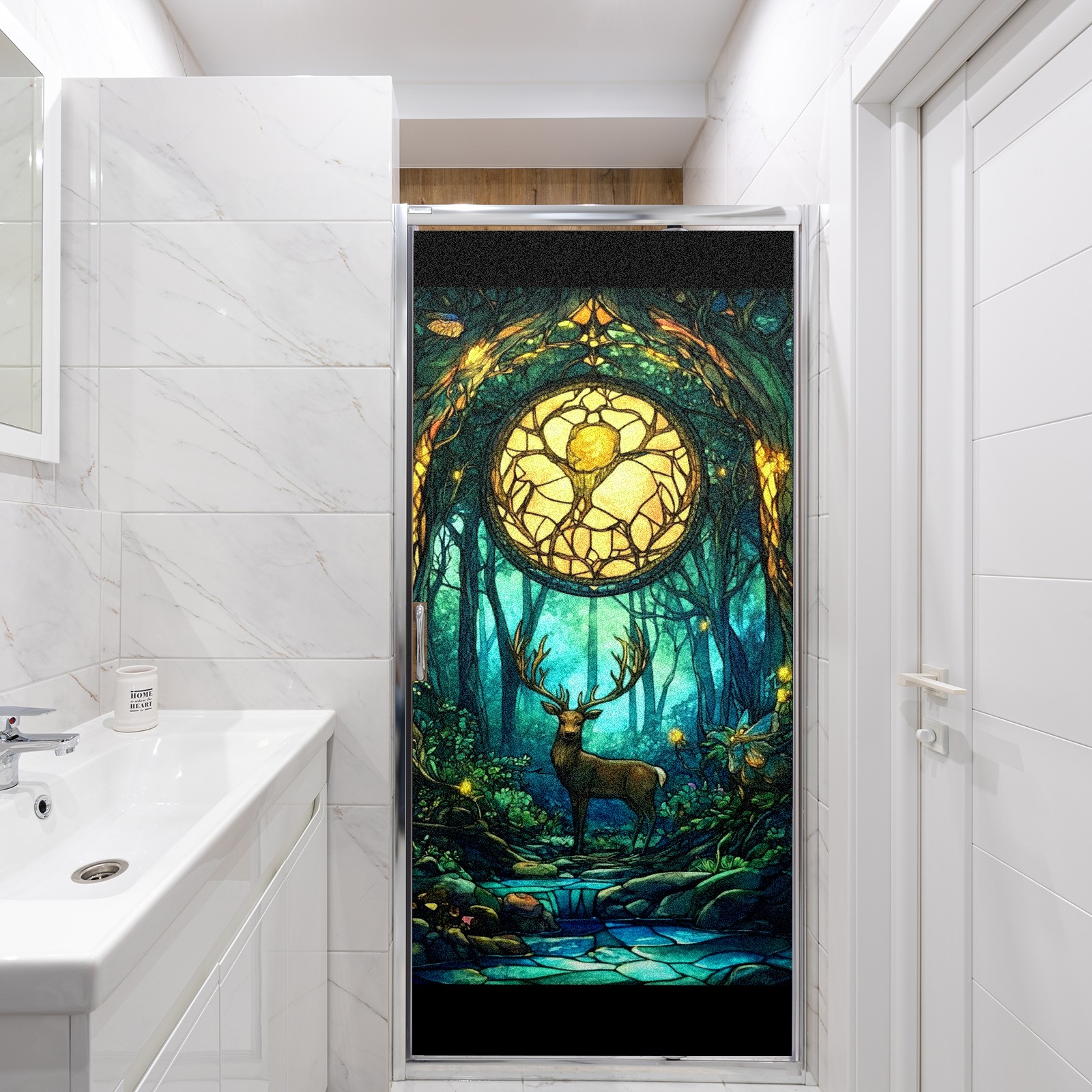 Single sided frosted full screen printed glass sticker soft pink green stripe seamless embroidery pattern privacy decoration Forest
