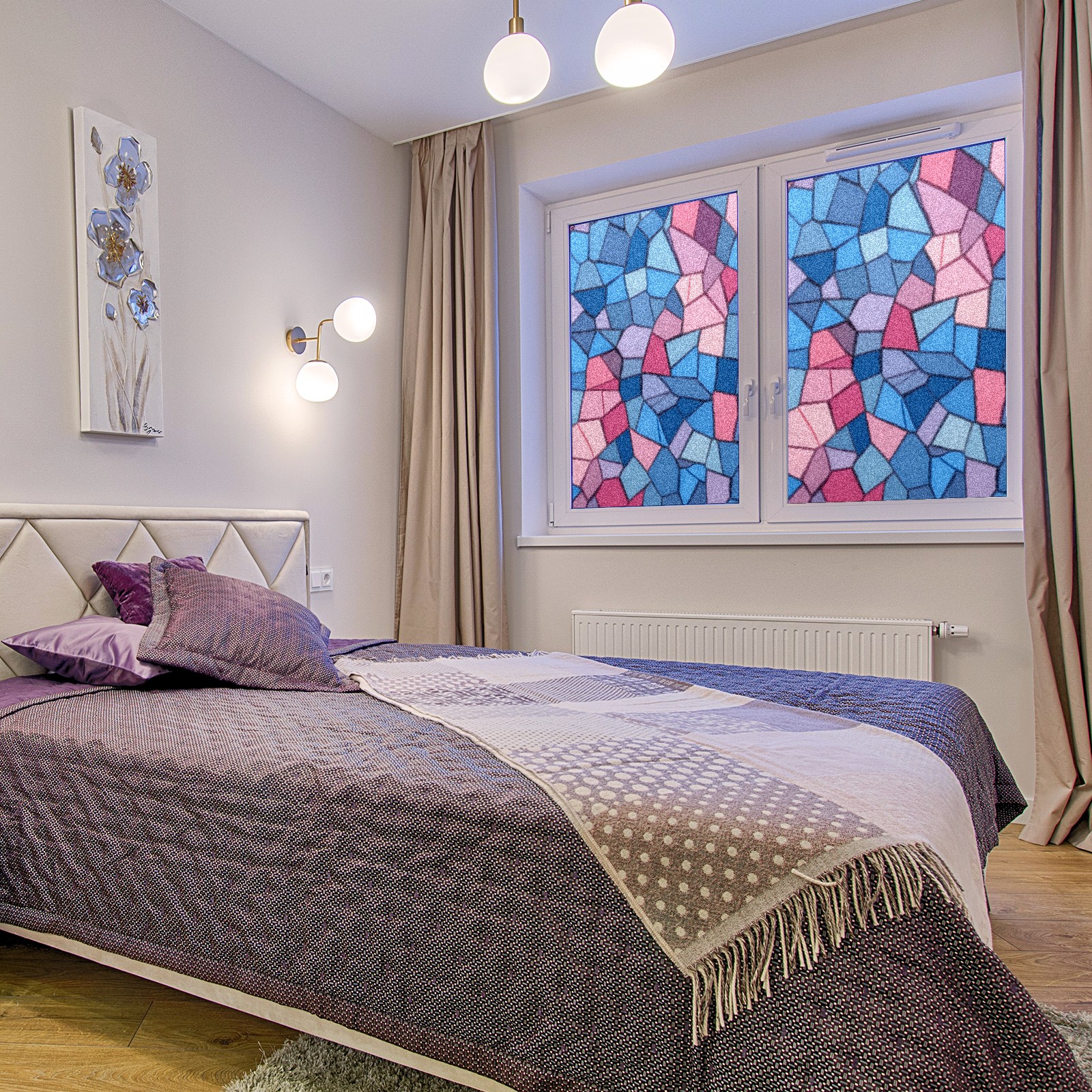 • <p>The main body is made of PET single-sided frosted material, with a smooth surface that adheres to the glass. The frosted surface forms a hazy blocking effect, effectively protecting privacy while retaining soft light.The pattern covers the entire surface of the sticker, adopting a seamless design with clear and three-dimensional texture, breaking the traditional sticker's sense of fragmentation.</p>