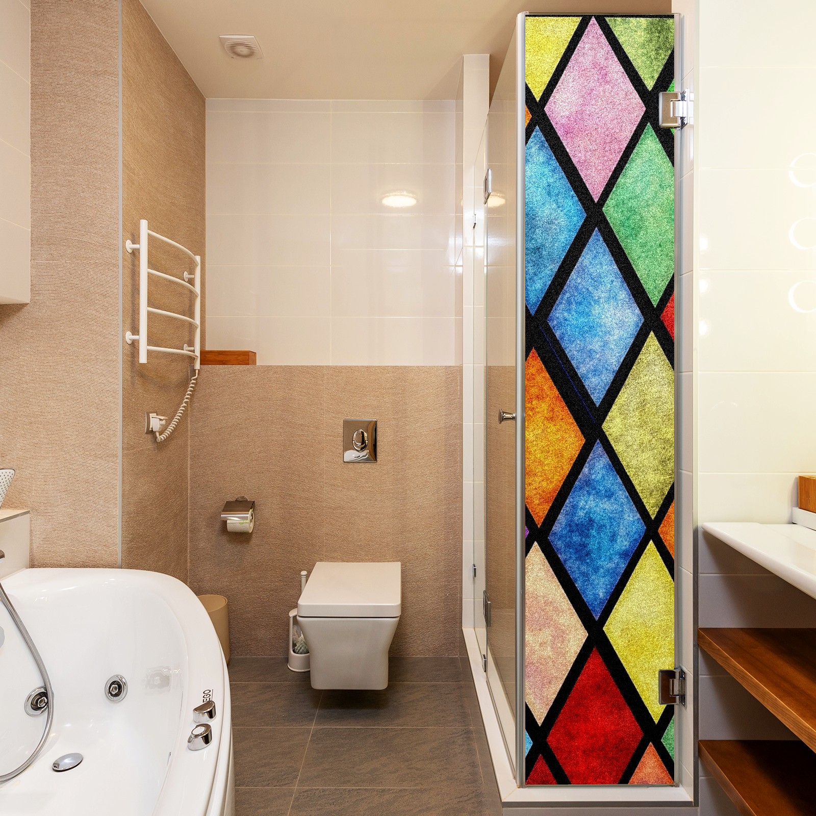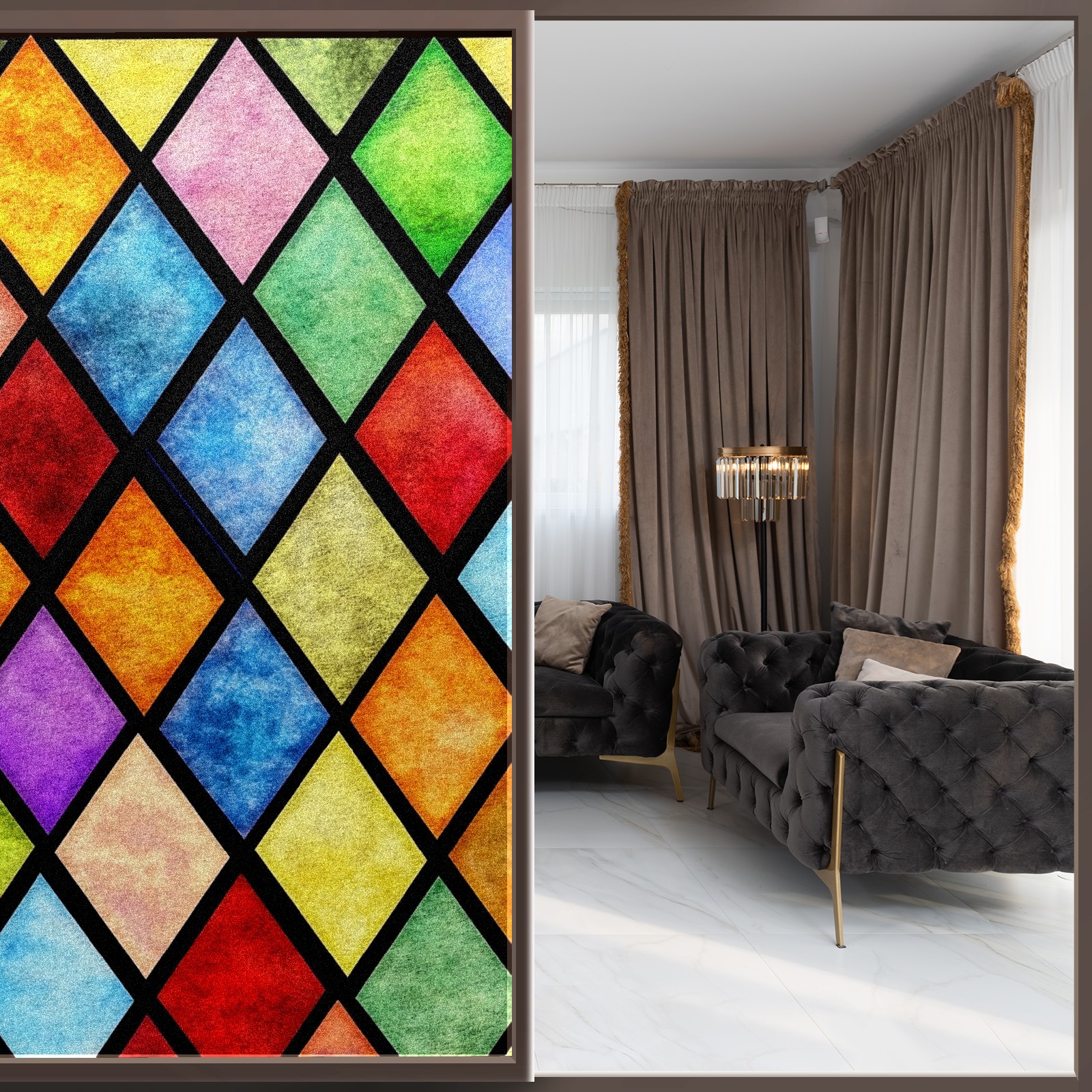 Single sided frosted full screen printed glass sticker soft pink green stripe seamless embroidery pattern privacy decoration Colorful Stained Glass (2)