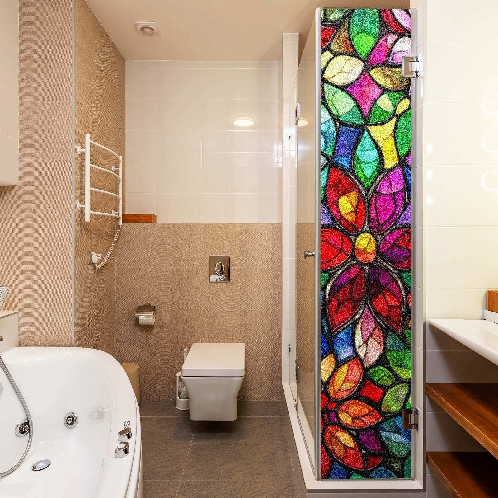 Single sided frosted full screen printed glass sticker soft pink green stripe seamless embroidery pattern privacy decoration Colorful Flowers