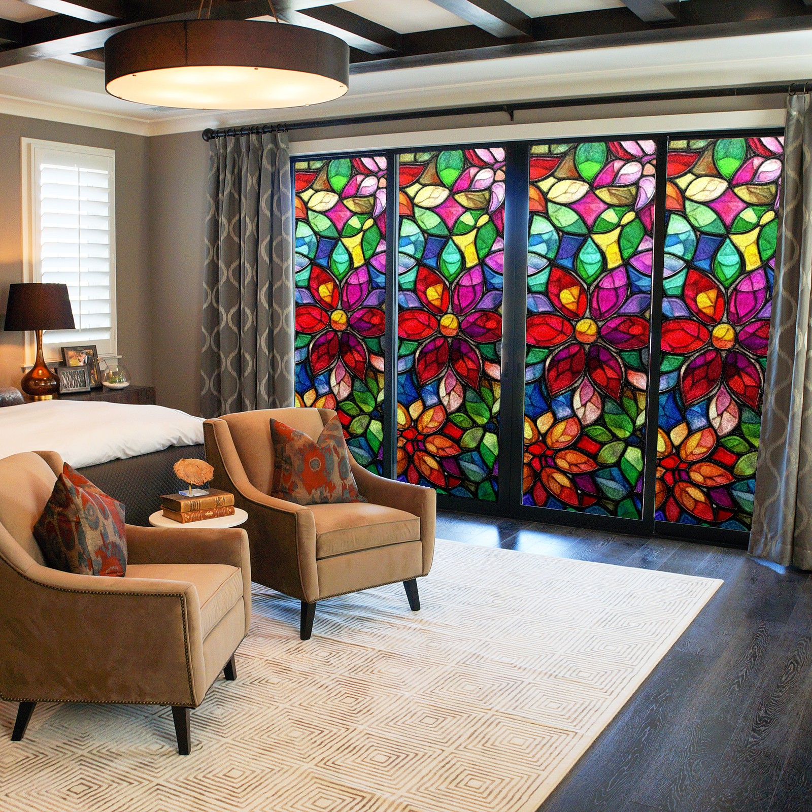 • <p>The main body is made of PET single-sided frosted material, with a smooth surface that adheres to the glass. The frosted surface forms a hazy blocking effect, effectively protecting privacy while retaining soft light.The pattern covers the entire surface of the sticker, adopting a seamless design with clear and three-dimensional texture, breaking the traditional sticker's sense of fragmentation.</p>