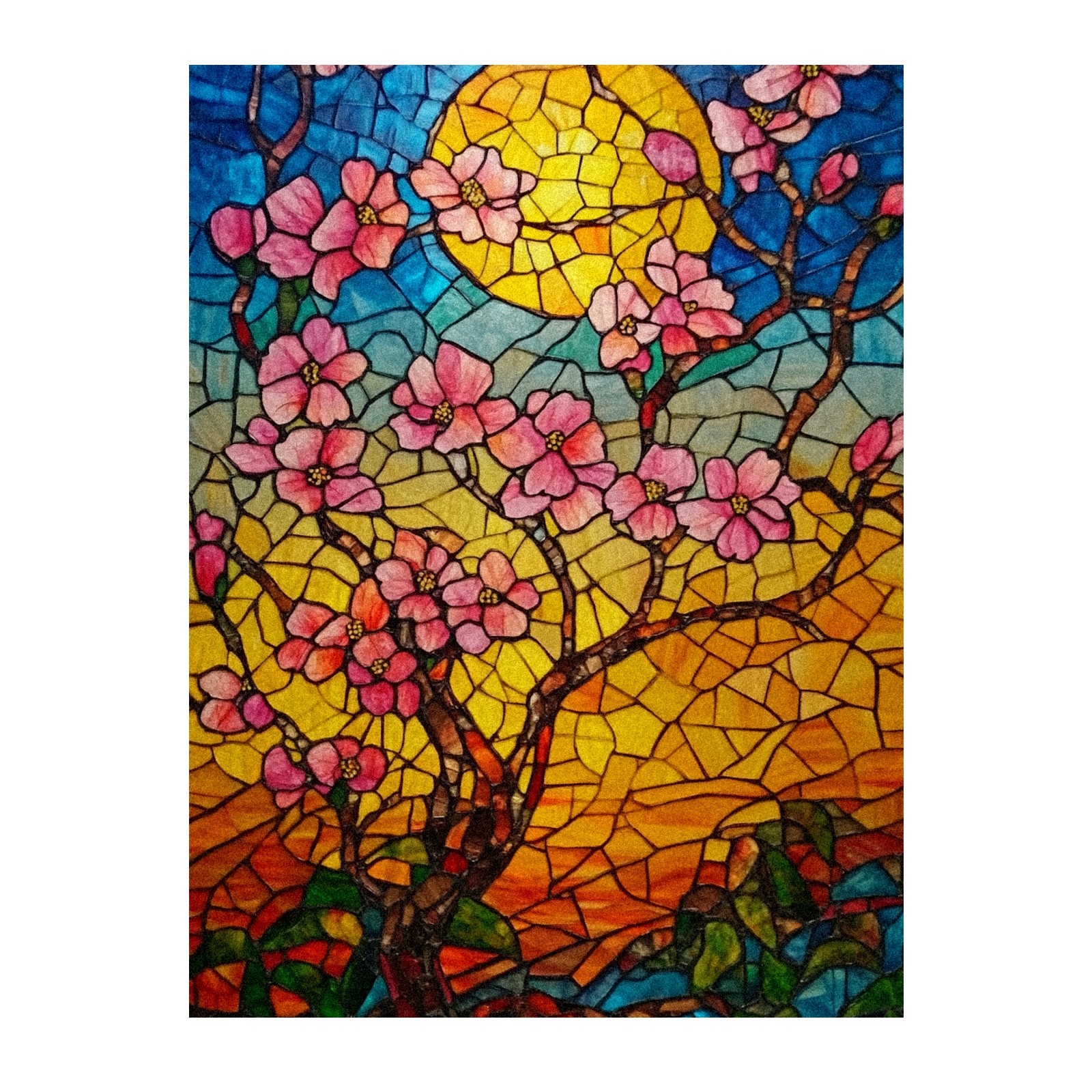 Single sided frosted full screen printed glass sticker soft pink green stripe seamless embroidery pattern privacy decoration Cherry Blossoms