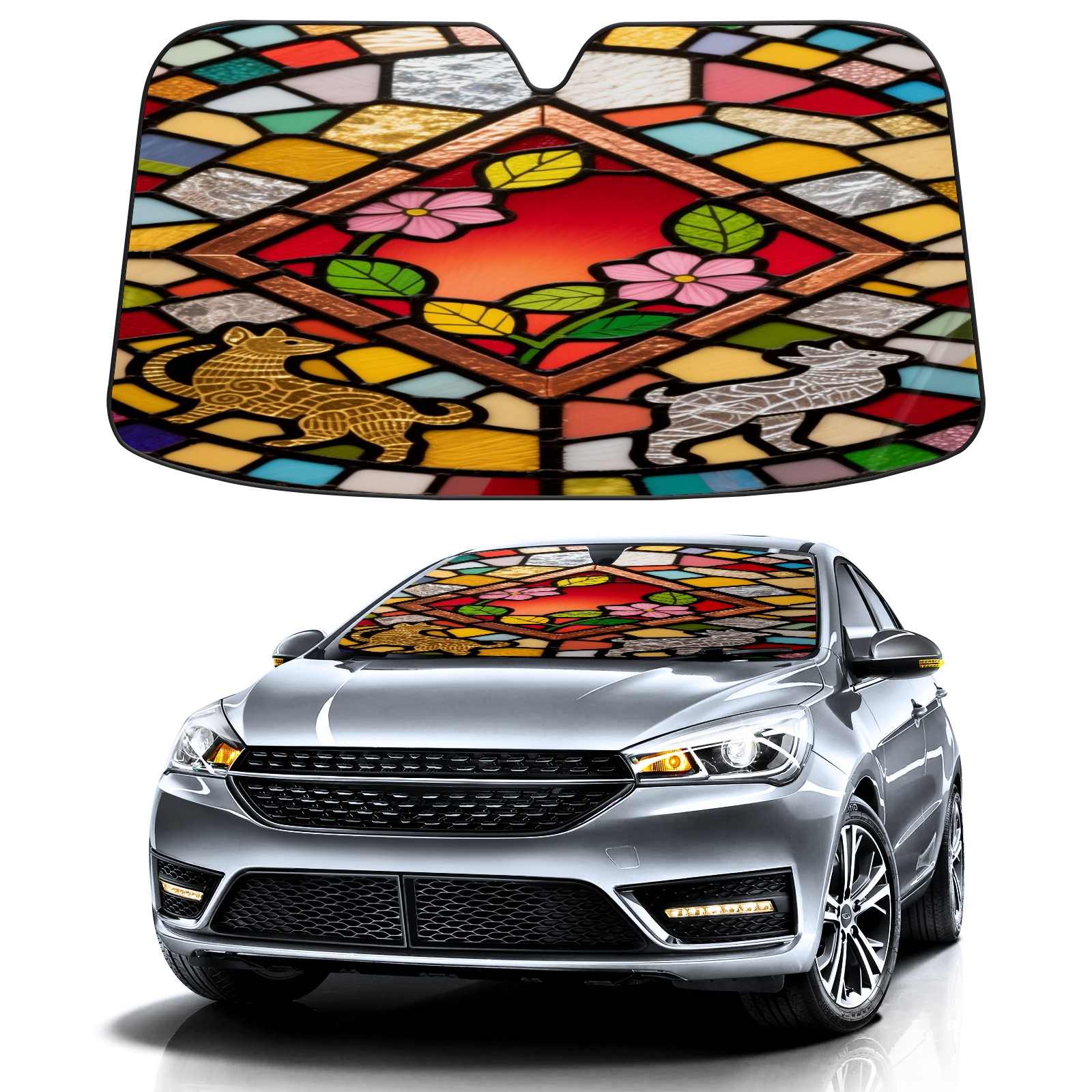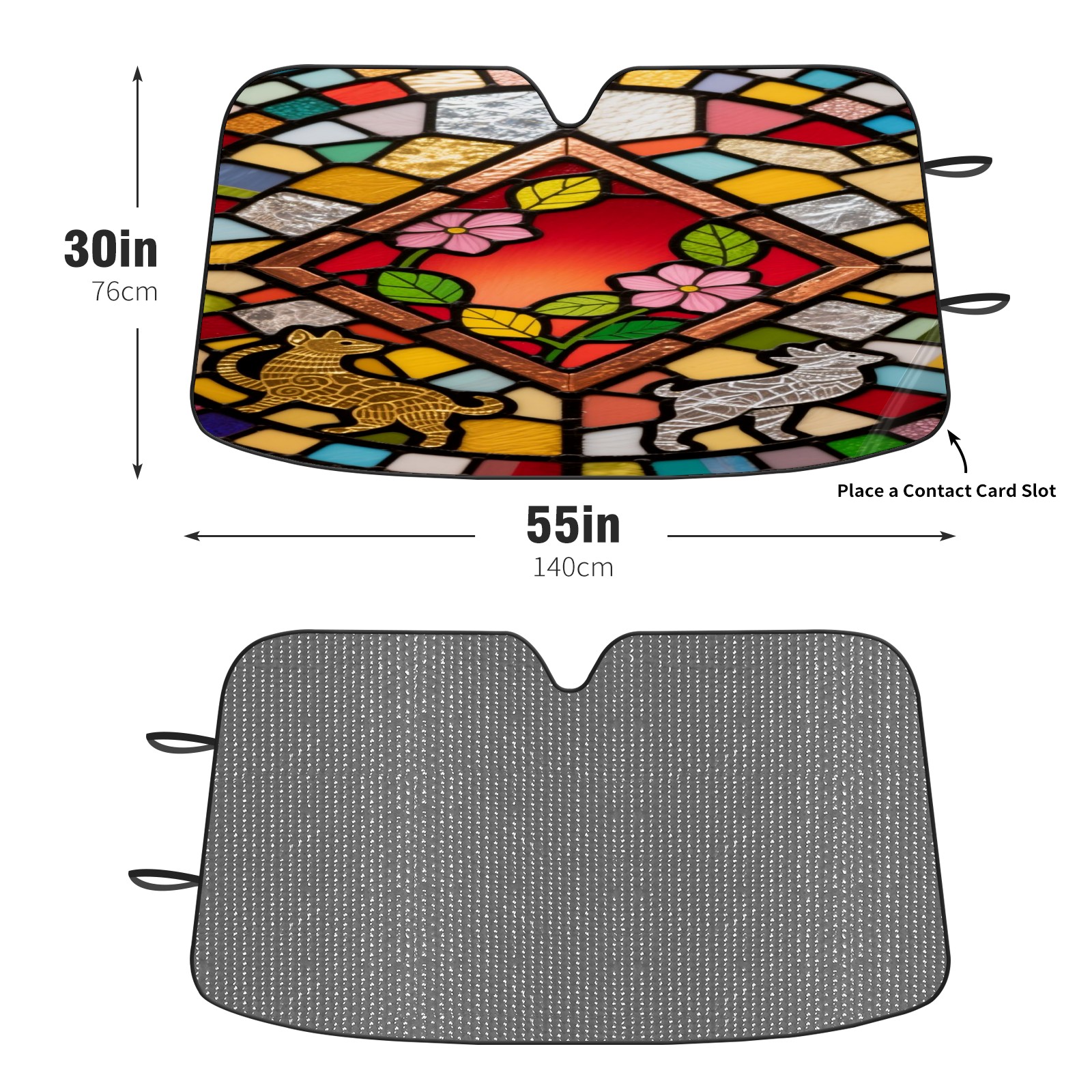 Foldable Aluminum Foil Polyester Car Sunshade Pad | 99% Heat Insulation & Sun Protection | Transparent Number Pocket | Lightweight & Portable | Fits Cars/SUVs/Trucks 13392118807441050