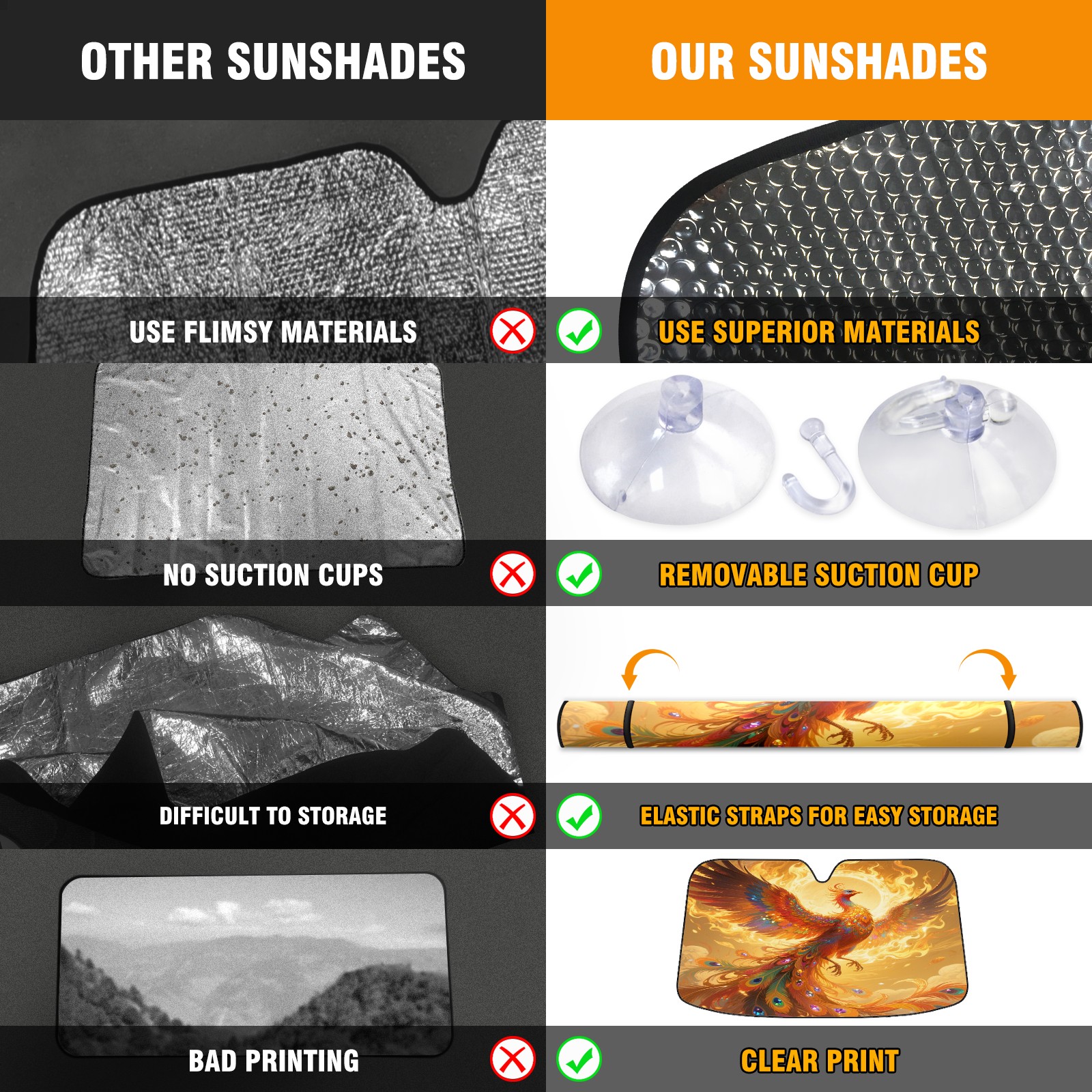 • <p>This sunshade pad is made of aluminum foil and polyester material, paired with high-quality aluminum foil bubbles, which can efficiently block ultraviolet rays, provide strong insulation and cooling, easily reduce the temperature inside the car, and save fuel when turning on the air conditioning, keeping the car cool at all times. Processed with transparent adhesive technology, the material is sturdy and durable, capable of long-term protection of the car dashboard, steering wheel, and seats, and is not afraid of sunlight erosion. The transparent pocket in the bottom right corner of the front is convenient for placing contact phone cards, and temporary parking with a number is no longer a hassle. Foldable design combined with compact size, lightweight and portable, does not take up interior space after storage, making it easy to carry for daily commuting or outdoor travel. There is no need to worry about cleaning, it is recommended to wash by hand. Regular cleaning can keep the sunshade pad clean as new and provide long-lasting protection.</p>