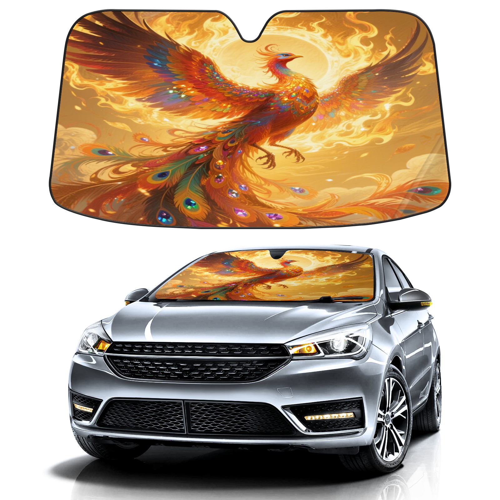 Foldable Aluminum Foil Polyester Car Sunshade Pad | 99% Heat Insulation & Sun Protection | Transparent Number Pocket | Lightweight & Portable | Fits Cars/SUVs/Trucks 13392118745263319