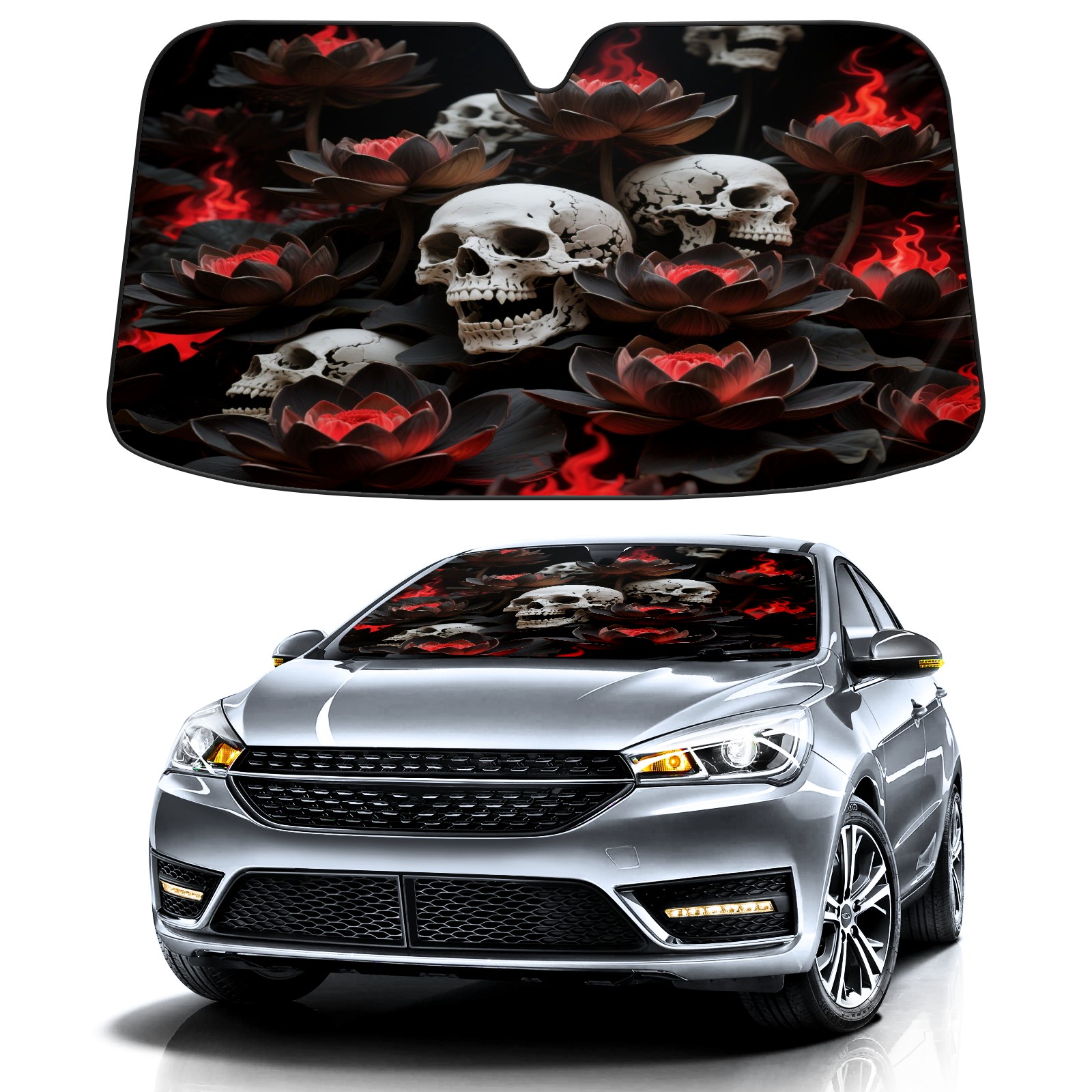 Foldable Aluminum Foil Polyester Car Sunshade Pad | 99% Heat Insulation & Sun Protection | Transparent Number Pocket | Lightweight & Portable | Fits Cars/SUVs/Trucks 13391856786494943