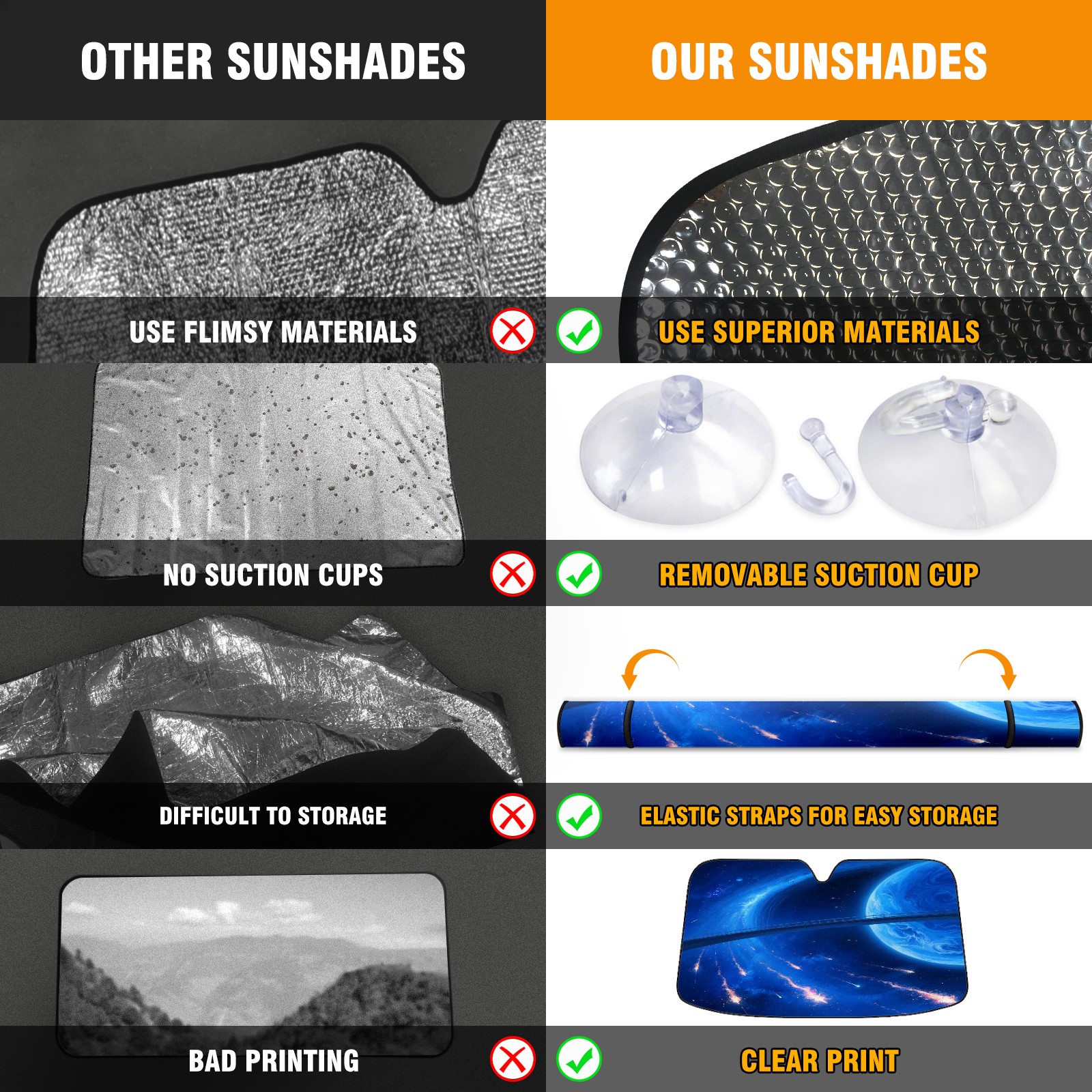 • <p>This sunshade pad is made of aluminum foil and polyester material, paired with high-quality aluminum foil bubbles, which can efficiently block ultraviolet rays, provide strong insulation and cooling, easily reduce the temperature inside the car, and save fuel when turning on the air conditioning, keeping the car cool at all times. Processed with transparent adhesive technology, the material is sturdy and durable, capable of long-term protection of the car dashboard, steering wheel, and seats, and is not afraid of sunlight erosion. The transparent pocket in the bottom right corner of the front is convenient for placing contact phone cards, and temporary parking with a number is no longer a hassle. Foldable design combined with compact size, lightweight and portable, does not take up interior space after storage, making it easy to carry for daily commuting or outdoor travel. There is no need to worry about cleaning, it is recommended to wash by hand. Regular cleaning can keep the sunshade pad clean as new and provide long-lasting protection.</p>
