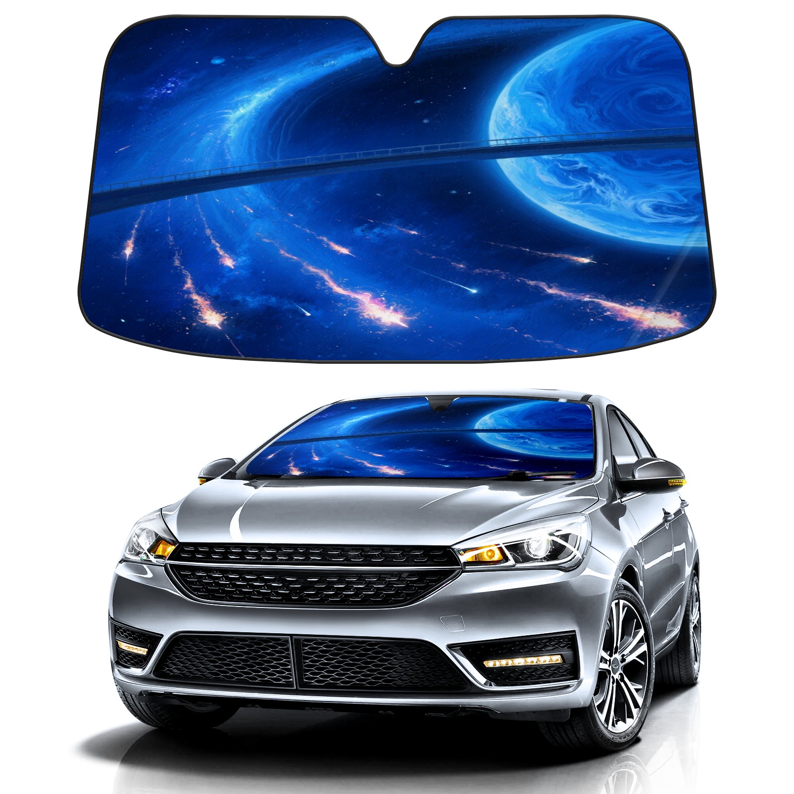 Foldable Aluminum Foil Polyester Car Sunshade Pad | 99% Heat Insulation & Sun Protection | Transparent Number Pocket | Lightweight & Portable | Fits Cars/SUVs/Trucks 13391856650377955