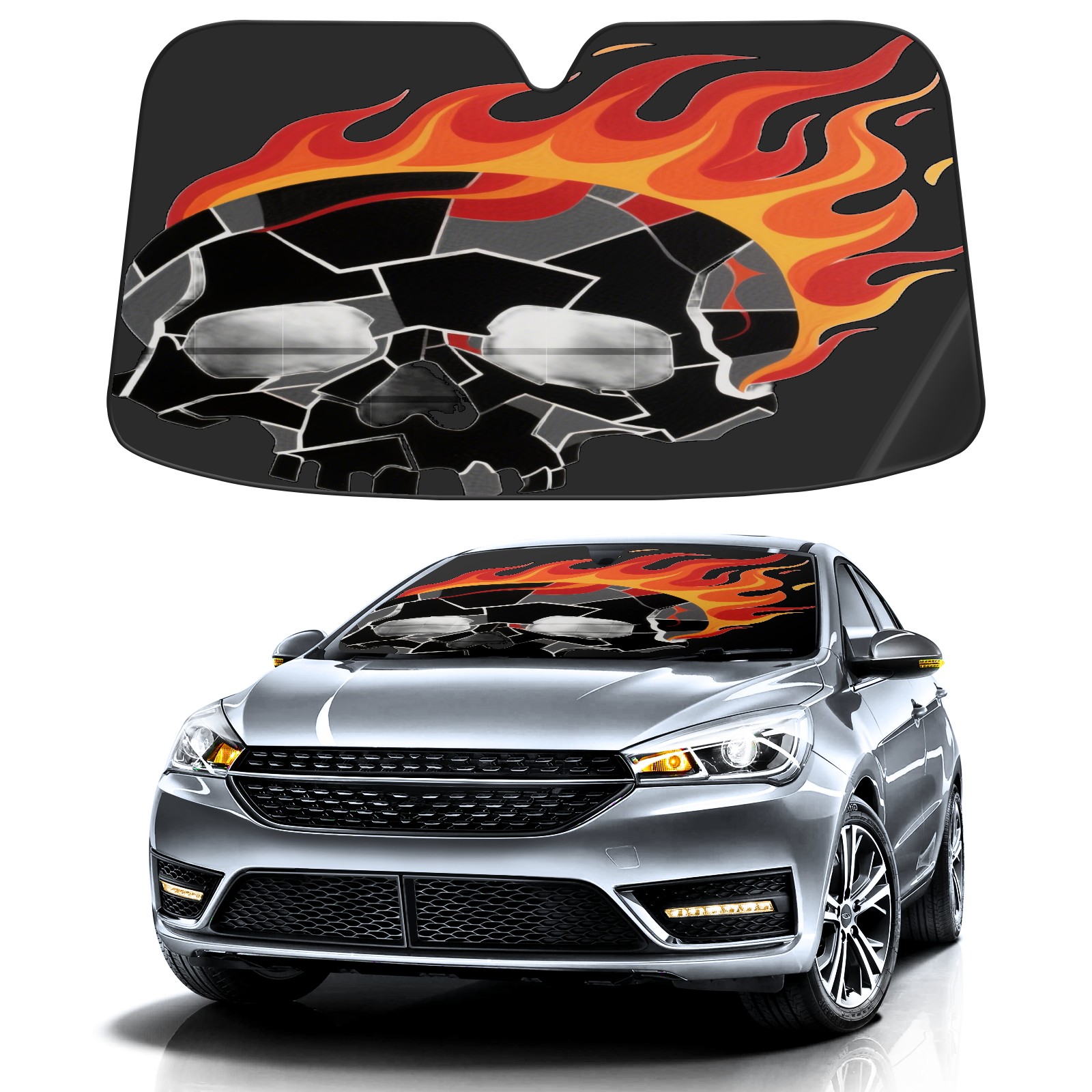 Foldable Aluminum Foil Polyester Car Sunshade Pad | 99% Heat Insulation & Sun Protection | Transparent Number Pocket | Lightweight & Portable | Fits Cars/SUVs/Trucks 1747382293779