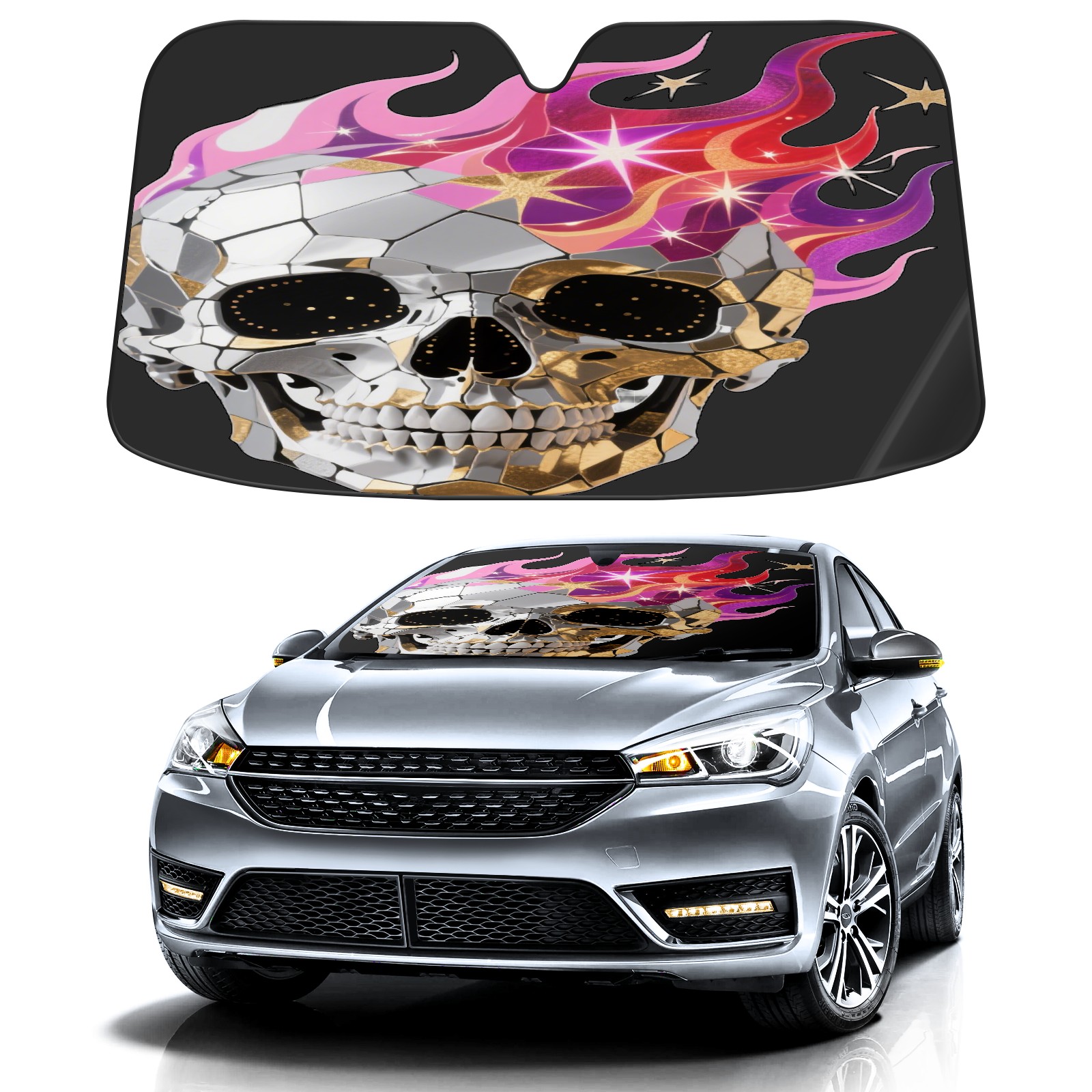 Foldable Aluminum Foil Polyester Car Sunshade Pad | 99% Heat Insulation & Sun Protection | Transparent Number Pocket | Lightweight & Portable | Fits Cars/SUVs/Trucks 1747382226659